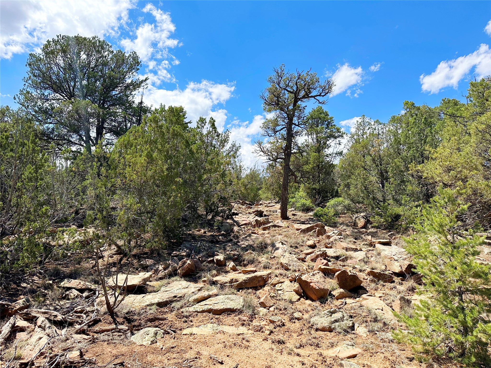 Welcome to the serenity of the Tierra De Dios community atop the Rowe Mesa. This 20-acre residential homesite is beautifully wooded with juniper and pion with gorgeous rock croppings, and has a dirt driveway to the build site. The land has a gradual slope topography, reaching the highest point in the community and providing most expansive views. Access to the Tierra de Dios community is easy with well-maintained gravel roads. Additionally, residents can take advantage of the community airstrip for landing aircraft, an easement for the construction of a community air hanger, underground electrical infrastructure with a transformer on the property, fiber optic cable, and a shared well water source. This property is truly a rare find. Don't let this opportunity pass you by.