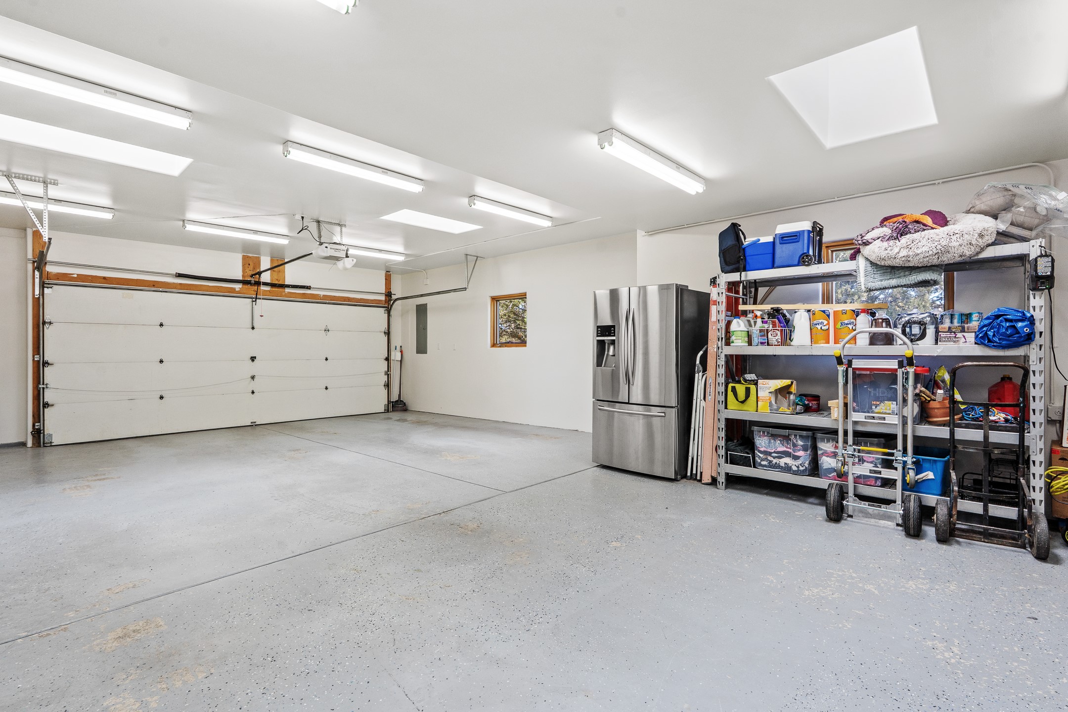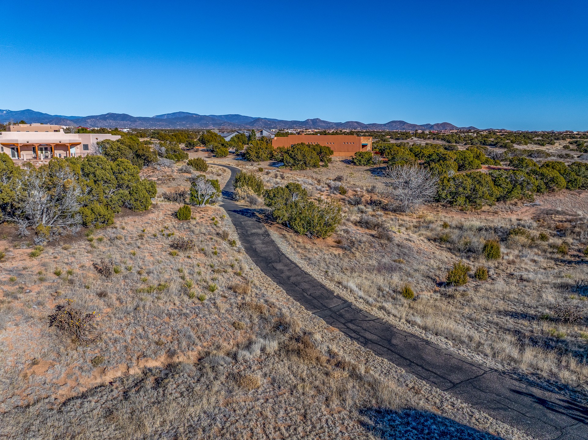 A rare opportunity in Rancho Viejo! This beautifully renovated single-level 4-bedroom, 3-bathroom home was built in 2002 and sits on 1.2 acres with sweeping views of the Sangre de Cristo foothills. Thoughtfully updated from top to bottom, every surface has been touched with care and high-quality craftsmanship.The open-concept floor plan offers effortless flow and versatility. A spacious living room with beautiful viga ceilings and a wood-burning kiva fireplace provides the perfect setting for entertaining. The fully reimagined kitchen features stone countertops, brand-new stainless steel appliances, and two islands--each with bar seating--while the adjacent dining area connects seamlessly to a cozy den with a gas fireplace, creating a warm and inviting gathering space.Step into the backyard and discover a private oasis: a large koi pond with water feature, covered portal with built-in grill, and a separate pergola with a gas firepit--perfect for relaxing or stargazing. The Rancho Viejo trail system is directly accessible from the yard.The primary suite enjoys stunning foothill views, a gas fireplace, direct access to the backyard portal, and the soothing sound of the water feature. The spa-like primary bath includes double vanities, a large walk-in shower, natural light, and garden views. Two guest bedrooms share a full bath in the South wing, while a third guest suite--located privately at the North end--shares a full bath that also serves as the guest powder room. A flexible bonus room near the living area functions beautifully as an office, hobby room, or reading nook.The show-stopper garage can be a 2-car garage with a very large storage area/workshop or a 3-car garage with storage/workshop! On the market for the first time, this home was custom built in 2002 for the current owners, who have lovingly maintained and recently renovated it with exceptional care. This is a rare find and a true Rancho Viejo treasure.