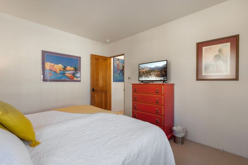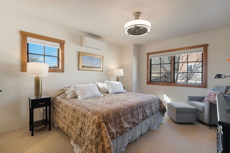 Enjoy close proximity to the Plaza from this charming end-unit condo in the highly sought-after Muralla Compound. Warm and inviting, this stylish home showcases quintessential Santa Fe touches throughout--vigas, a kiva fireplace, Saltillo tile floors, and colorful Mexican tile accents. A beautifully crafted tin ceiling enhances the dining area, where French doors open to a private, peaceful patio ideal for morning coffee or evening unwinding.The home features new appliances and three mini-splits for both heating and cooling, ensuring comfort and convenience year-round. A rare private garage provides secure parking and additional storage--an exceptional amenity for downtown living. Recent HOA improvements include a TPO roof replacement and stucco maintenance, and the condo association conveniently covers exterior upkeep and common areas.Zoned Commercial, this property offers rare flexibility--allowing 7-day-plus short-term rentals with proper permitting--making it an attractive opportunity for investors or second-home owners seeking income-producing potential in a central Santa Fe location. Authentic, quiet, and ideally situated--this is downtown Santa Fe living at its finest.