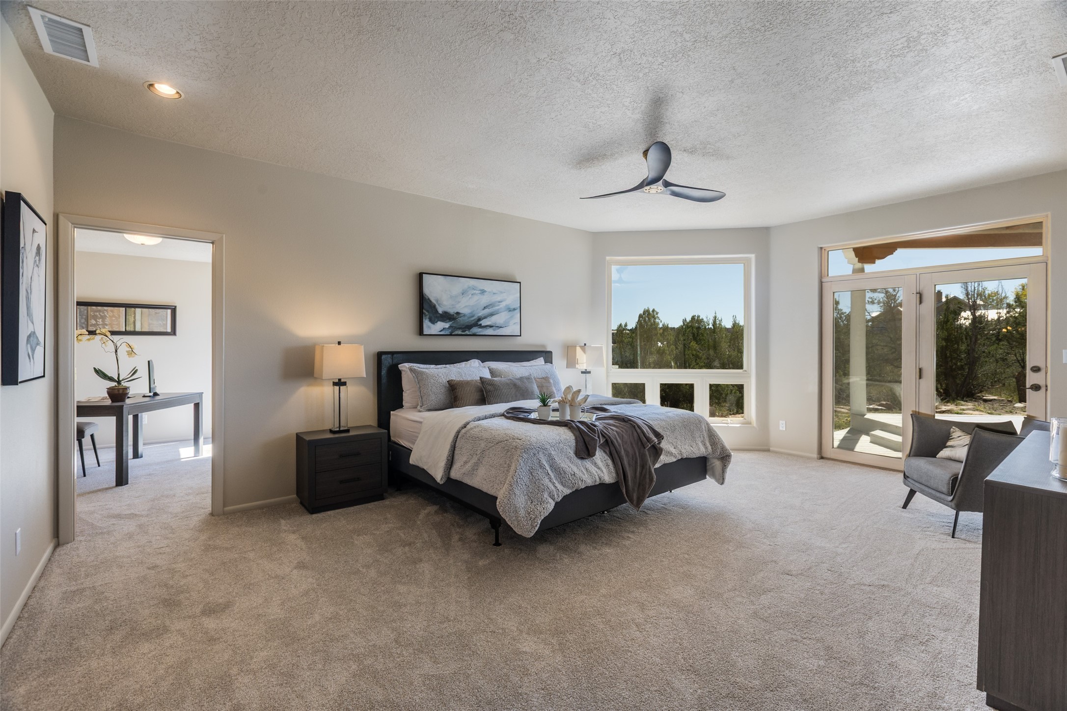 Stunning SW Contemporary home. First time on the market! Single level floor plan, light and bright with new carpet and paint and lovely fixtures....ready for the new buyer. Situated on private wooded 2.4 acres in popular Paa-Ko subdivision. Huge Living room with cathedral ceilings and high windows, formal dining, large entertainer's kitchen open to the living room with a large bar & gas range. Huge primary suite with separate sitting area. Cozy library with lots of built-in shelving. Refrigerated air. Newer roof & stucco. New Septic tank Jan 2026. 3 car garage. Minutes from the clubhouse and famous Paa-Ko golf course.