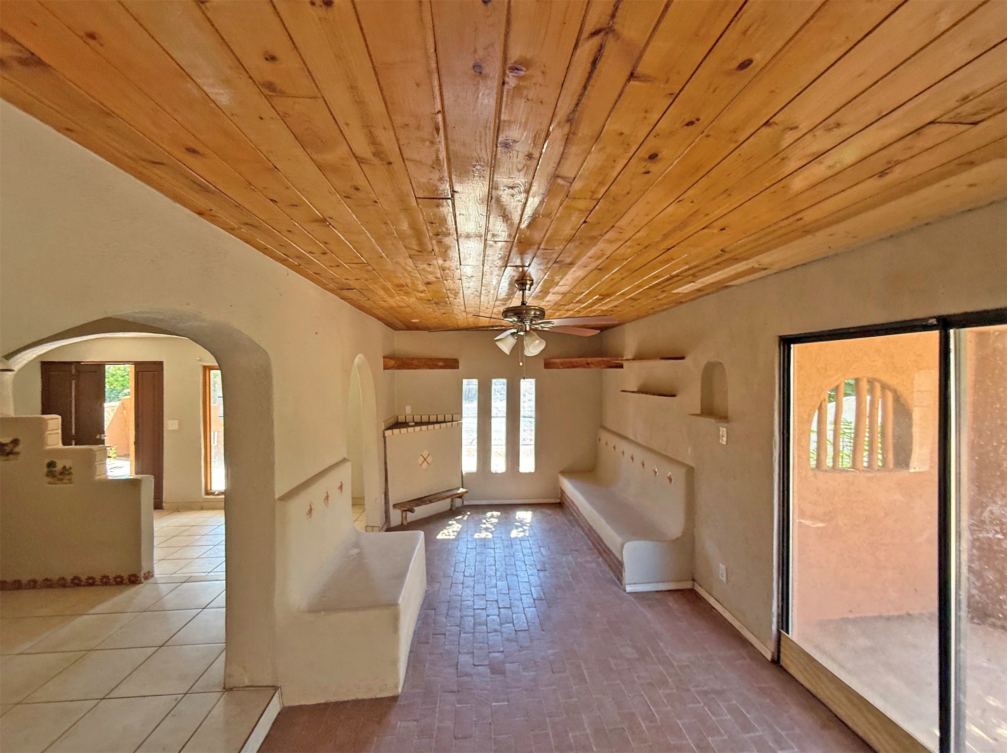 Authentic Pueblo-style home in Santa Fe showcasing traditional Southwestern design, including wood vigas and a classic kiva fireplace. This two-story residence offers 3 bedrooms and 2 baths with warmAuthentic Pueblo-style home in Santa Fe showcasing traditional Southwestern design, including wood vigas and a classic kiva fireplace. This two-story residence offers 3 bedrooms and 2 baths with warm architectural character and functional living spaces. A large garage/workshop provides excellent storage or workspace, complemented by ample street parking for guests. Owner-occupant buyers only for the first 20 days of marketing. Buyer must sign an owner-occupancy certification.