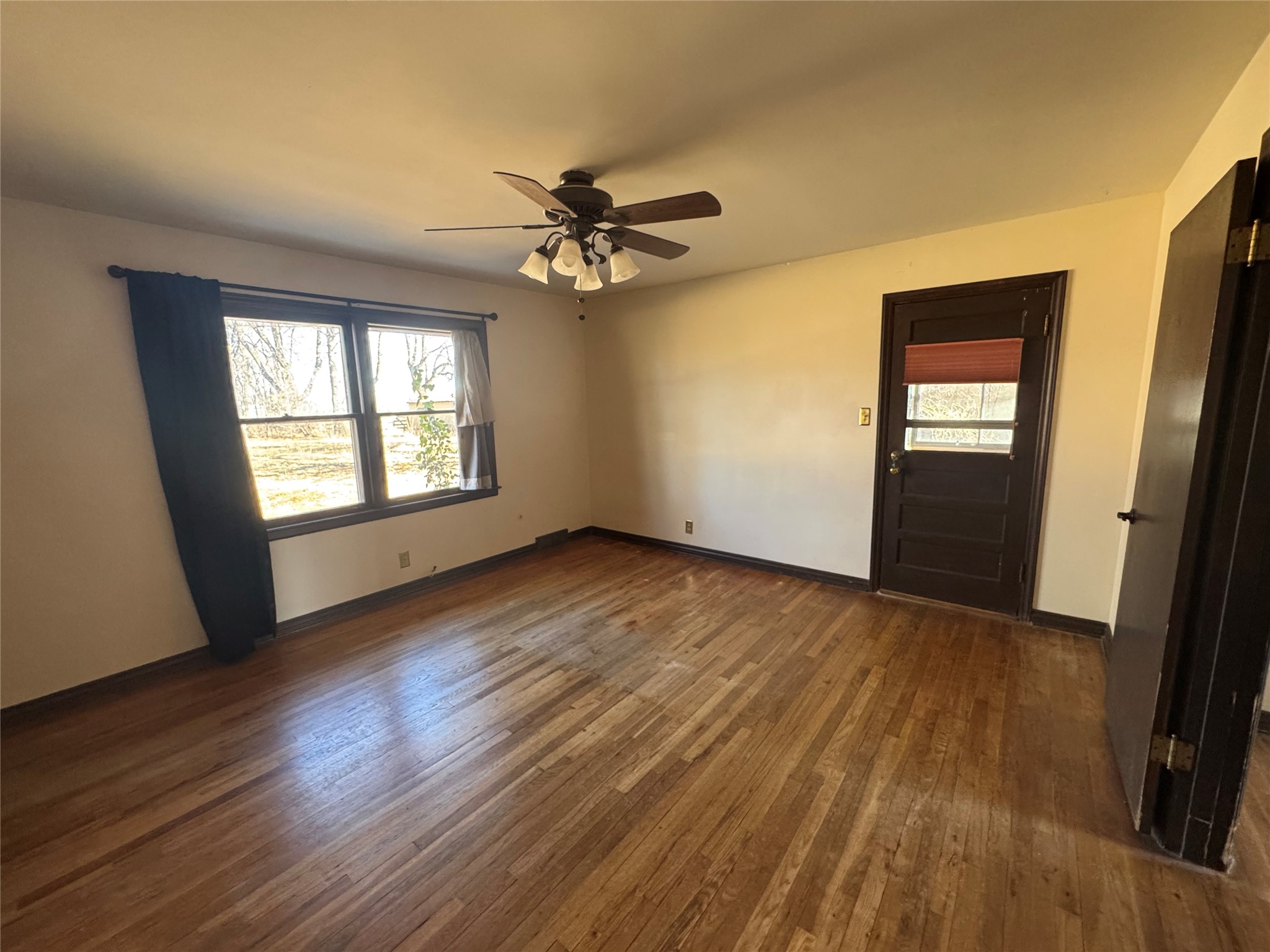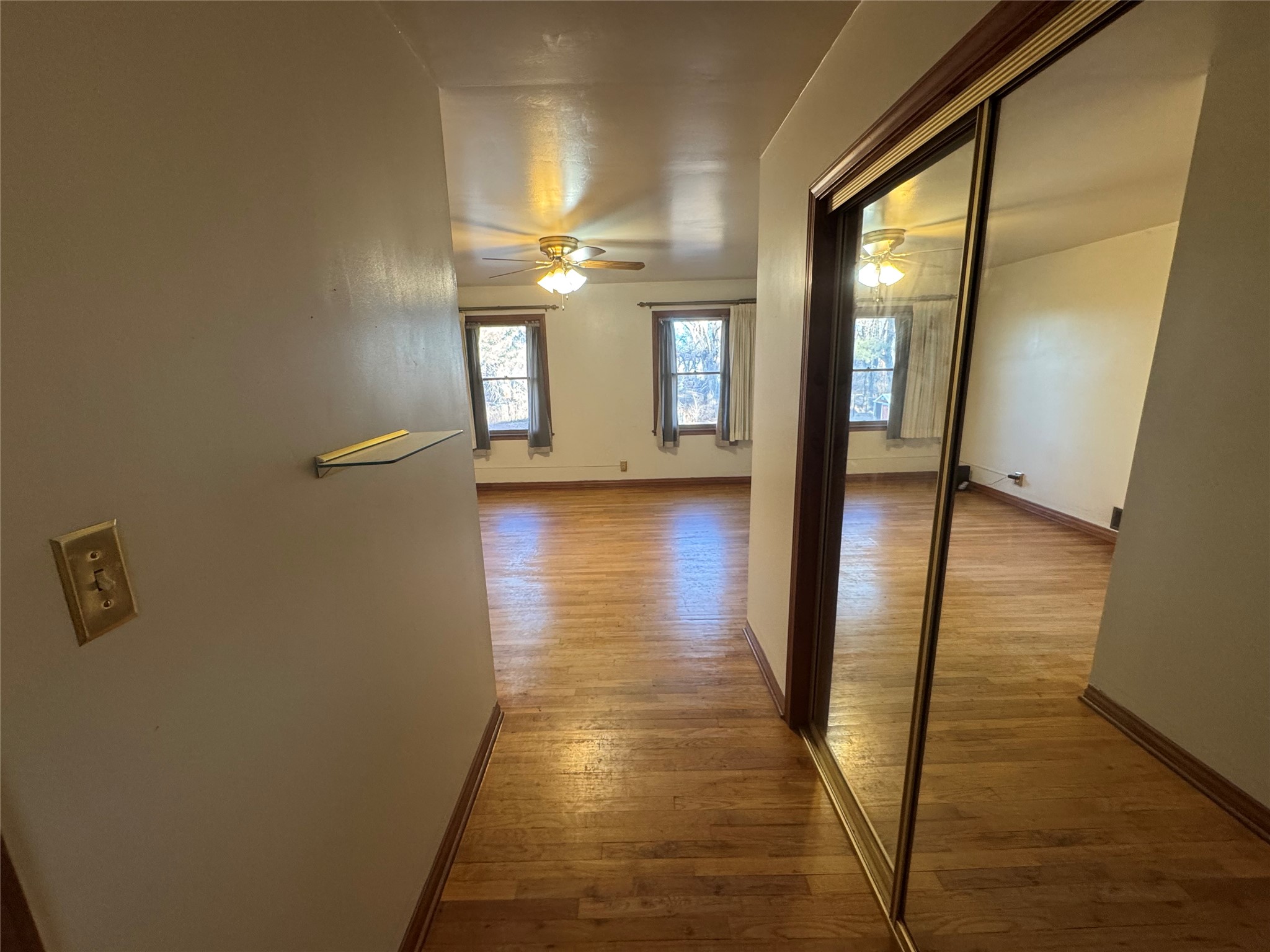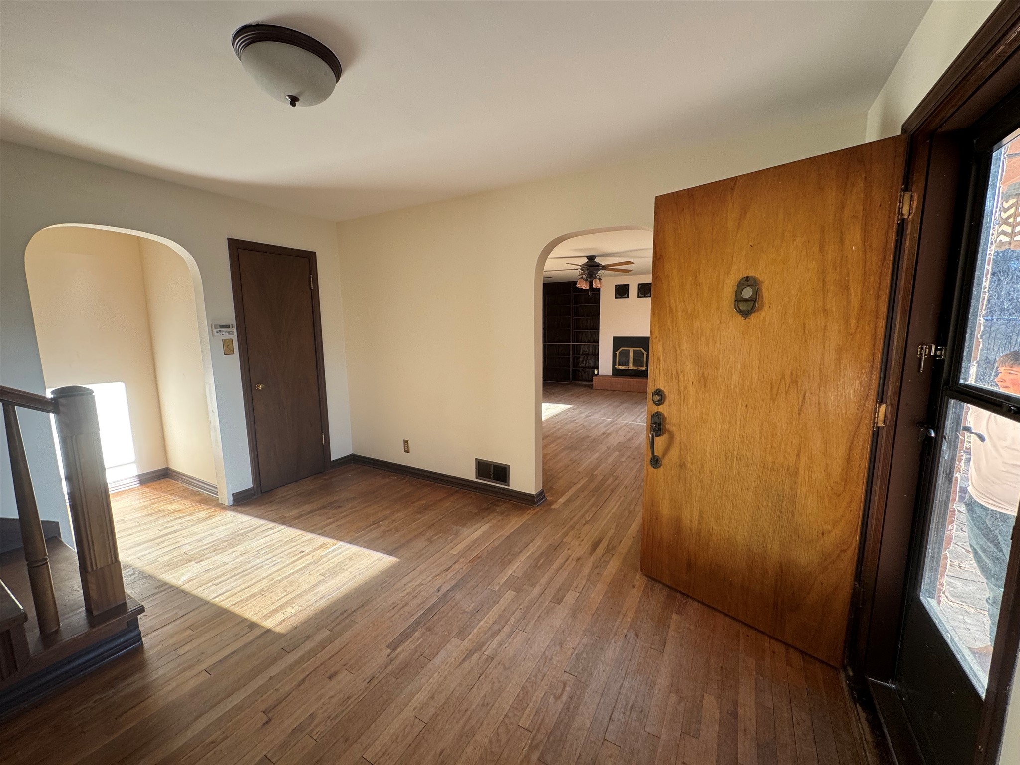 Welcome to this mid-century home with timeless architecture and comfort. Exterior is stone with accents of brick. Large front and back yard with big mature trees and semicircle entry and exit driveway. Inviting and spacious living room with fireplace, wall bookshelf and large picture window facing the west. From living room enter into a green or sun room facing the east and backyard. A dining room sized to host gatherings or a growing family, near a lovely kitchen. Four large bedrooms with great closet space in each. Three bedrooms are upstairs with two bedrooms sharing an enclosed window patio with door to stunning outdoor spiral stone and concrete staircase to the front yard. 2 bathrooms, one on main floor and one upstairs. A large breezeway room with beautiful wood ceilings attached to a one car garage. Well taken care of hardwood floors throughout majority of the home, large windows in each room allowing natural light from east to west. Basement allows for great storage, den or entertainment room. This house sits in an established and quiet neighborhood. City water, well water on property and surface water rights. Come take a look!