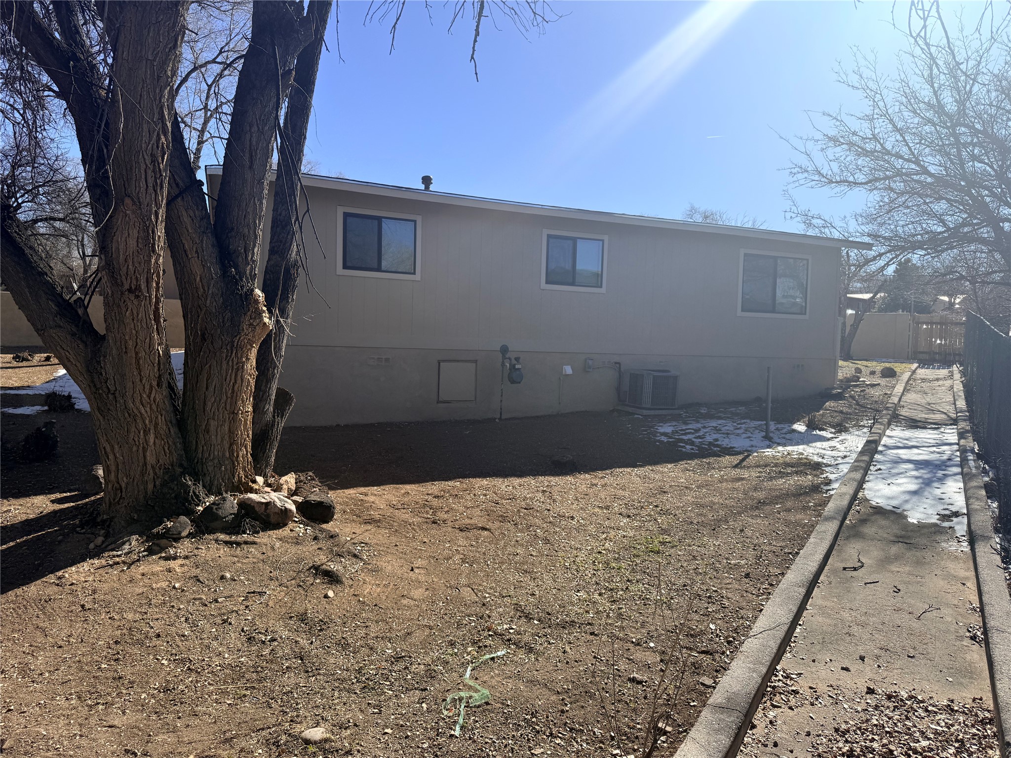 Single Story Home - 3 or 4 bedroom home, 2 baths located at end of cul-de-sac. Fenced yard with access to walking trail in rear. New paint, flooring, cabinets, solid surface countertops, carpet, fixtures. Converted garage may be used as 4th bedroom or large second living area. Refrigerated air. Stainless appliances with stackable washer/dryer located in kitchen area. Fridge will be provided. Large storage/workshop room accessed in backyard separate from home.