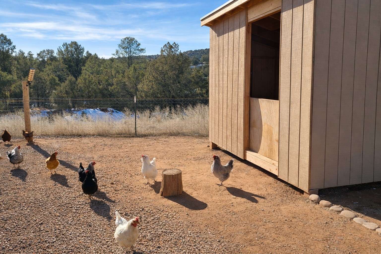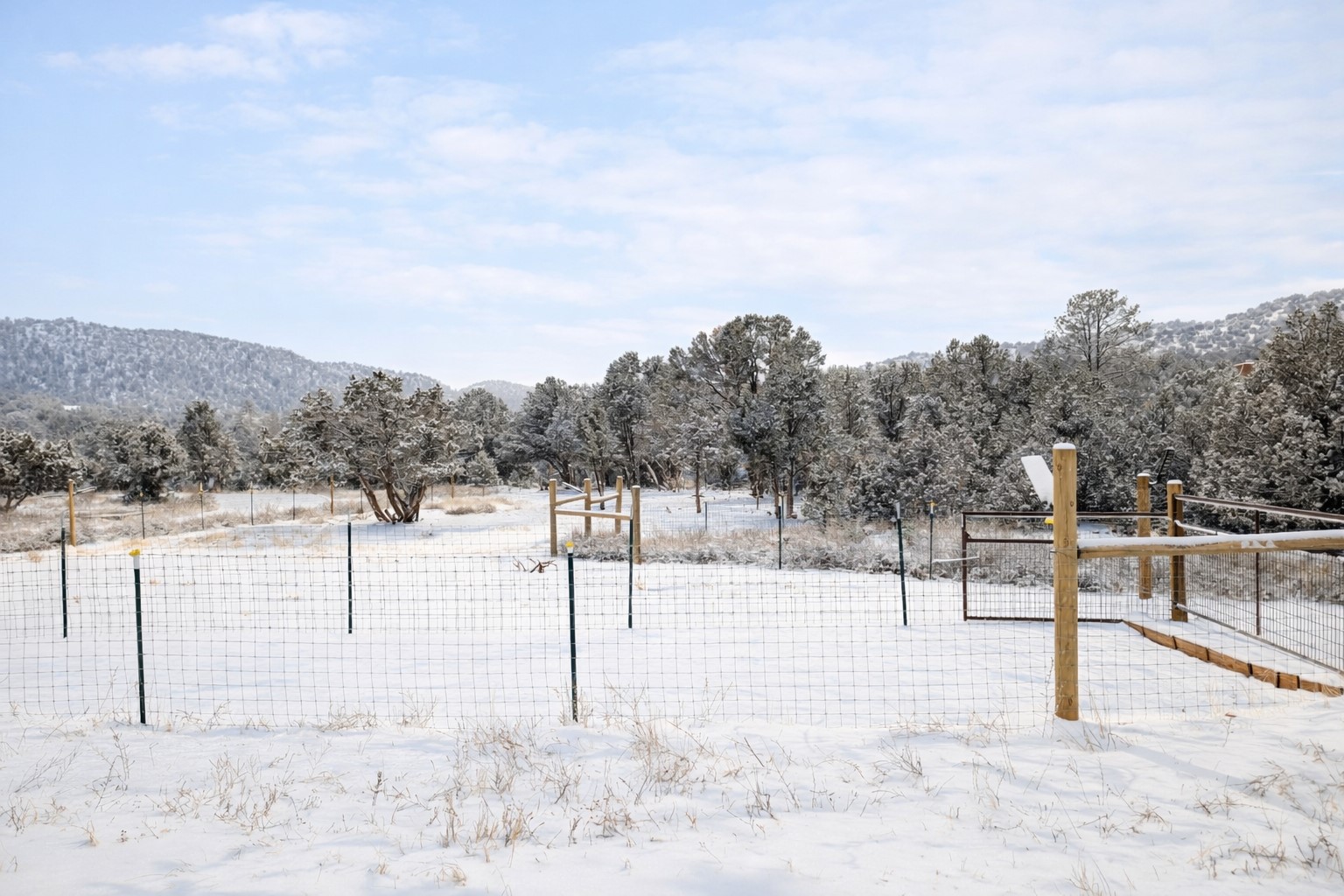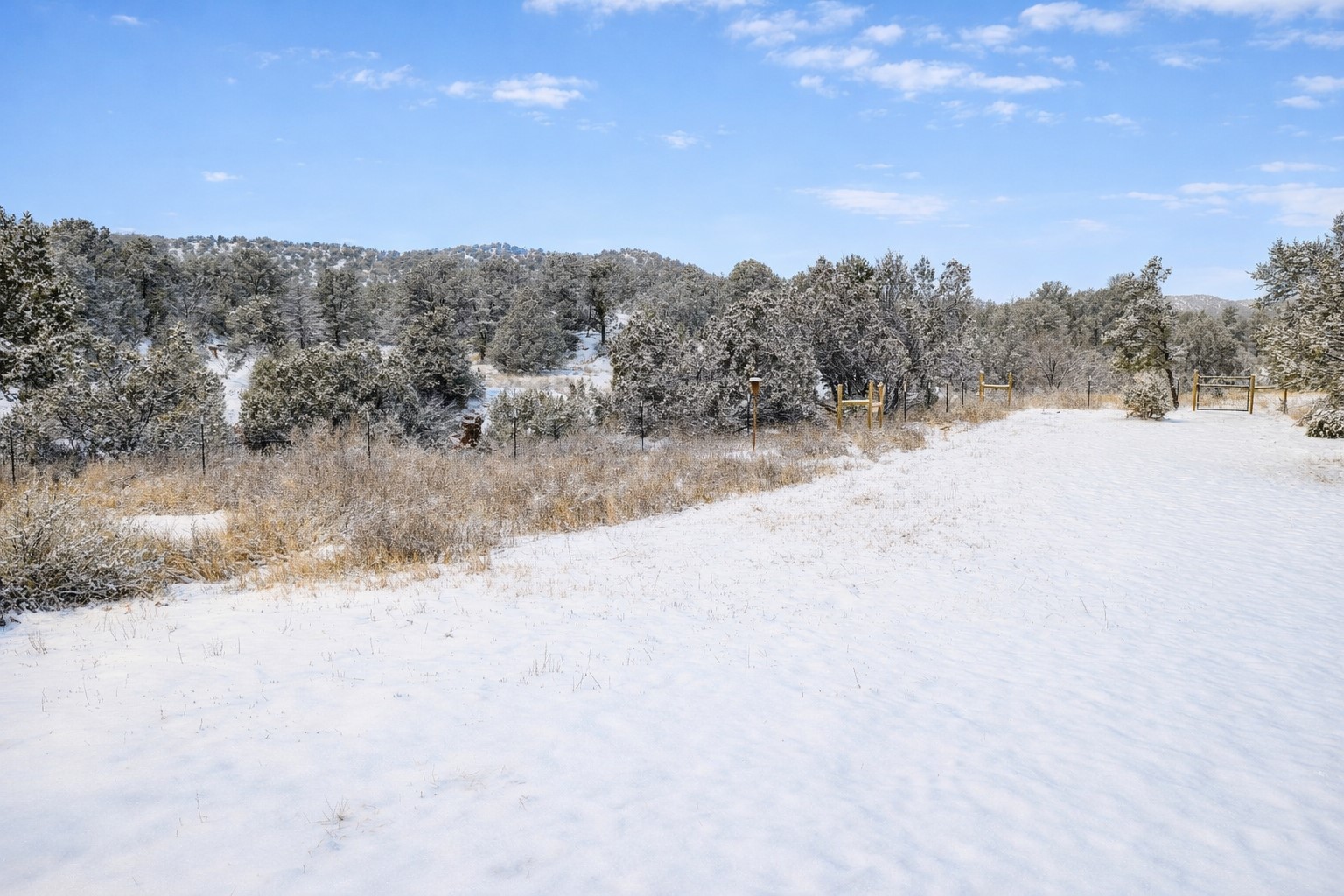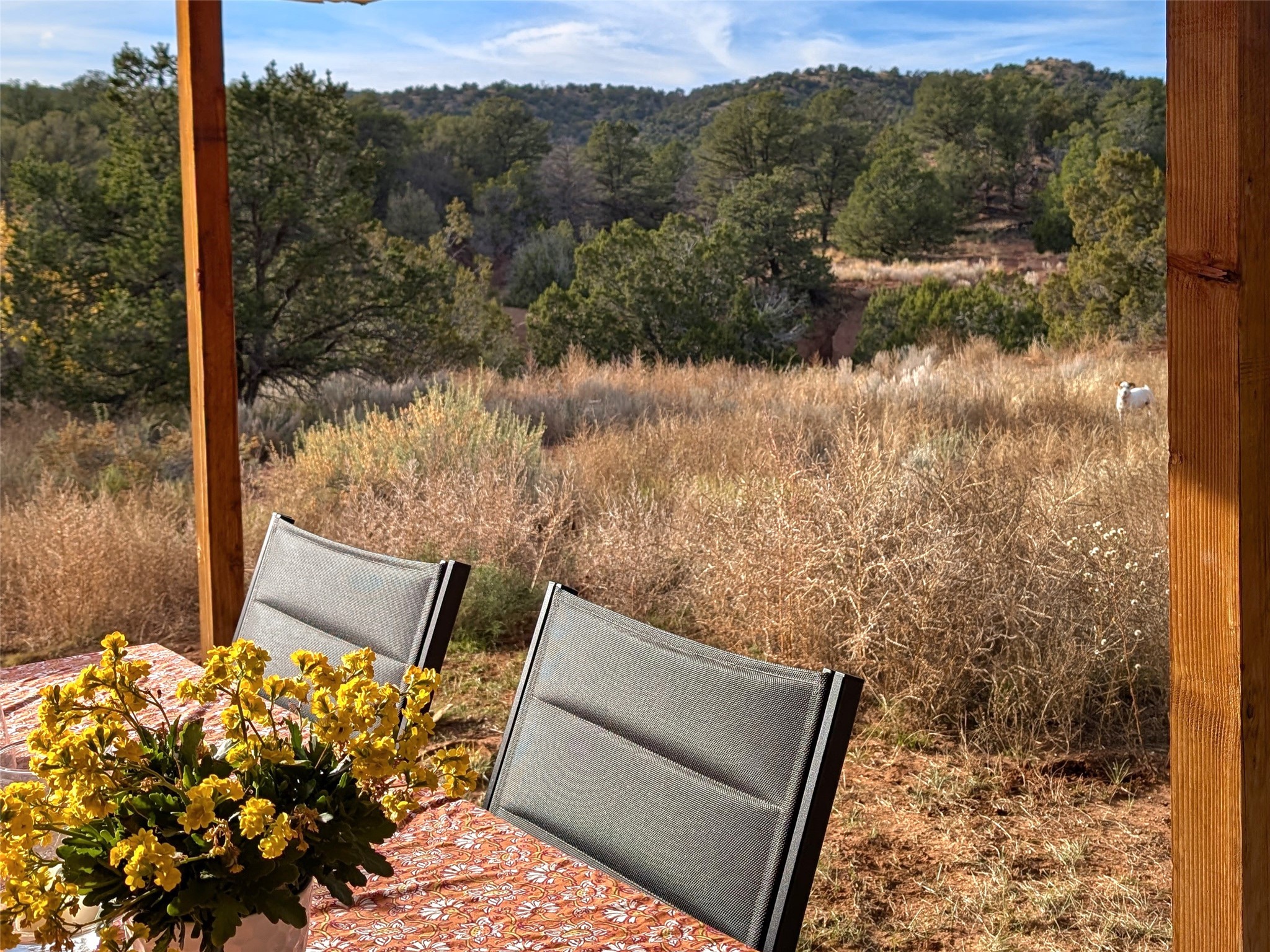 Escape to this enchanting 3-bedroom, 2-bathroom country retreat on 2.6 private acres in Lower Canoncito, just 20 minutes from the Historic Santa Fe Plaza. This sanctuary is defined by its dramatic rock formations and sweeping 360-degree views, offering a rare combination of absolute privacy and immediate access to the 4,100-acre Eldorado Preserve and the Galisteo Basin.The home's interior features an open-concept living area under soaring cathedral ceilings, leading to a large, fully fenced front perennial garden and a back portal with unobstructed "forever views" and no other properties in sight. The layout emphasizes privacy and functionality; the Owner's Suite, complete with an ensuite bathroom and walk-in closet, is situated away from the guest wing. A refreshed gallery kitchen offers ample counter space and a spacious walk-in pantry, complemented by new paint and a brand-new dish washing machine.Infrastructure and lifestyle upgrades are at the forefront of this property. A state-of-the-art NAVIEN system provides both instant hot water and efficient radiant heat, while Starlink is already installed for high-speed connectivity. The land is perfectly equipped for a homestead lifestyle, featuring a massive new livestock corral with a 10x12 barn shed and attached chicken coop. The property is fully fenced with strategic entry gates at the far end for easy access. To support the lush surroundings and water conservancy, the home utilizes a shared 12,000 gallon well with a brand new well pump and 2,000-gallon cistern/grey water systems connected to the roof of the home for rainwater catchment. This is the ultimate refuge for an artist, writer, or family to enjoy the enchanting open skies and inspiration of Northern New Mexico.