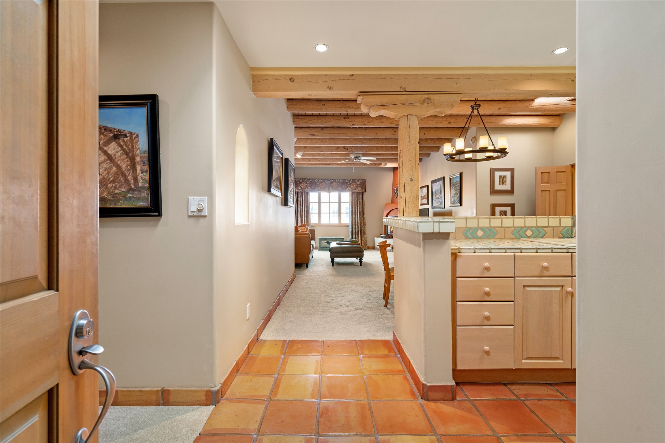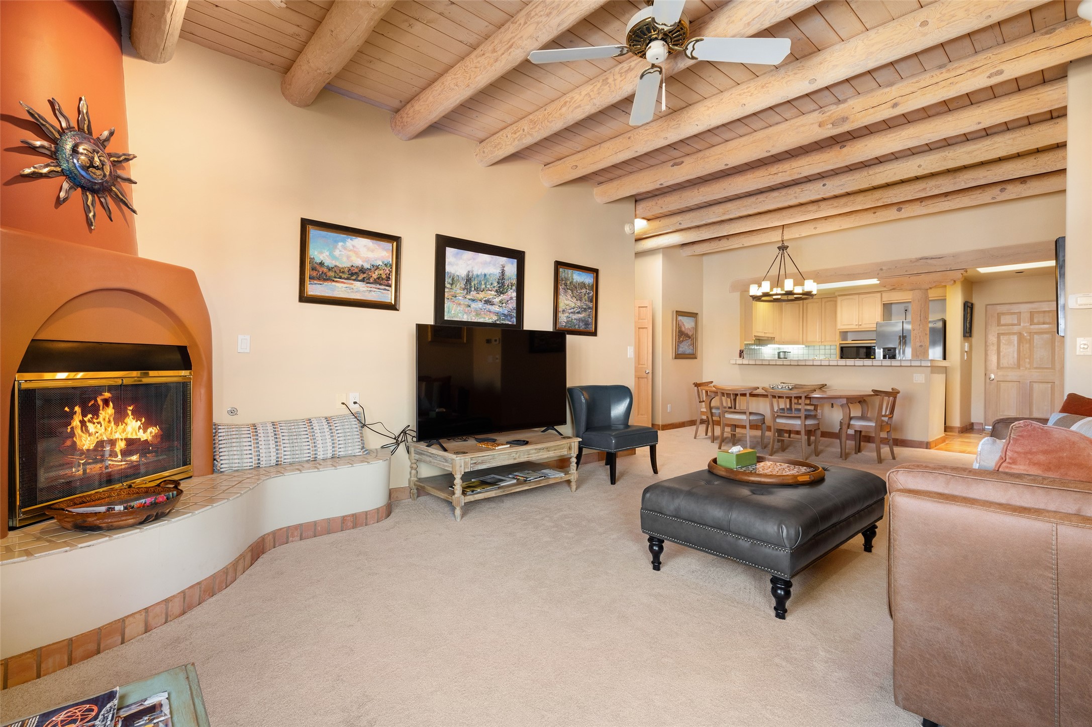 Rarely does a unit offer such a prime, "heart-of-the-community" location. Step out onto your private portal and take in the serene view of the celebrated Bear Sculpture, one of the community's most cherished landmarks. This isn't just a home; it's a front-row seat to the beauty and tranquility that define this 103-acre gated oasis.Unbeatable Proximity & Convenience Forget the long walks across the complex. From this front-door location, you are mere moments away from Quail Run's world-class amenities. Whether you are heading to a morning session at the state-of-the-art fitness center, a refreshing dip in the 65-foot indoor ozone-purified pool, or a fast-paced game on the tennis and pickleball courts, everything is right at your fingertips.Southwestern Elegance Meets Modern Comfort Inside, the home radiates warmth and light. The thoughtfully designed floor plan offers an ideal separation of bedrooms, providing maximum privacy for you and your guests. High ceilings, classic Santa Fe architectural details, and large windows create an inviting atmosphere that is both grand and cozy.PGA-Rated Golf: A challenging 9-hole course just steps away.Clubhouse Dining: Enjoy gourmet Southwestern fare at the on-site Bar & Grill.Low Maintenance: Lock-and-leave convenience just minutes from the Historic Santa Fe Plaza.