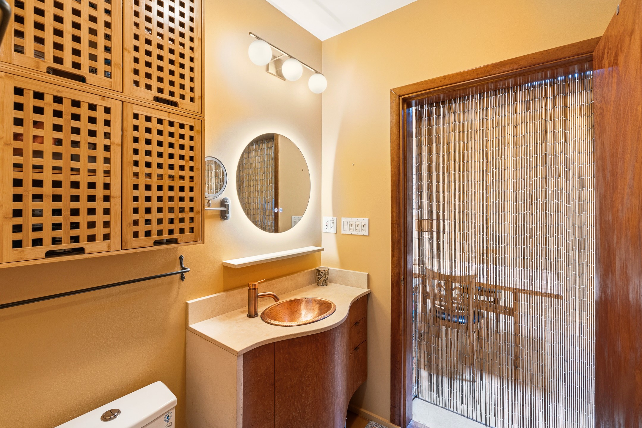 Sited on 5 acres in Dos Griegos and just 20 minutes from the Santa Fe Plaza, this inviting property offers a main house, an attached casita and a 250 sq. ft. attached storage room. A thoughtful nod to sustainable living is reflected in the two-year-old solar array with a rare Pearl Certification and a transferable warranty.Upon entering the home, the formal living room welcomes you with soaring ceilings, vigas, and abundant natural light. A double-sided wood-burning fireplace connects this elegant space to the kitchen's secondary living area, creating warmth and continuity between the rooms. French doors in the living room open to the landscaped backyard, inviting indoor-outdoor living.The kitchen, living, and dining areas form the heart of the home with direct access to a flowing koi pond, where the gentle sound of falling water creates a peaceful year-round setting.Tucked quietly off the kitchen through the laundry room, an additional suite offers a private retreat with its own living room, bedroom, and bath--ideal as an additional primary suite, guest quarters, or studio.In the main home's bedroom wing, the spacious primary suite enjoys abundant southern light and features a colorful bath with soaking tub and walk-in shower. A walk-in closet connects to a dedicated office, creating a flexible work or creative space. The guest bedroom includes a wood-burning kiva fireplace and ensuite bath.The backyard features an organic garden, tranquil koi pond, and southwest-facing patio ideal for outdoor dining. No HOA dues. Served by natural gas and Eldorado community water. A versatile property offering space for generational living or gathering with family and friends.