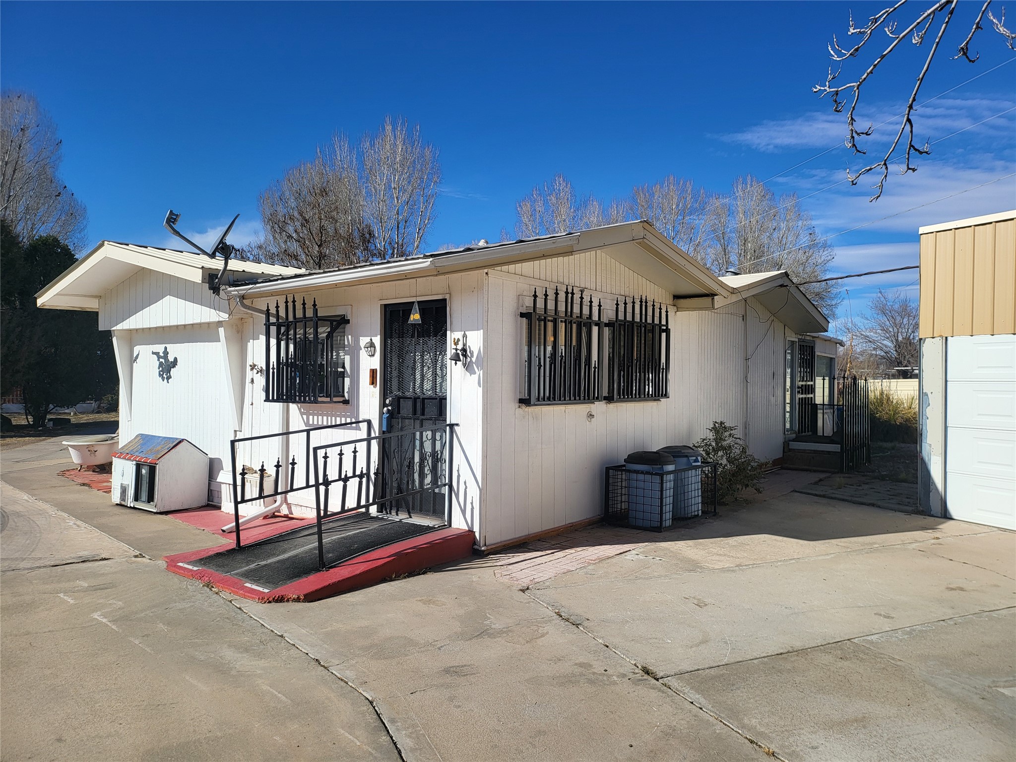Single wide mobile home with additions on 0.42 lot in quiet San Pedro residential area with 497sf apartment. 3 detached garages totaling 5 bays, large 1290sf detached shop. This is an estate sale and requires some upgrades, being sold cash, as is. Furniture included with sale.