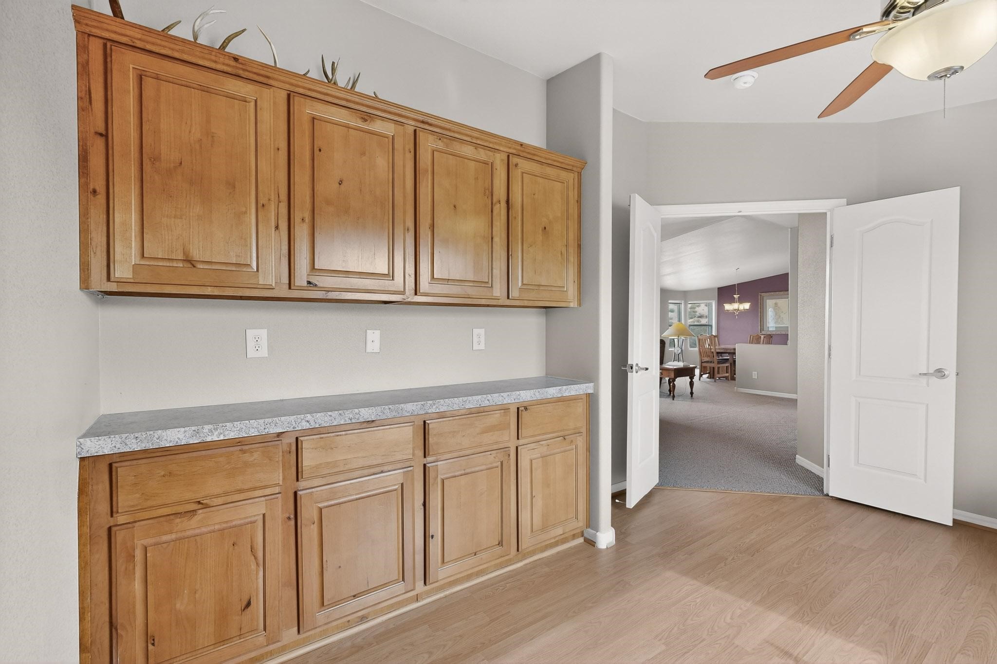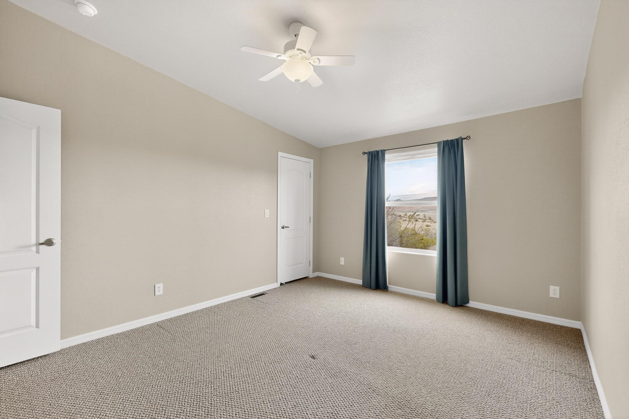 Discover unparalleled tranquility and magnificent scenery at this exceptional 9.43-acre property, offering quiet privacy and stunning lake and mountain vistas. This meticulously maintained acreage has about 3.5acres fenced, providing a secure and serene environment for the perfect New Mexico lifestyle. The full-featured, spacious 2,010 sq. ft. home is designed for comfortable living and practical functionality. Storage is ample, including an oversized laundry room and an impressive 30 ft. by 30 ft. garage. The heart of the home is the spacious, user-friendly kitchen, a culinary delight boasting high-quality finishes, a Bosch dishwasher, and a central island complete with a second sink and a convenient eating bar. The master suite is a true sanctuary, featuring its own private covered porch--an ideal spot for morning coffee or quiet reflection. The large ensuite bath is a luxurious space with a beautifully tiled walk-in shower and an expansive, huge closet. The second bedroom offers the same stunning views as the master and includes its own generous walk-in closet. A flexible office space features elegant built-in cabinetry and holds the potential to easily serve as a comfortable third bedroom. Throughout the home, you will find high-end architectural details and finishes, including soaring vaulted ceilings, solid stem walls, rich hickory cabinets, graceful arched doorways, and durable berber carpets. Allow yourself to be completely enchanted by the legendary sunrises and sunsets that grace this part of New Mexico, painting the sky with unforgettable colors. We invite you to experience this property in full detail. Read the narrative under the first two photos. Please watch the comprehensive 3D VIDEO and the SHOWCASE VIDEO to fully appreciate the unique beauty and quality of this extraordinary lake-view retreat.