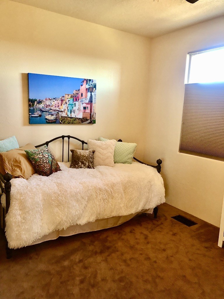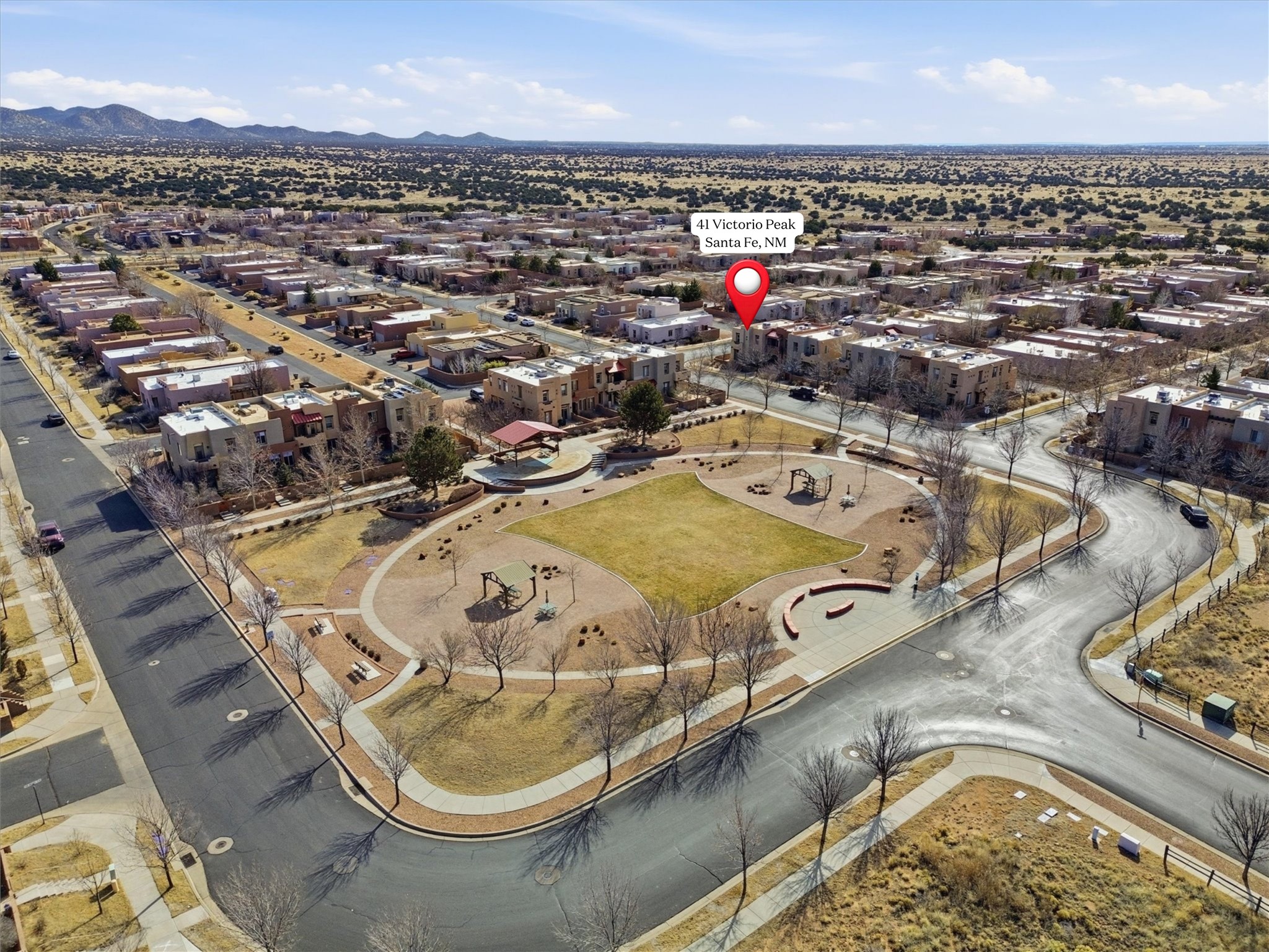 Elevate your lifestyle with this exceptional sun filled end-unit townhome in the desirable Rancho Viejo community. Combine modern comforts and Santa Fe charm in this elegant residence of +/-1700 sq. ft. thoughtfully designed living space with a versatile 3BR and 2 1/2 Bath. Step into a low maintenance wrap around courtyard on a flagstone patio with a sliding door to the tiled dining area. In the kitchen, you'll experience updated modern amenities including a new appliance package (2025) and a Kohler black stainless steel farmhouse sink. Convenient soft close cabinetry and Rev a shelf cabinet drawers for easy access. Enjoy filtered drinking water with the RO water filtration system.The living room is centered around a traditional Kiva gas fireplace and dramatic two-story ceiling adorned with classic vigas and clerestory windows. An efficient HVAC system with a Google Nest control panel allows remote monitoring while away or on the go. In-home and remote monitoring security features include Simplisafe security system and video ring doorbell.Follow the tiled hallway to the flex room appointed as an additional bedroom, office or media room with courtyard view and entry. Powder room (1/2 bath) is steps away. Upstairs, the primary bedroom ensuite offers a private retreat complete with sliding door to a generous deck to enjoy the remarkably quiet neighborhood with views to the East, South, and West. Your walk-in closet is set adjacent to the double vanity, bathtub and water closet.A loft area and second bedroom with reading nook and full bath completes the upper floor. All rooms adorned with custom Graber cellular shades. Entire interior repainted (2023) with custom accent walls. Solid wood door package complements the warm color palette.Additional upgrades include dimmer switches in every room with new flush mount overhead lighting and replaced lighting fixtures throughout.Ample storage with ground floor closet below stairway, double door linen closet off of loft and custom floor to ceiling cabinets in the attached 2-car garage.With Santa Fe's 320+ days of sunshine a year, the surrounding miles and miles of (paved) walking/biking trails are the perfect place for your sunrise and sunset strolls.