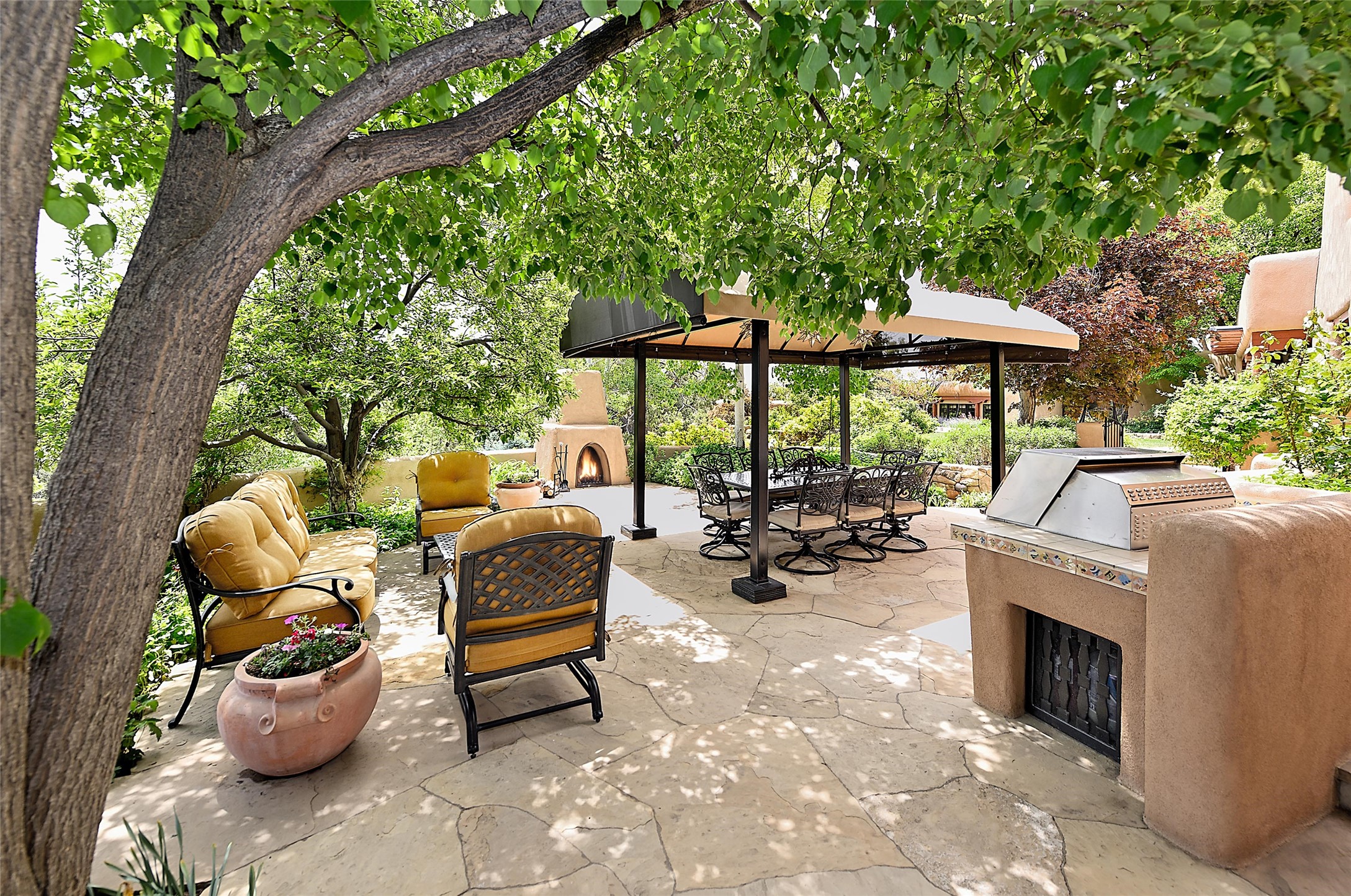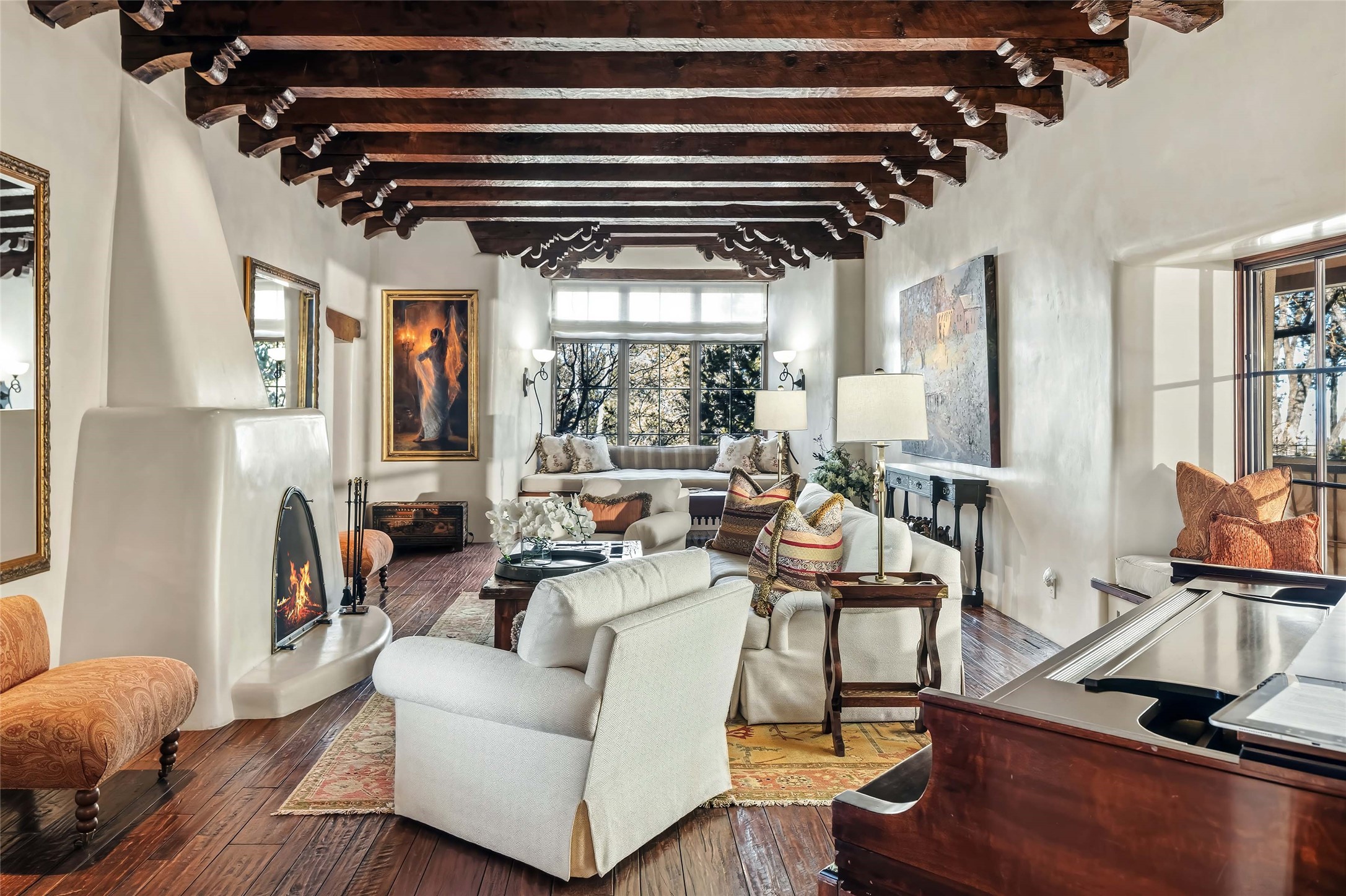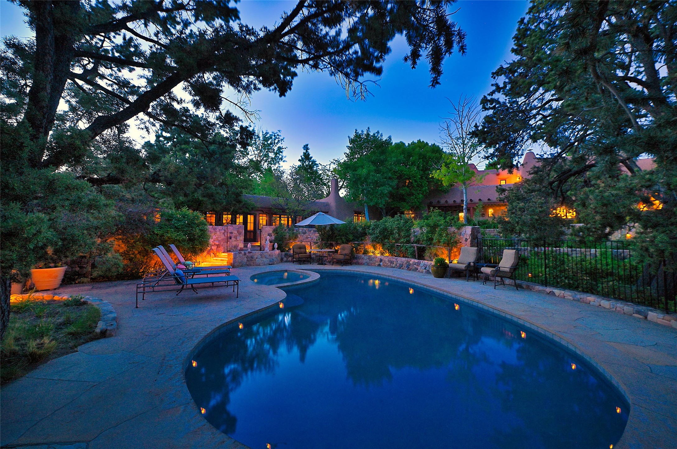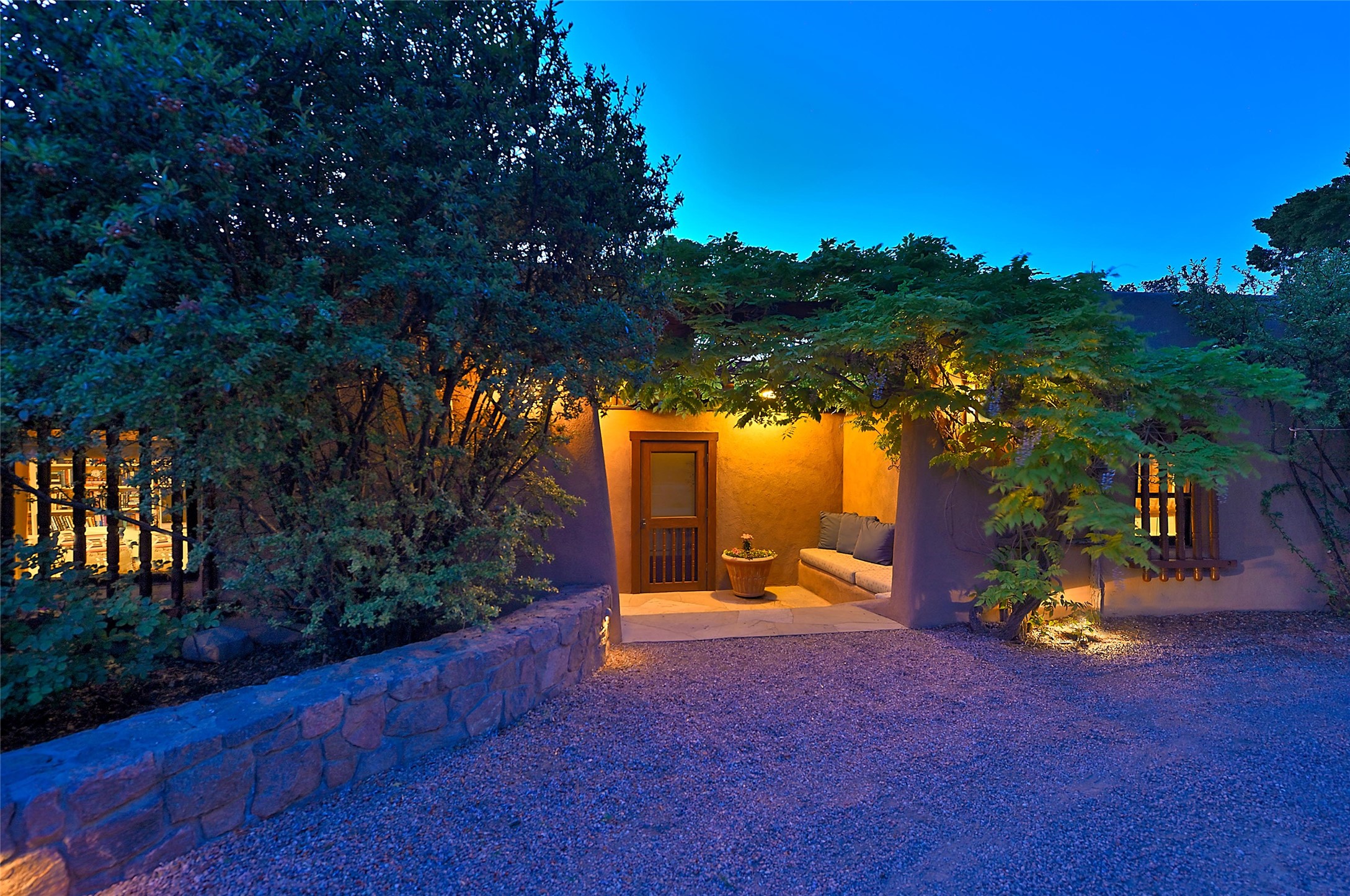 There are estates -- and then there are legacies.Originally commissioned in 1931 by Governor John Dempsey, Casa Alegre stands as one of Santa Fe's most storied residential compounds. Just minutes from the Plaza yet unfolding across 11 private acres, the property represents a rare intersection of political history, architectural integrity, and enduring Southwest elegance.The six-bedroom adobe main residence remains grounded in its original character -- thick adobe walls, hand-finished details, and fireplaces that anchor gathering spaces with warmth and permanence. A meticulous four-and-a-half-year restoration in the early 2000s revitalized the estate with extraordinary care, enlisting master artisans to preserve its authenticity while discreetly integrating modern systems and comfort. The result is not renovation, but stewardship.Three independent guest houses create a true compound -- allowing the estate to function as both intimate family retreat and gracious host to distinguished guests.Beyond the residences, the grounds unfold as a private sanctuary: mature trees, curated gardens, orchard, stone walking paths, a tennis court, and a heated pool -- each element placed with intention. The scale is rare. The privacy is complete. The proximity to Santa Fe's cultural center is immediate.Over the decades, Casa Alegre has quietly passed through the hands of notable stewards, each contributing to its preservation. Today, it stands as one of the Southwest's most significant legacy offerings.Private. Historic. Irreplaceable.