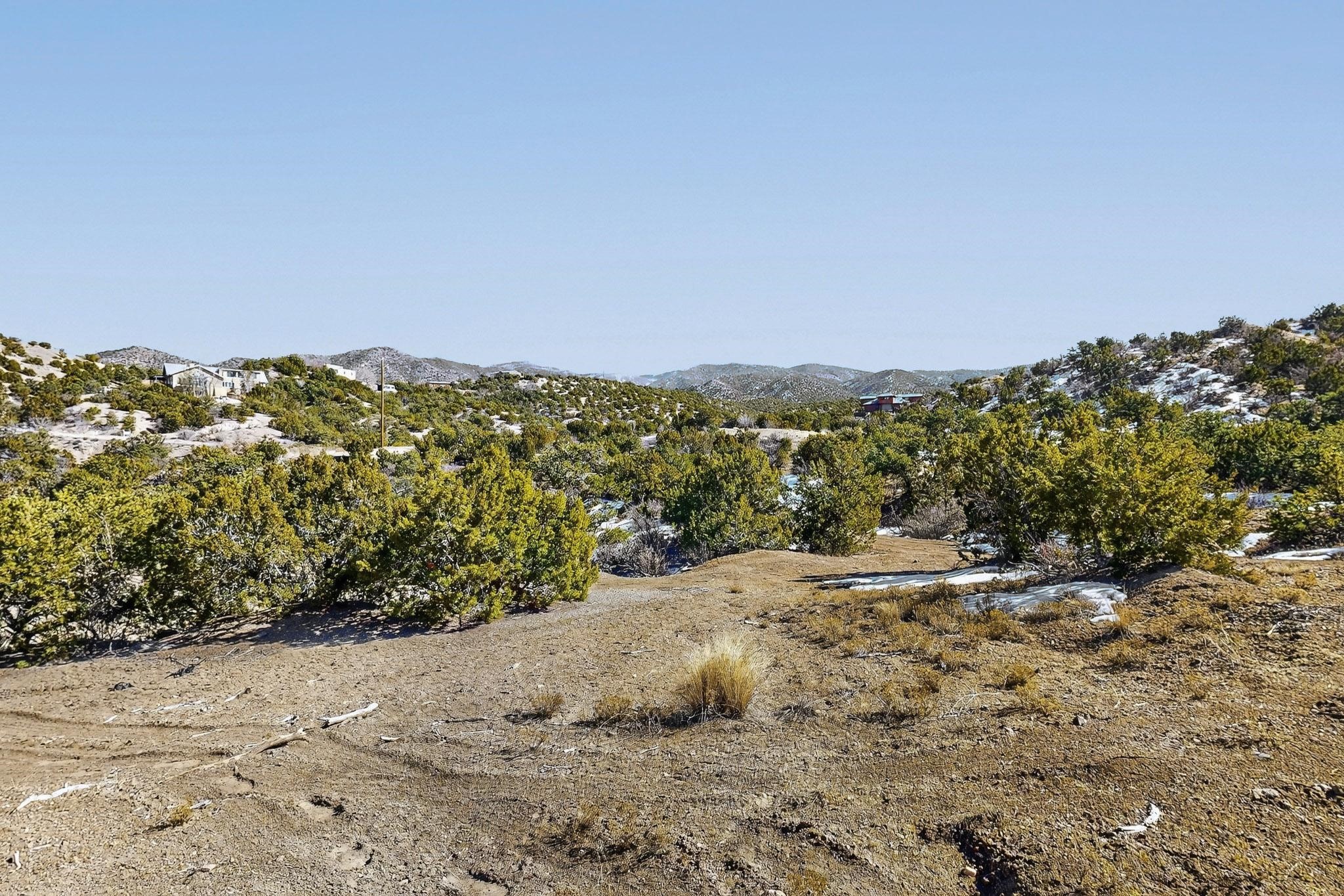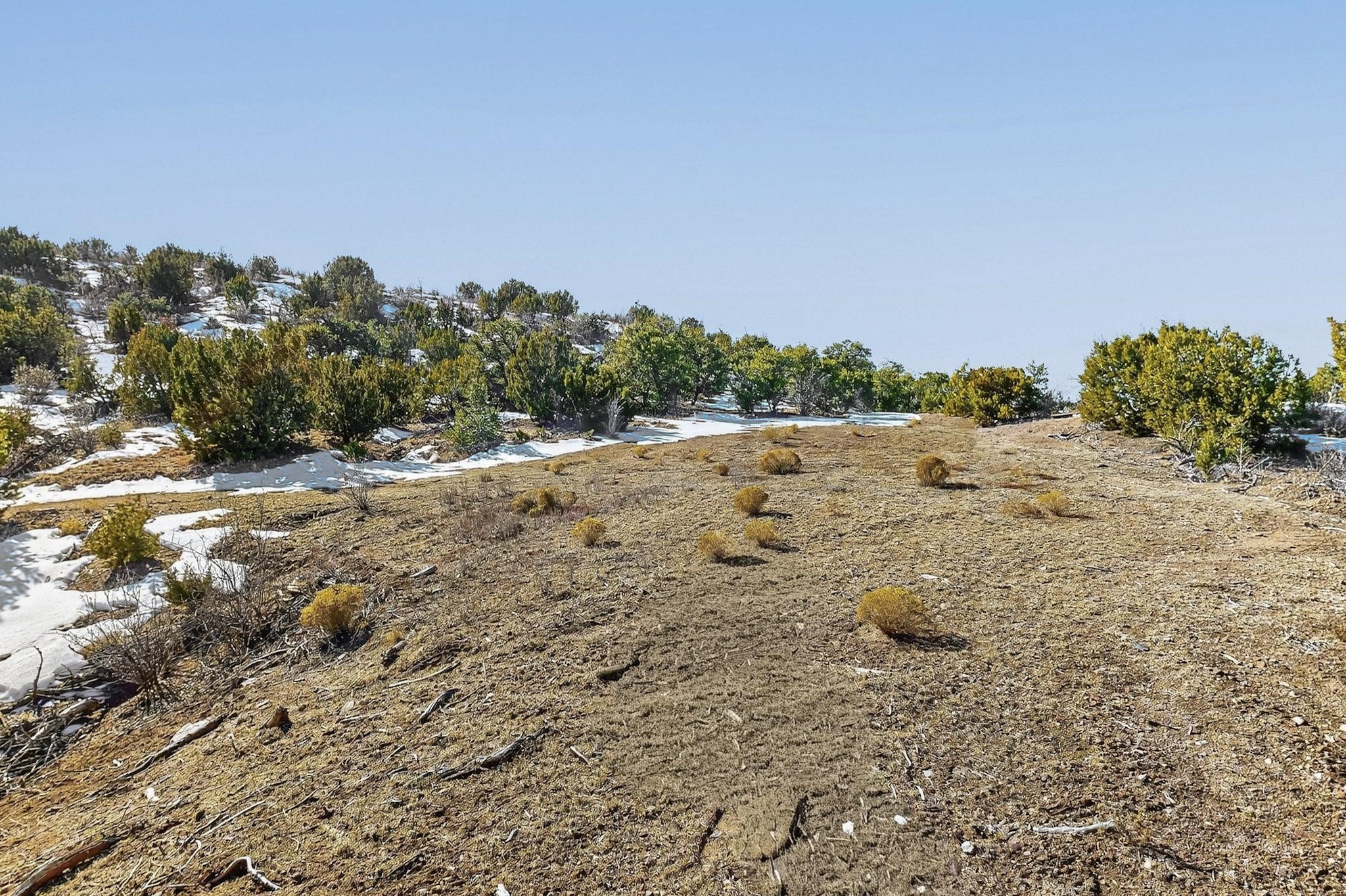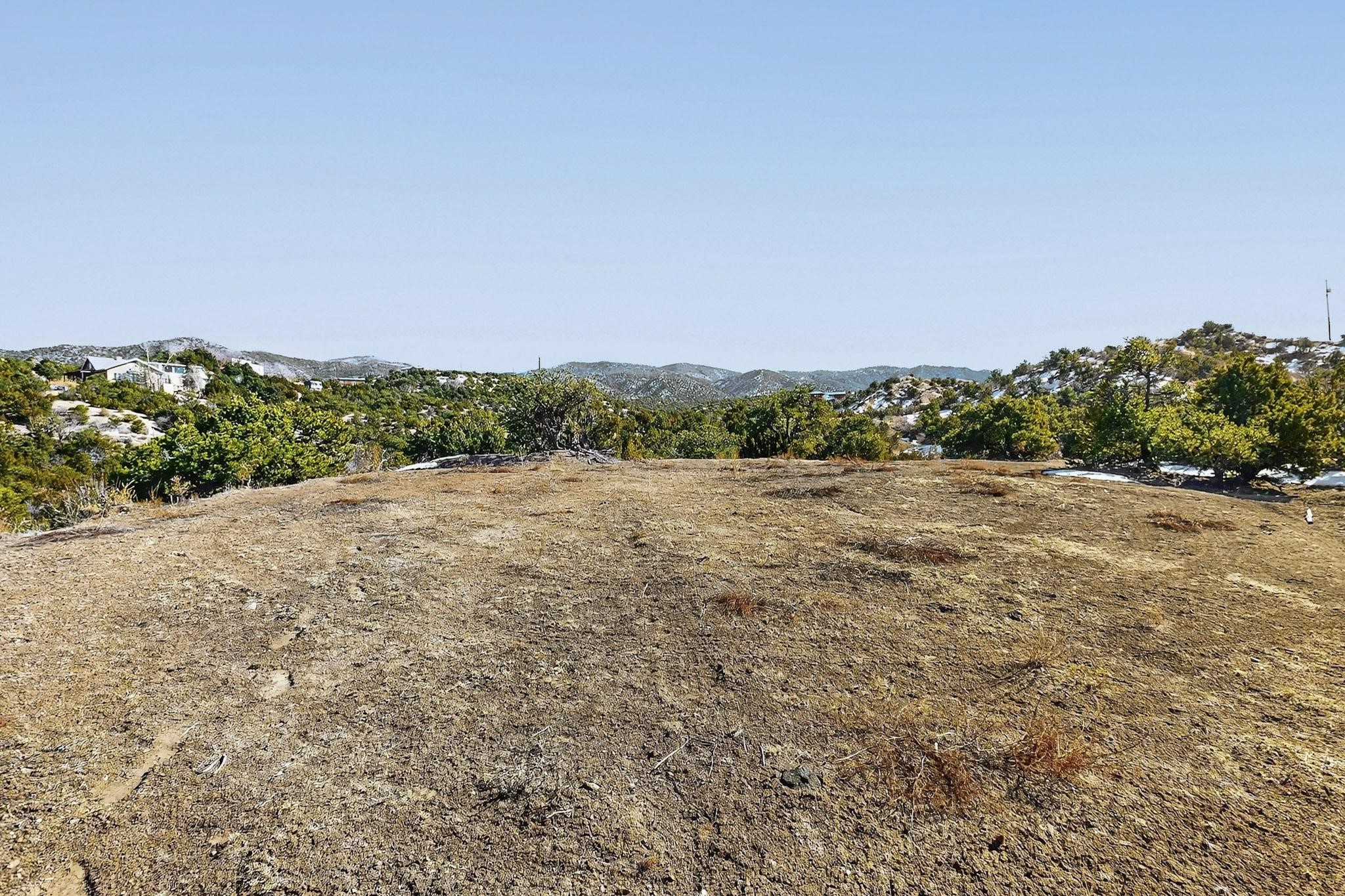 Easy build 15 acre lot with an expansive view through the steep sided canyon to the Jemez mountains to the west. Easy access off State Rd 592 and just a couple of minutes from the village of Rio En Medio, which offers access to a trail head into the mountains of the National Forest and a nearby waterfall. 3 easy and flat building sites. Private well. Power available with PNM drop from on site power line. Minimal CC&Rs. All 5 lots can be purchased as a package. Paved road from Santa Fe to reach this sheltered and privately situated lot. Two minutes drive to fine dining at the Four Seasons Encantado Resort. The Tesuque Village Market is 5 minutes and Santa Fe itself another 10.