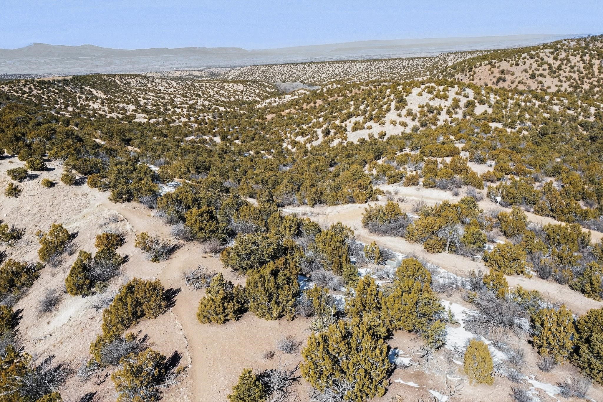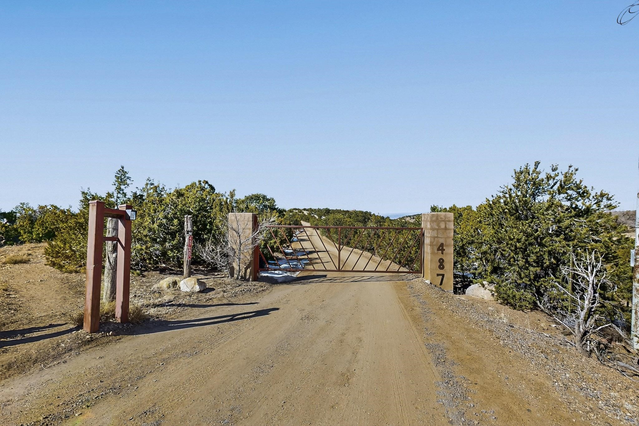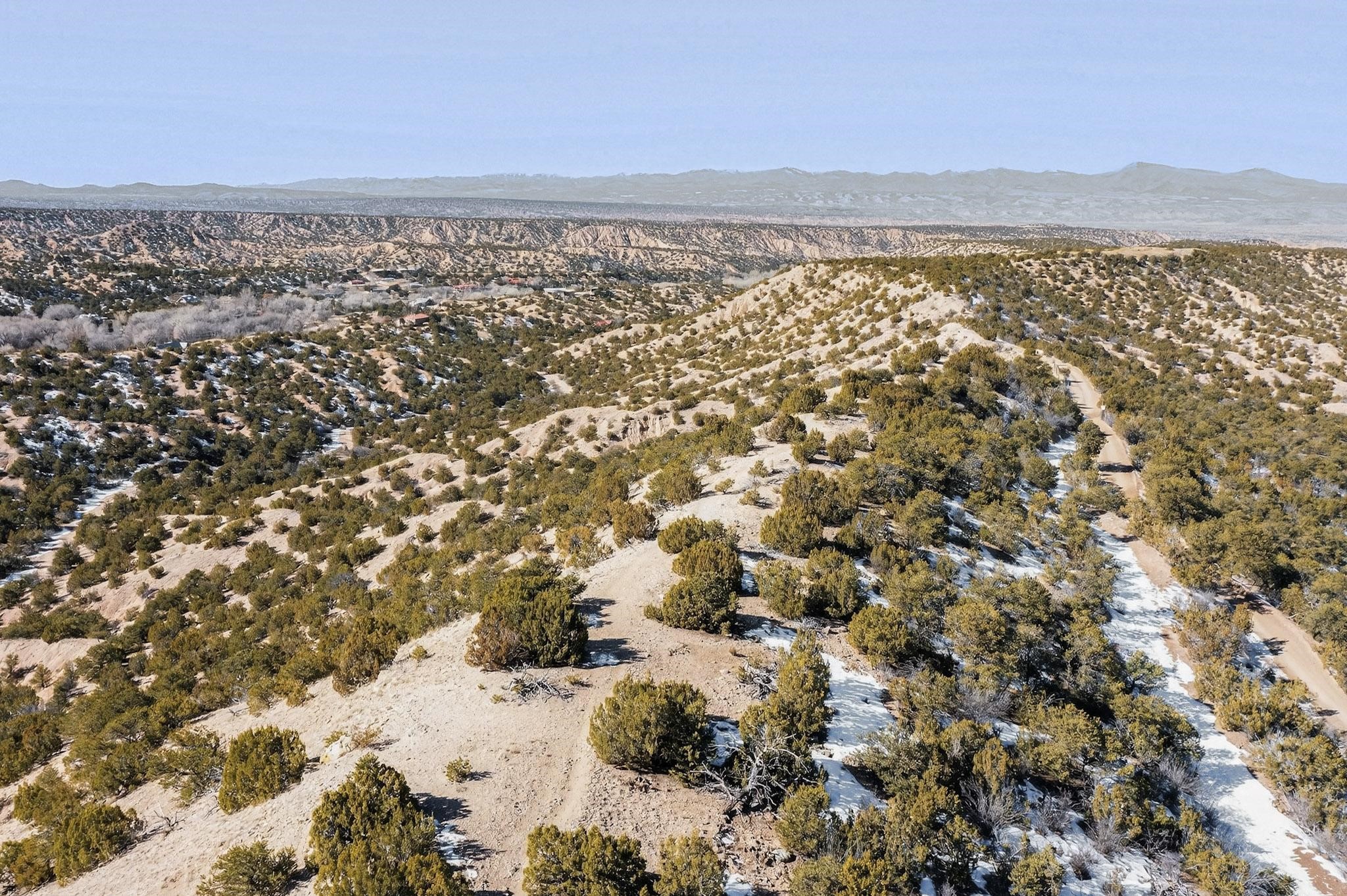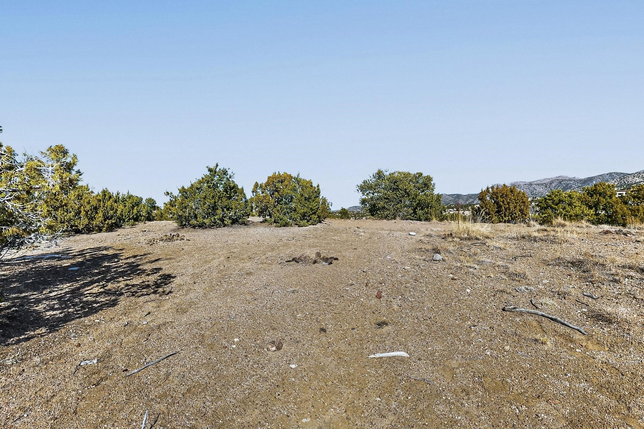 Breathtaking views from this astonishing 5.6 acre ridge top lot in a small private and gated subdivision moments from the village of Rio En Medio, which offers access to a trail head into the mountains of the National Forest and a nearby waterfall. A deep, sandy bottomed, canyon cuts through the lot. On Rio en medio community water. Power available. First lot inside the gate with a large flat building site . Minimal CC&Rs. All 5 lots can be purchased as a package. 2 minutes drive to fine dining at the Four Seasons Encantado Resort. Tesuque Village Market is 5 minutes and Santa Fe itself another 10.