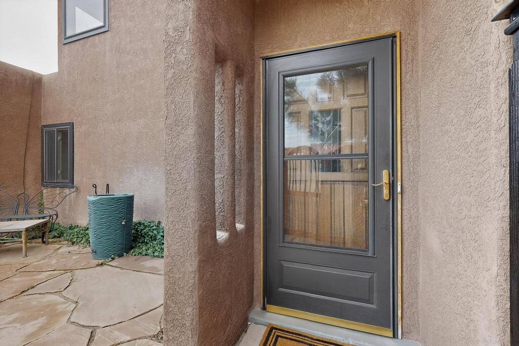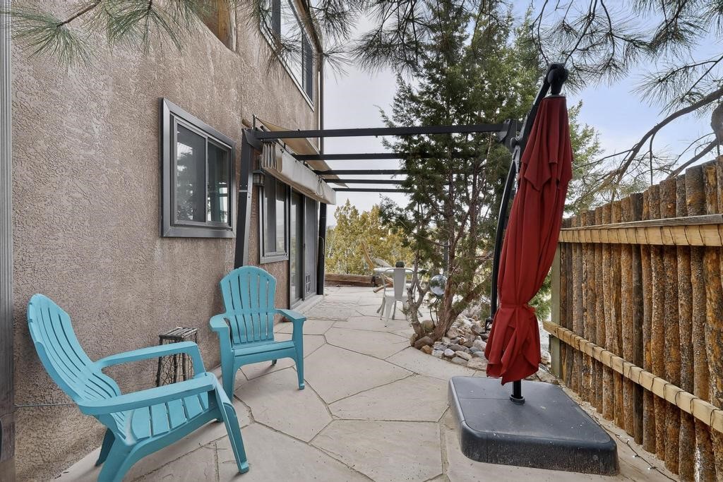 Welcome to a peaceful oasis with incredible views! This updated 2 bedroom, 2 bathroom townhome is full of light & character. A kiva fireplace warms the living space where you can still talk to folks in the kitchen, and enjoy the outdoor views. Downstairs you'll find 1 bedroom & bathroom, and when you go upstairs, notice the nichos along the wall for art. Off of the main bedroom upstairs is a bonus room that the seller is currently using as an art studio. Its could be so many things and with views like that, who wouldn't want to spend time in there?! The laundry is also upstairs along with a bathroom suite. There is plenty of storage with closets, an attached garage & a big storage room. Enjoy nature & sunsets on the flagstone patio w/ retractable awning. Located between Santa Fe & ABQ.