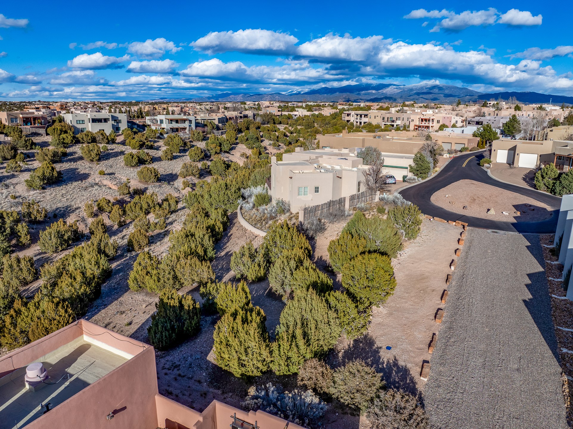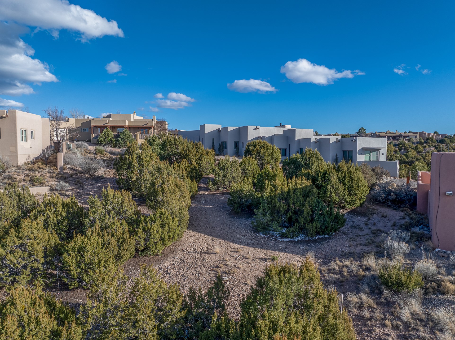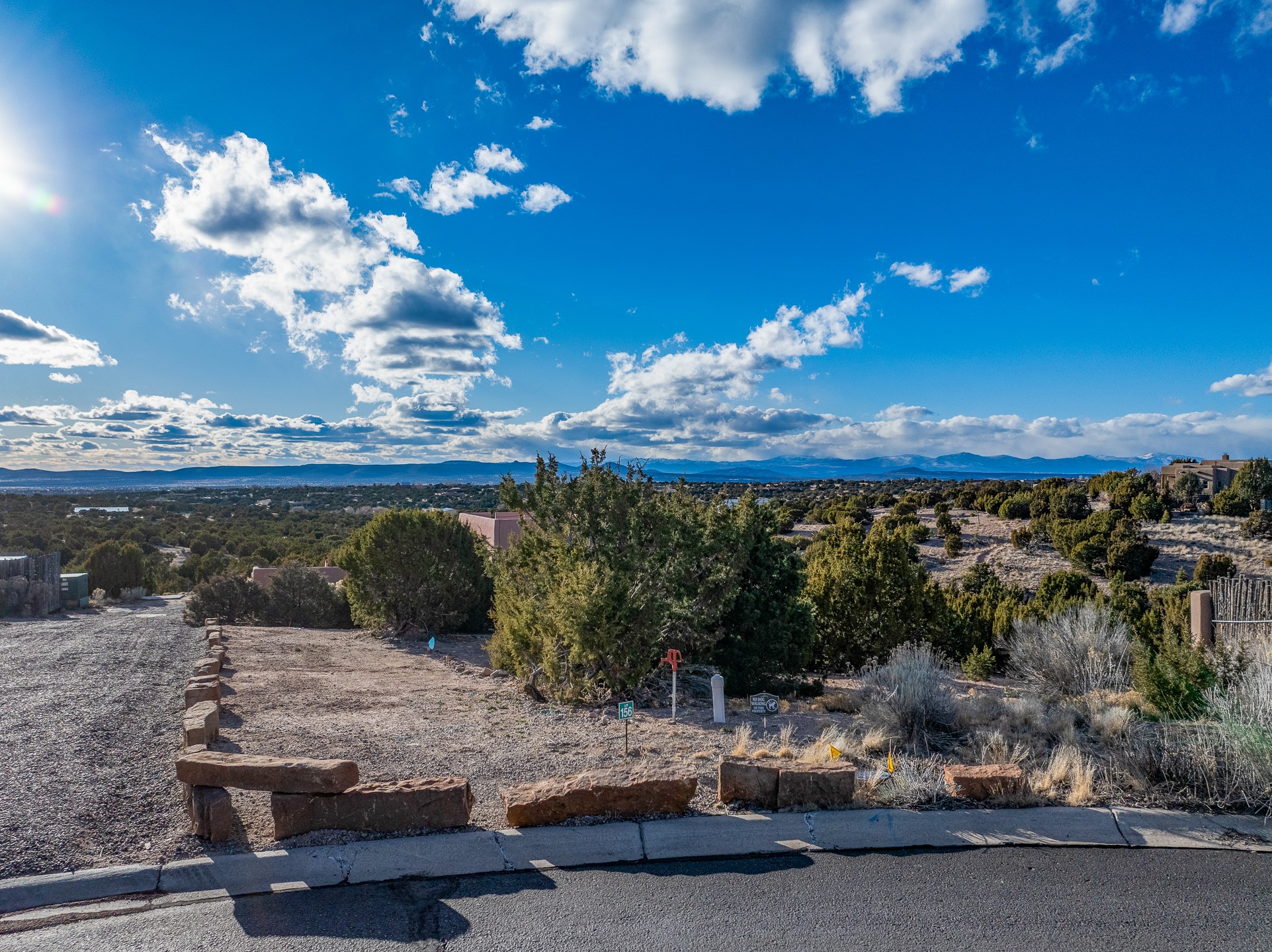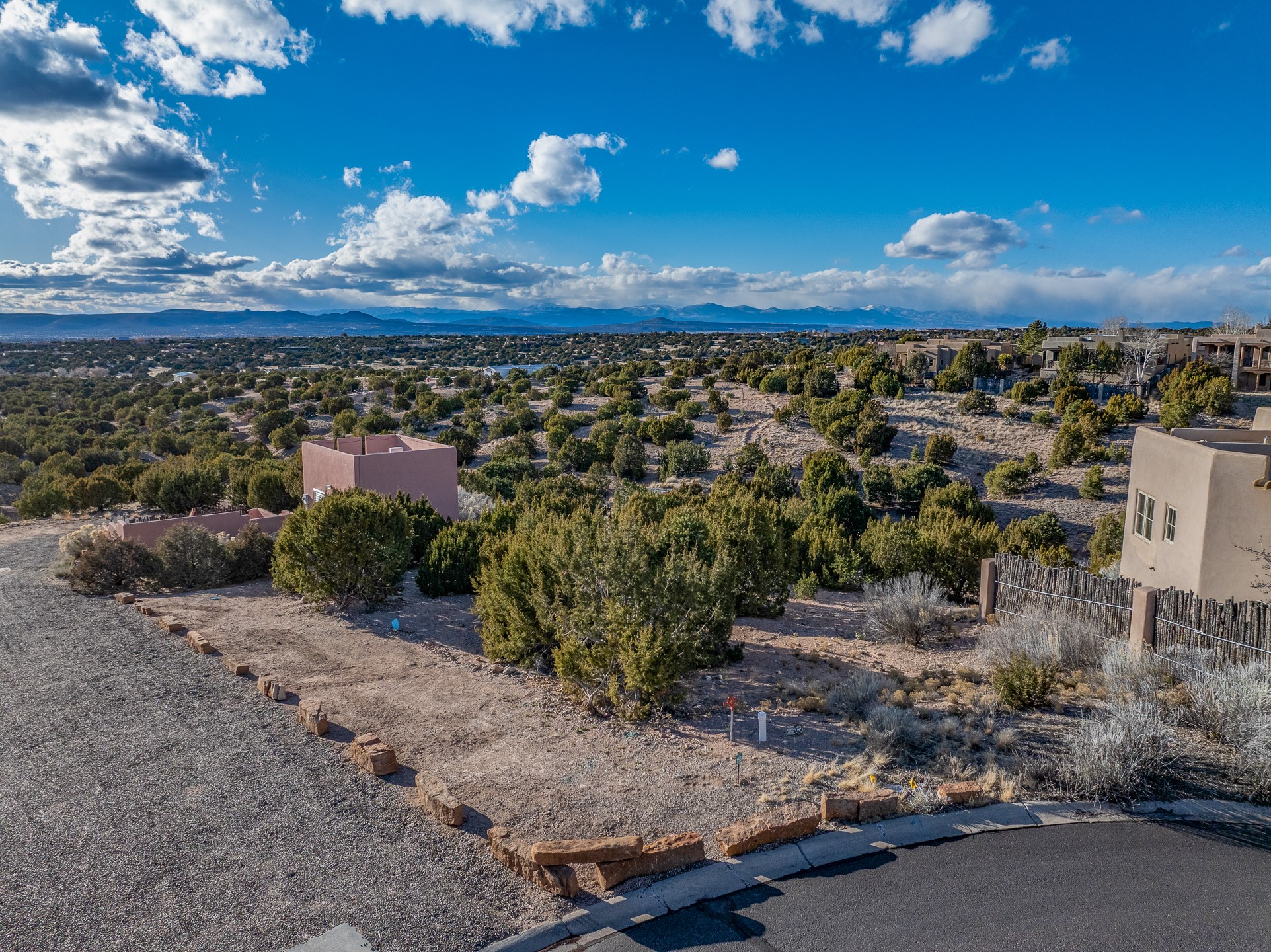 A rare opportunity to build your dream home on one of the final remaining lots in sought-after Aldea de Santa Fe. Tucked away on a quiet cul-de-sac, this premium homesite offers unobstructed sunset views toward the Jemez Mountains and effortless access from the street--an ideal canvas for thoughtful architectural design. Floor plans have been rendered to give you an idea of what you can build.The lot gently backs to open space and a nearby community walking trail, providing both privacy and a seamless connection to Aldea's expansive natural landscape. Mature tree cover and native vegetation enhance the setting, creating a beautiful balance of serenity and village-style living.Aldea is celebrated for its miles of preserved open space, paved streets, and welcoming Community Plaza. Residents enjoy tennis courts and an active neighborhood atmosphere, all just minutes from downtown Santa Fe.All public utilities are readily accessible, including gas and electric at the street, with connections available to community sewer and Santa Fe County water (meter required).An exceptional setting to create a custom residence that embraces panoramic views, brilliant sunsets, and the distinctive lifestyle Aldea is known for.