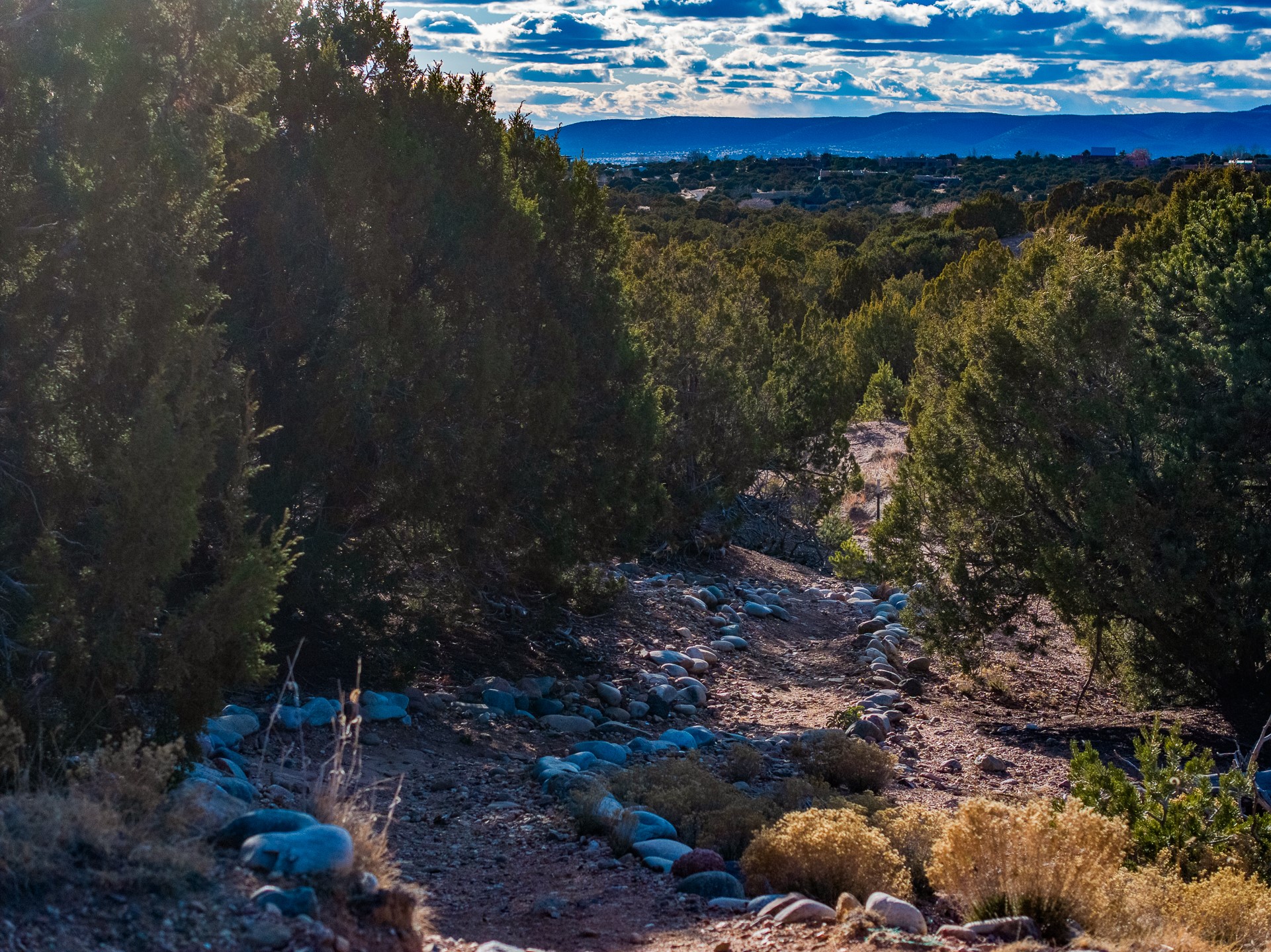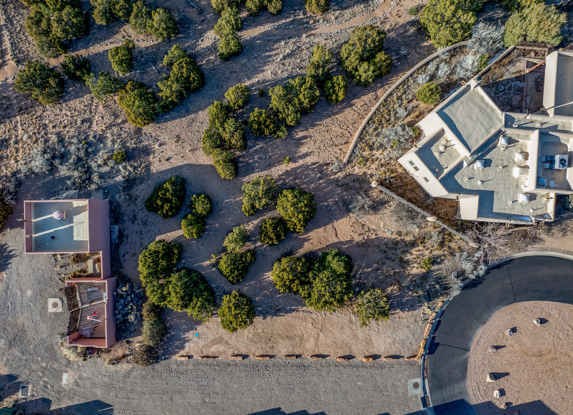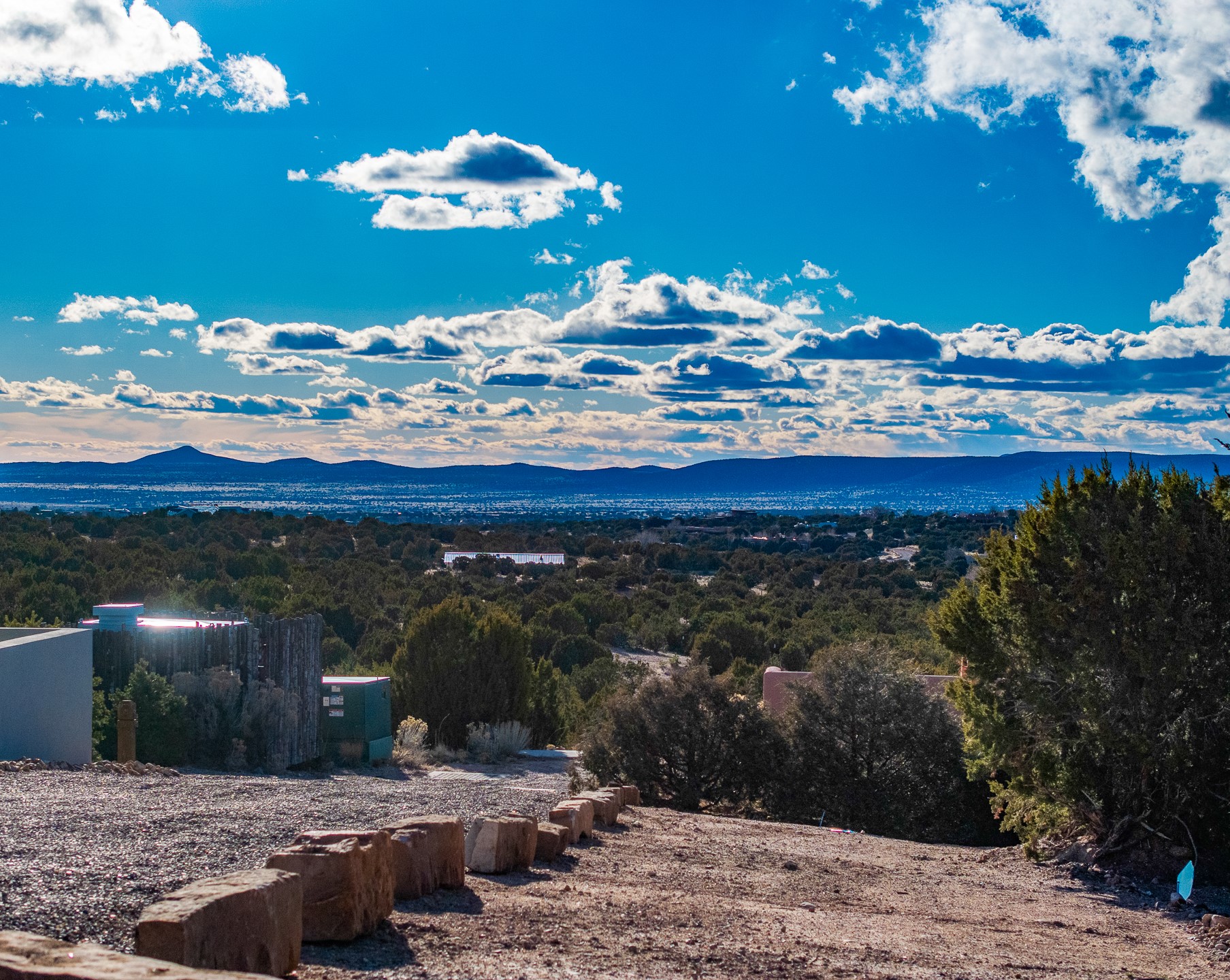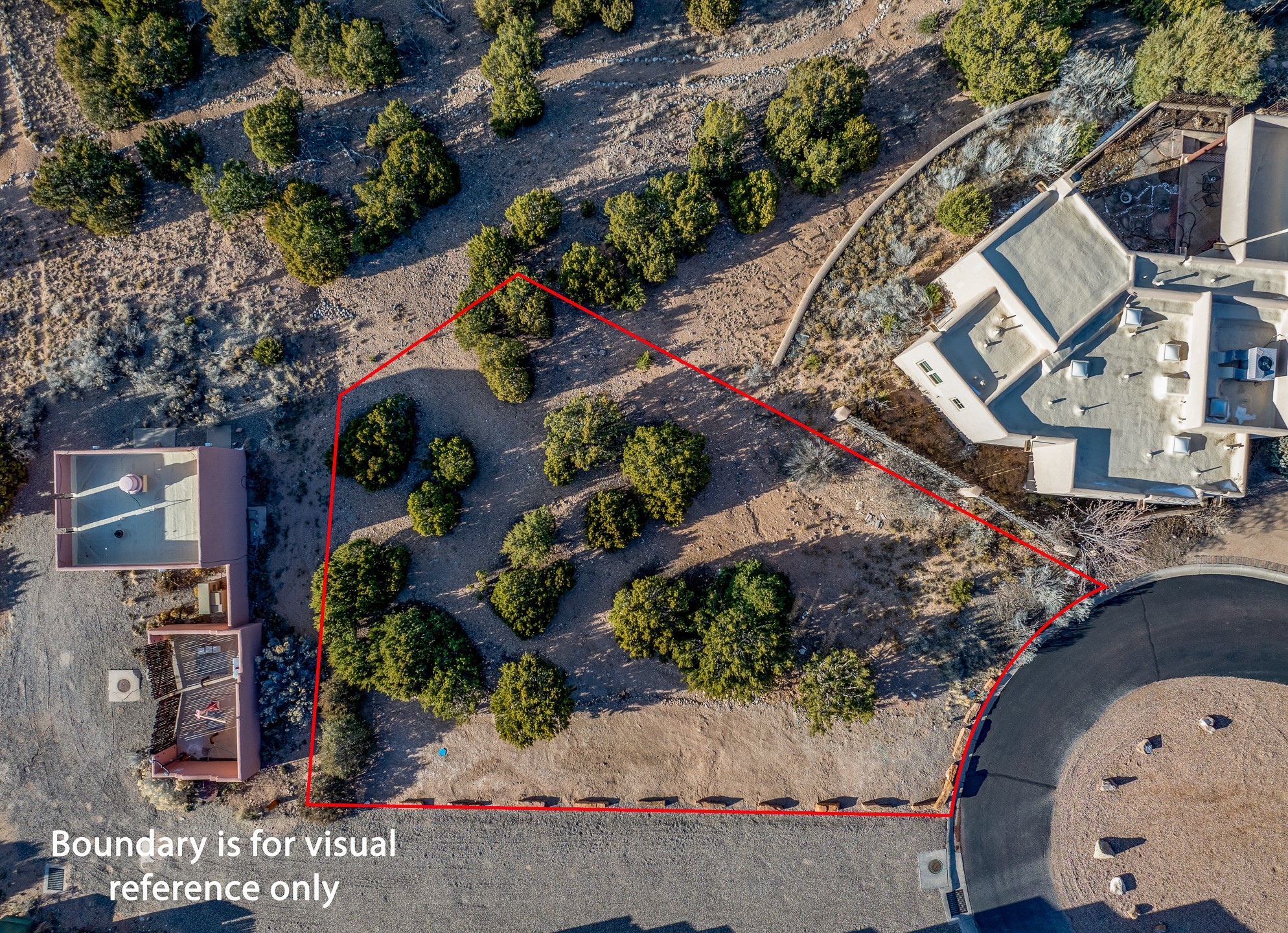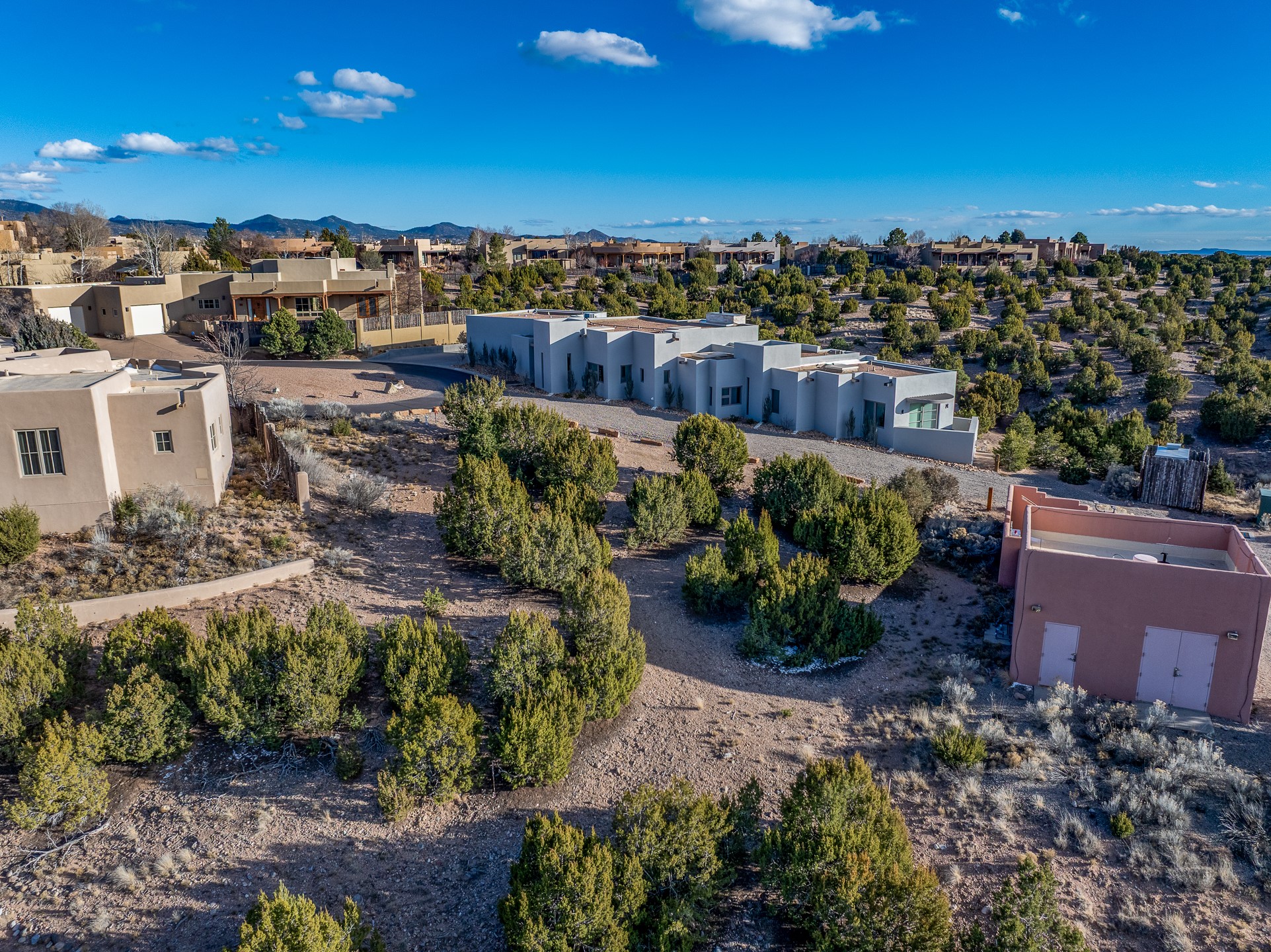 A rare opportunity to build your dream home on one of the final remaining lots in sought-after Aldea de Santa Fe. Tucked away on a quiet cul-de-sac, this premium homesite offers unobstructed sunset views toward the Jemez Mountains and effortless access from the street--an ideal canvas for thoughtful architectural design. Floor plans have been rendered to give you an idea of what you can build.The lot gently backs to open space and a nearby community walking trail, providing both privacy and a seamless connection to Aldea's expansive natural landscape. Mature tree cover and native vegetation enhance the setting, creating a beautiful balance of serenity and village-style living.Aldea is celebrated for its miles of preserved open space, paved streets, and welcoming Community Plaza. Residents enjoy tennis courts and an active neighborhood atmosphere, all just minutes from downtown Santa Fe.All public utilities are readily accessible, including gas and electric at the street, with connections available to community sewer and Santa Fe County water (meter required).An exceptional setting to create a custom residence that embraces panoramic views, brilliant sunsets, and the distinctive lifestyle Aldea is known for.