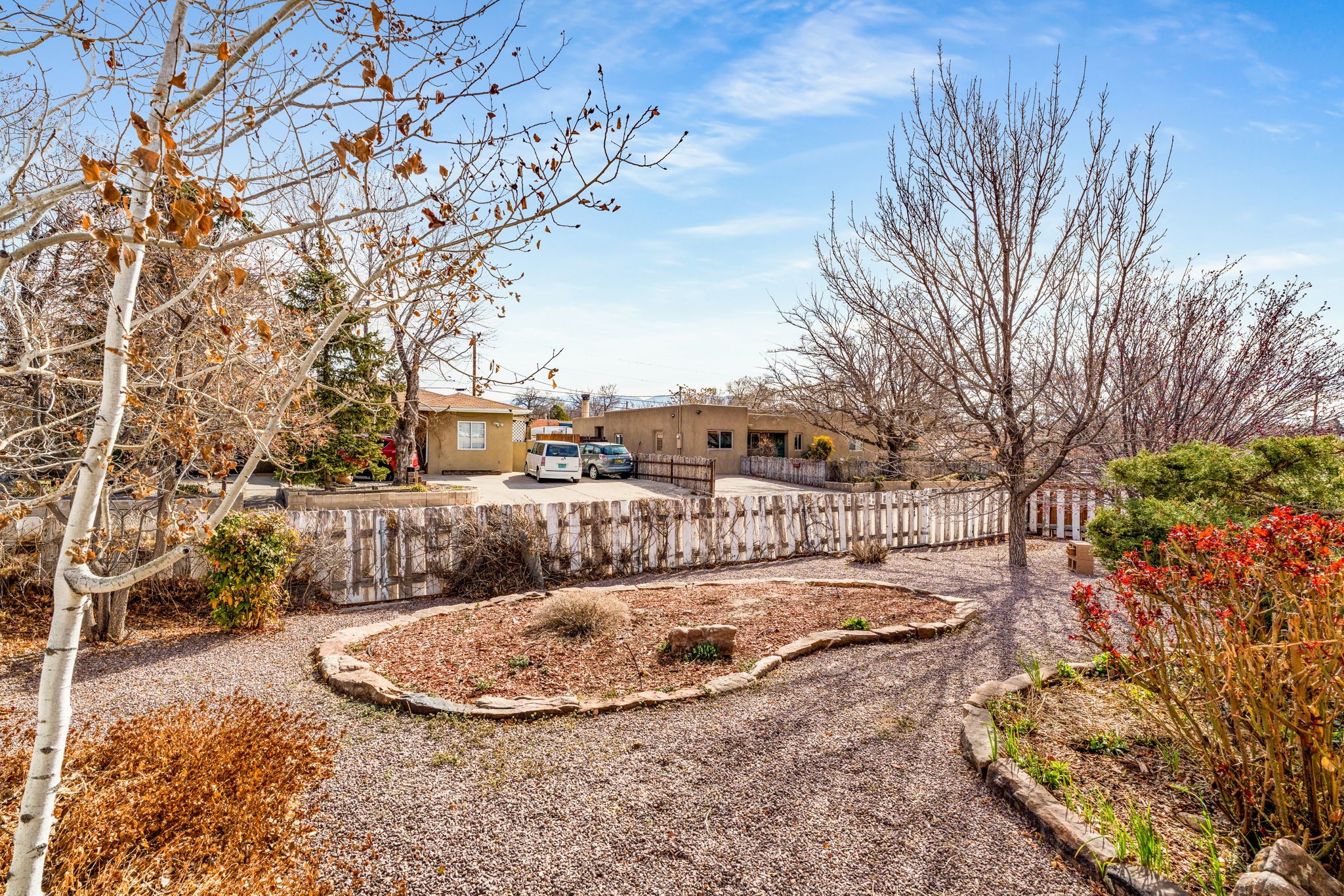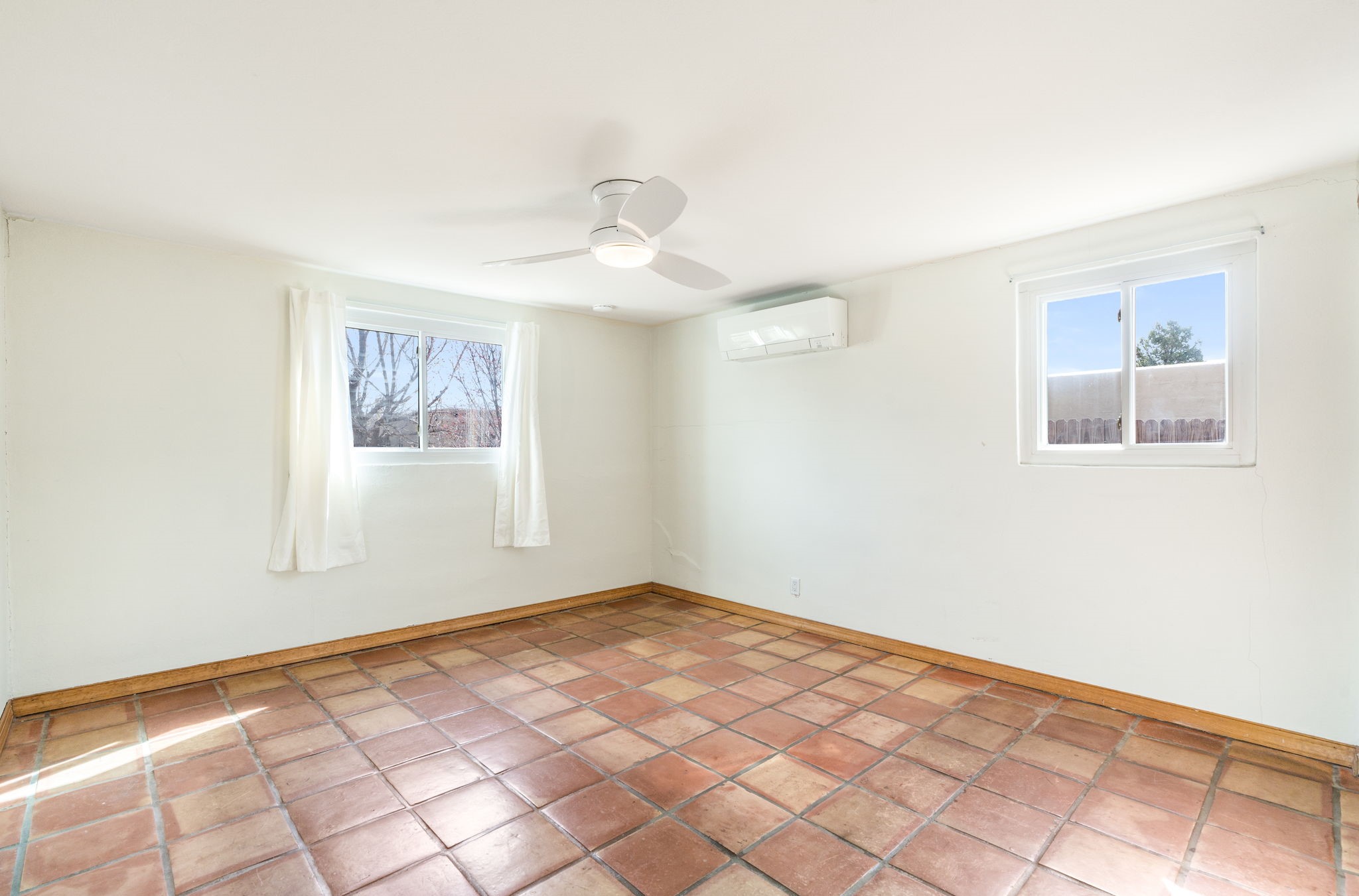 Discover comfort, charm, and versatility in this spacious Casa Solana home, perfectly positioned to enjoy the best of Santa Fe living. With three bright bedrooms and a generous studio space, this home offers the flexibility you've been looking for--ideal for creative pursuits, a home office, or guest accommodations.The inviting studio is a standout feature, showcasing warm brick floors and two sets of elegant French doors that open onto covered portals and a large, fully fenced backyard, replete with apple and peach trees.. Whether you're entertaining, working from home, or simply relaxing, this indoor-outdoor connection creates a wonderful sense of openness and light.Throughout the main living areas, classic Saltillo tile floors add timeless Southwestern character. The expansive living room is beautifully framed by wood posts and beams and offers lovely views of the Sangre de Cristo Mountains--an inspiring backdrop for everyday living. The dining room is filled with natural light and features a sliding glass door that leads directly to the covered portal and backyard, making outdoor dining and gatherings effortless.The updated kitchen is both stylish and functional, with attractive cabinetry and newer stainless steel appliances, including a modern induction stove that home cooks will appreciate.All three bedrooms are filled with natural light and equipped with ceiling fans for comfort. The bathroom has been tastefully updated, and the home also includes newer high-efficiency washer and dryer units. Year-round comfort is ensured with efficient mini-split systems for both heating and cooling.A one-car garage completes the package, while the home's location puts you just moments from the Solana Center, neighborhood coffee shops, restaurants, and city parks.Warm, welcoming, and full of character--this Casa Solana gem is not to be missed.