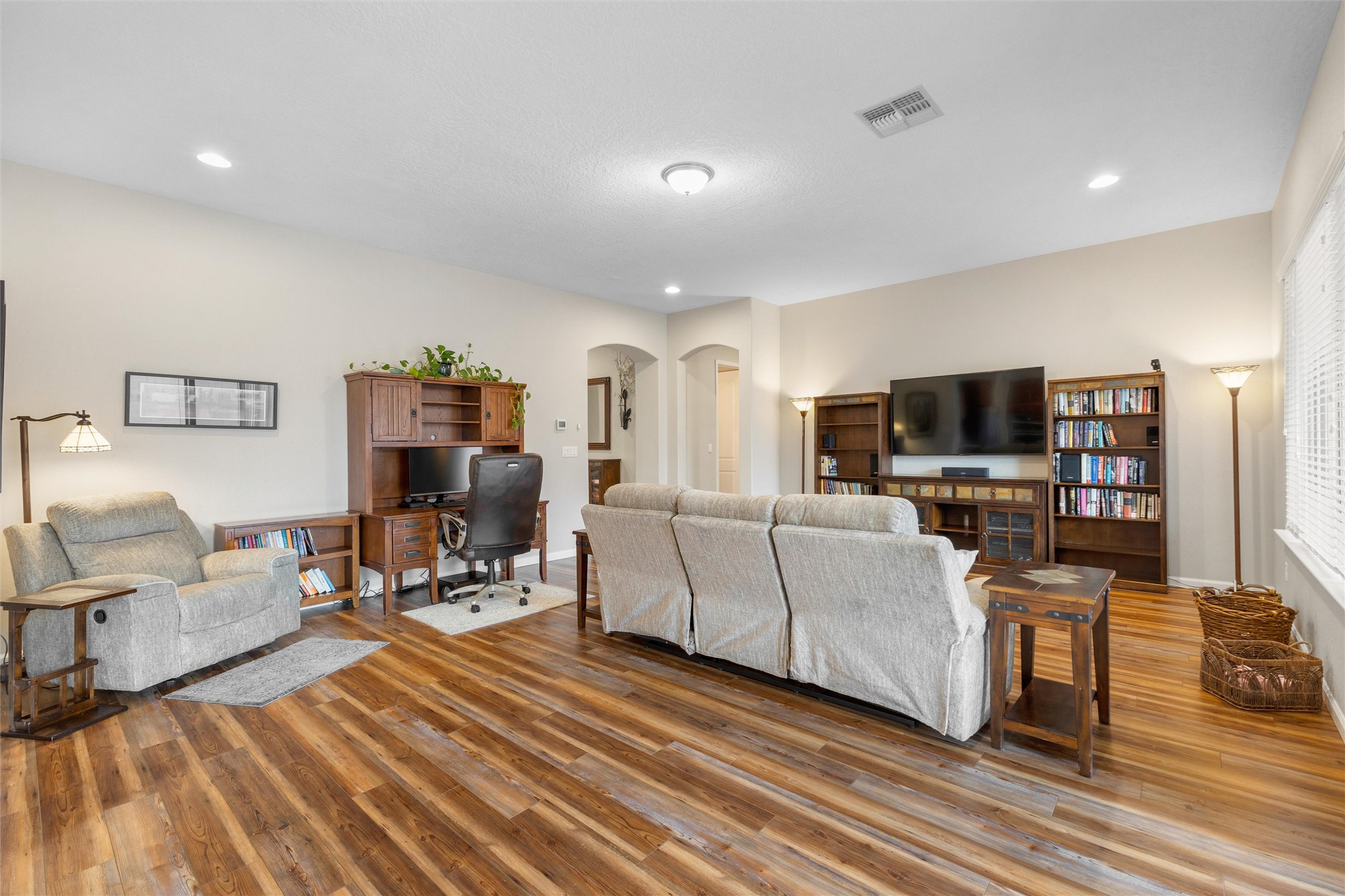 Better Than New! This impeccably maintained 2,490 sq. ft. Pulte home is a masterclass in pride of ownership. Boasting a rare single-story layout with a very unique 2 Bedroom Ensuite layout with additional 2 flex spaces *(1 of the flex spaces is currently being converted into a 3rd bedroom option), plus an additional powder bath for guests. This floorplan is very flexible and accommodates different lifestyles.Enjoy an abundance of natural light and brand-new flooring in the living area. You will notice the comfort of the upgraded carpet/padding in the bedrooms. Modern and efficient essentials throughout, including a tankless water heater, forced air heating and refrigerated air PLUS a sleek, low-maintenance backyard. From the pristine 2-car garage to the airy open-concept living space, this home is 100% move-in ready.