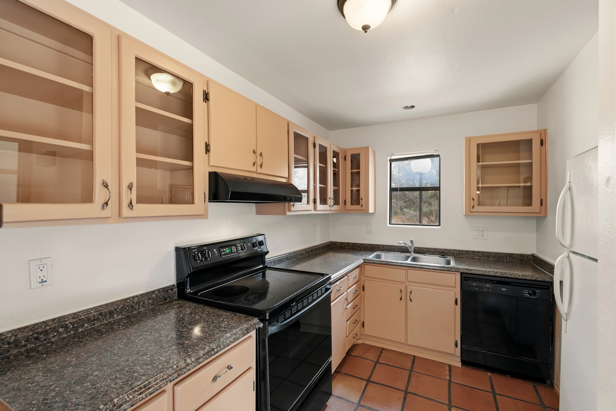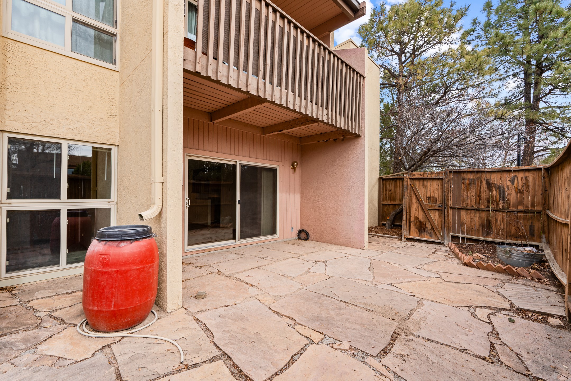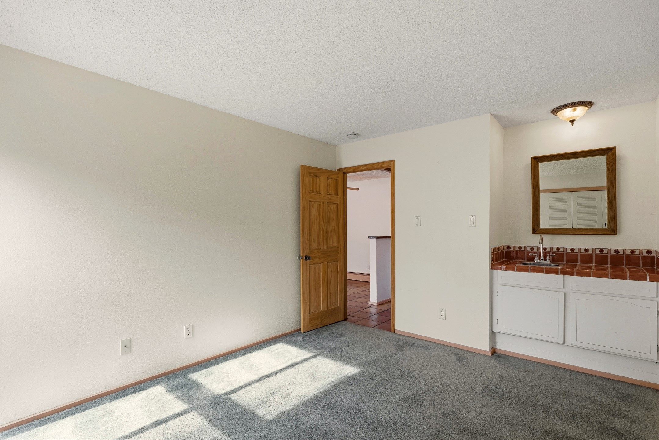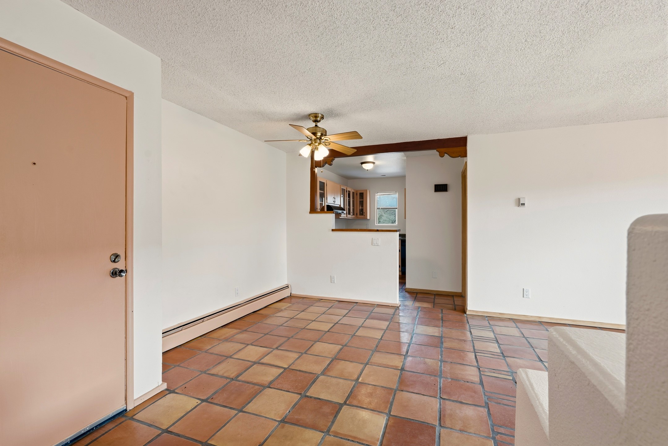 Charming downstairs corner unit in desirable Los Arroyos, filled with natural light and Southwest character. Saltillo tile floors run throughout the main living areas, adding warmth and timeless appeal. The open kitchen features a window that brings in additional light and creates an inviting space for cooking and entertaining. This thoughtfully designed condo offers two bedrooms, including one with its own sink/vanity area for added convenience. The full bath is beautifully appointed with striking Talavera tile accents, adding vibrant color and authentic Santa Fe style. Step outside to a large corner patio finished with flagstone tile -- perfect for outdoor dining, container gardening, or relaxing in your private retreat. A dedicated storage area adds practicality and ease. Comfortable, bright, and full of character, this Los Arroyos gem is an ideal full-time residence, second home, or investment opportunity. Condo fee: $385/monthly, includes baseboard hot water heat, water, sewer, refuse, building and grounds maintenance, and insurance.