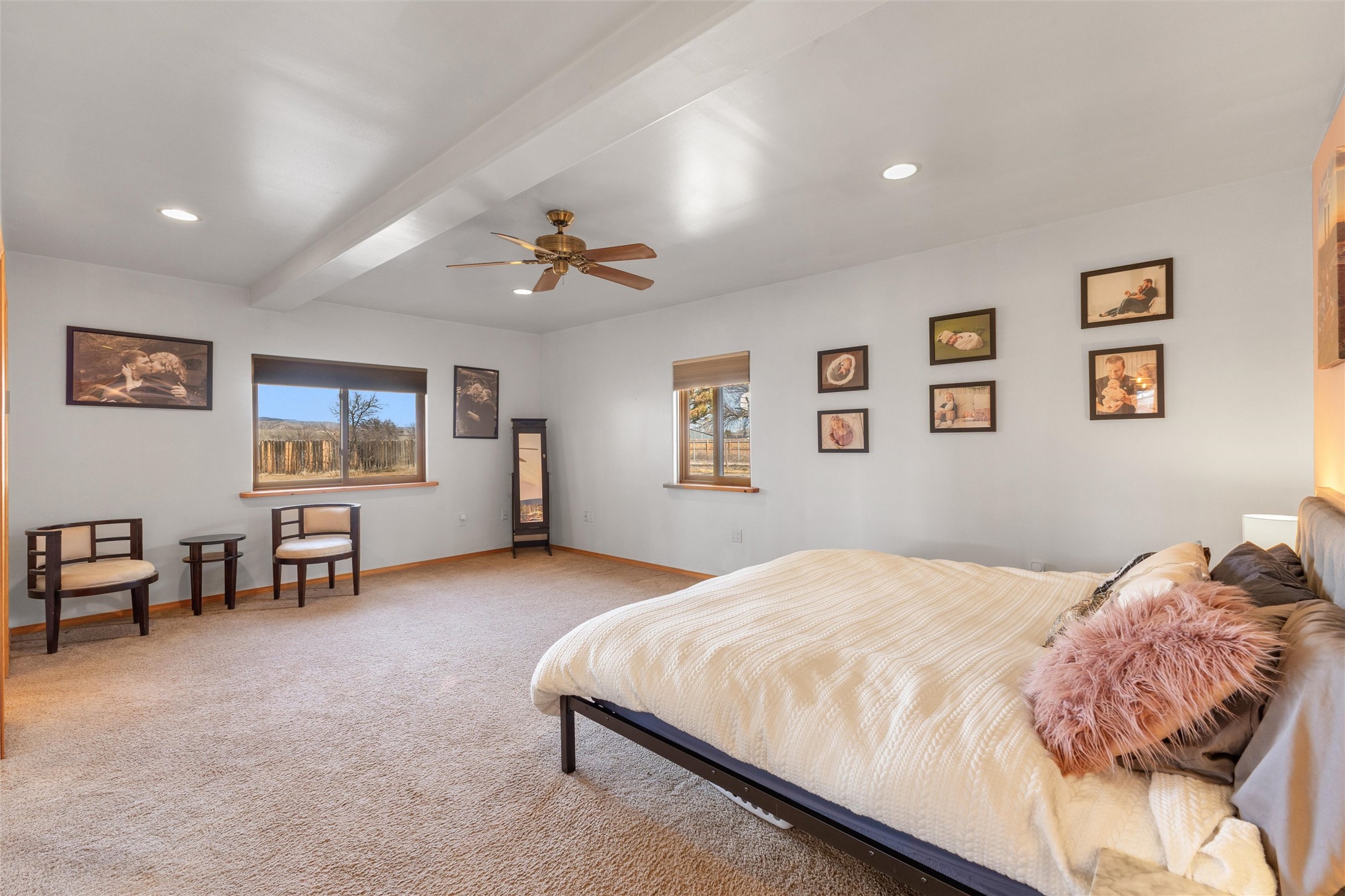 Experience elevated Northern New Mexico living at 299 NM-399 in La Mesilla--where refined comfort meets wide-open skies and river valley beauty. Set on 1.467 acres with valuable water rights, this exceptional 3-bedroom, 2.5-bath residence offers 3,093 square feet of thoughtfully curated living space, designed for both elegance and ease.Every detail reflects the charm and craftsmanship of Northern New Mexico homes, featuring Saltillo tile flooring, granite countertops, and radiant heated floors throughout, creating a warm and inviting atmosphere of timeless luxury. The expansive layout flows effortlessly, with generous living areas perfect for sophisticated entertaining or intimate gatherings. A large master suite with a private ensuite offers a serene retreat, while a spacious office provides an ideal work-from-home or executive setting.Outdoors, the property unfolds into a private sanctuary--complete with a personal well, manicured grounds, and a basketball court for recreation and leisure. Just a short stroll away, the legendary Rio Grande offers serene wildlife and breathtaking sunsets along its banks.For golf enthusiasts, the acclaimed Black Mesa Golf Club is less than a mile away, offering world-class play against dramatic high desert vistas.Perfectly positioned with convenient access to Taos, Los Alamos, and Santa Fe, this property delivers a rare combination of privacy, prestige, and connectivity.With a 2-car attached garage and expansive acreage, this home embodies the refined Northern New Mexico lifestyle in every detail.