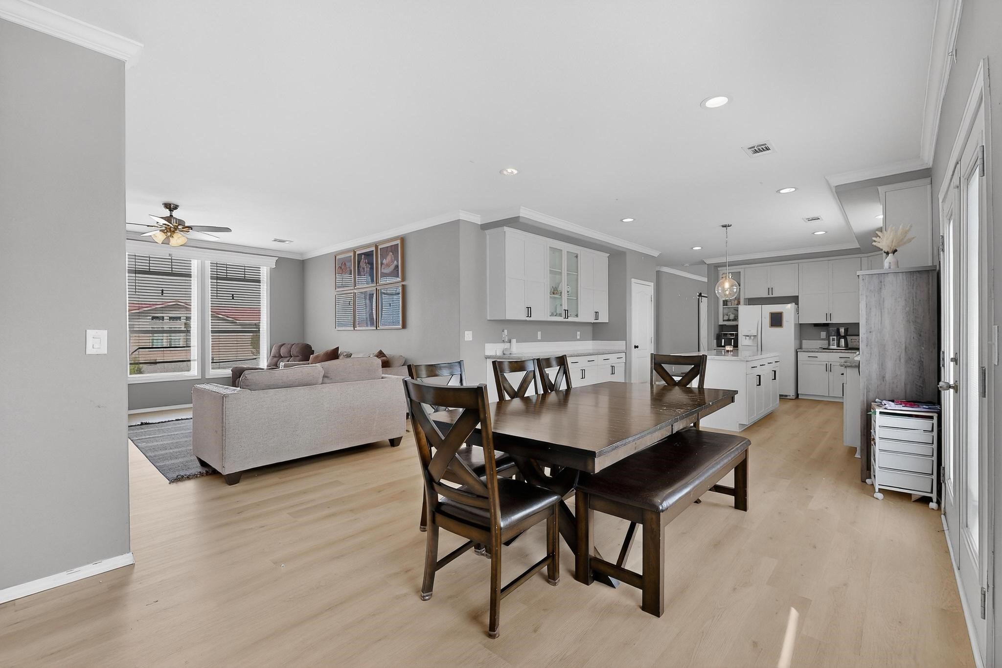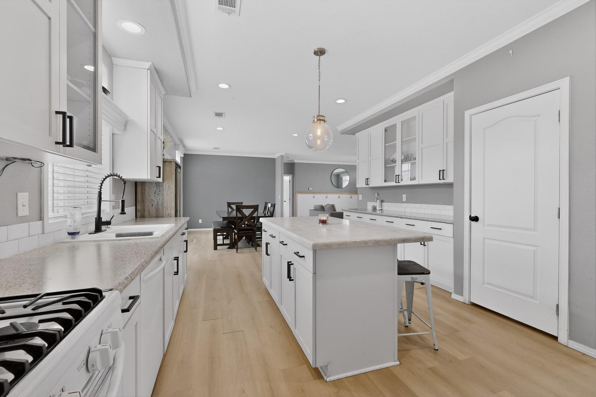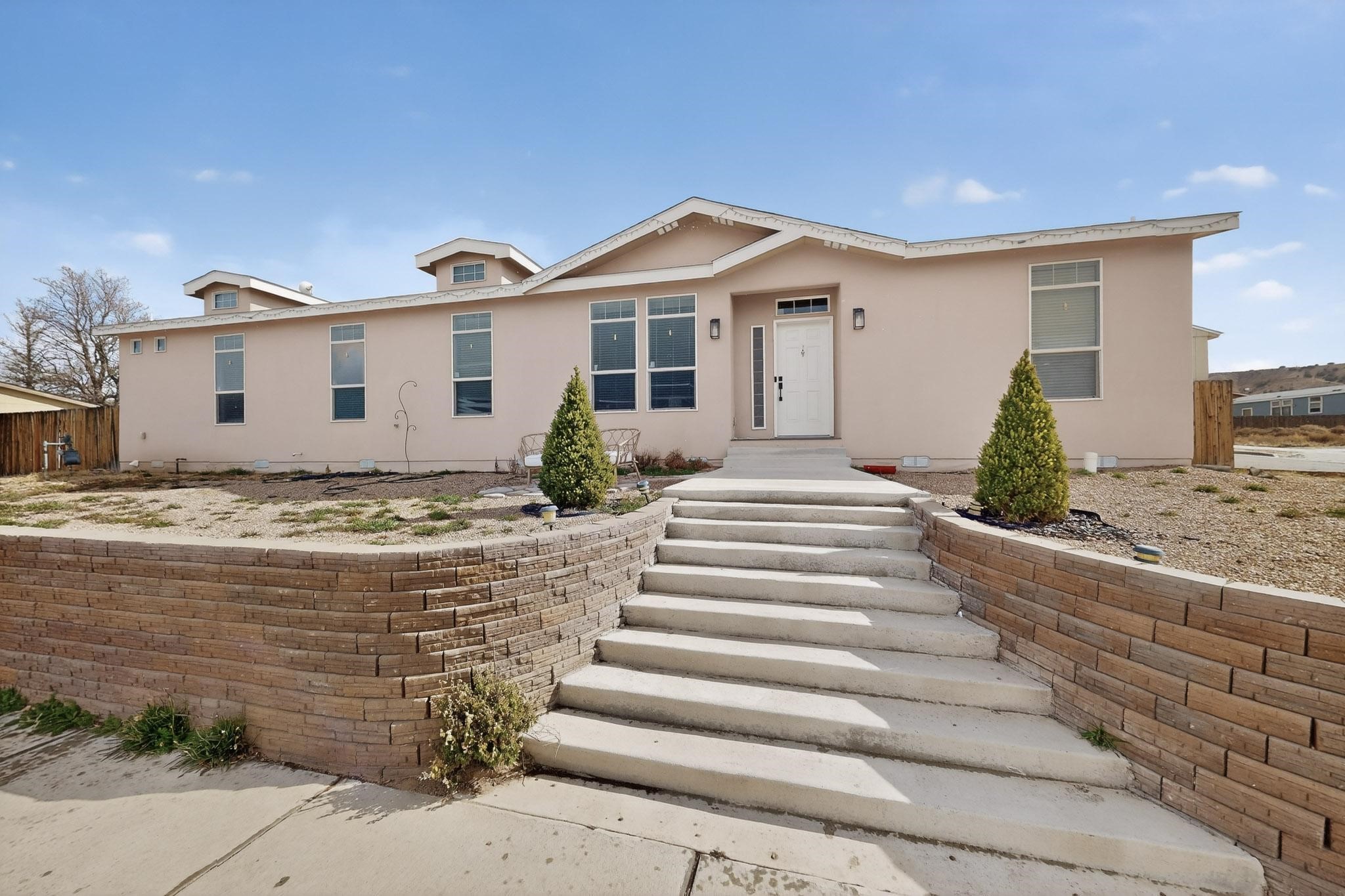 Thoughtfully updated and move-in ready, this 3-bedroom, 2-bath modular home sits on a desirable corner lot with a permanent foundation and numerous seller improvements. The bright, open-concept floor plan features new luxury vinyl plank flooring throughout the main living areas, creating a clean and cohesive living space ideal for everyday comfort and entertaining. The kitchen offers crisp white cabinetry, modern appliances, and a spacious center island with seating for four, seamlessly connecting to the dining area, which includes a built-in hutch and direct access to the backyard for easy indoor-outdoor living. The primary suite provides a private retreat with an oversized walk-in closet and a remodeled en-suite bath featuring dual sinks and a soaking tub. Two additional bedrooms share a well-appointed full bath, offering flexibility for guests, family, or a home office. A second living area adds valuable versatility and can function as a den, media room, or playroom depending on your needs. Outdoor spaces include a side pergola with covered dining area, a large patio, garden areas, retaining wall, and fencing that enhance both usability and privacy. Conveniently located in the heart of Espaola with easy access to Santa Fe and Los Alamos, this well-maintained home offers comfort, functionality, and an excellent opportunity to enjoy Northern New Mexico living.
