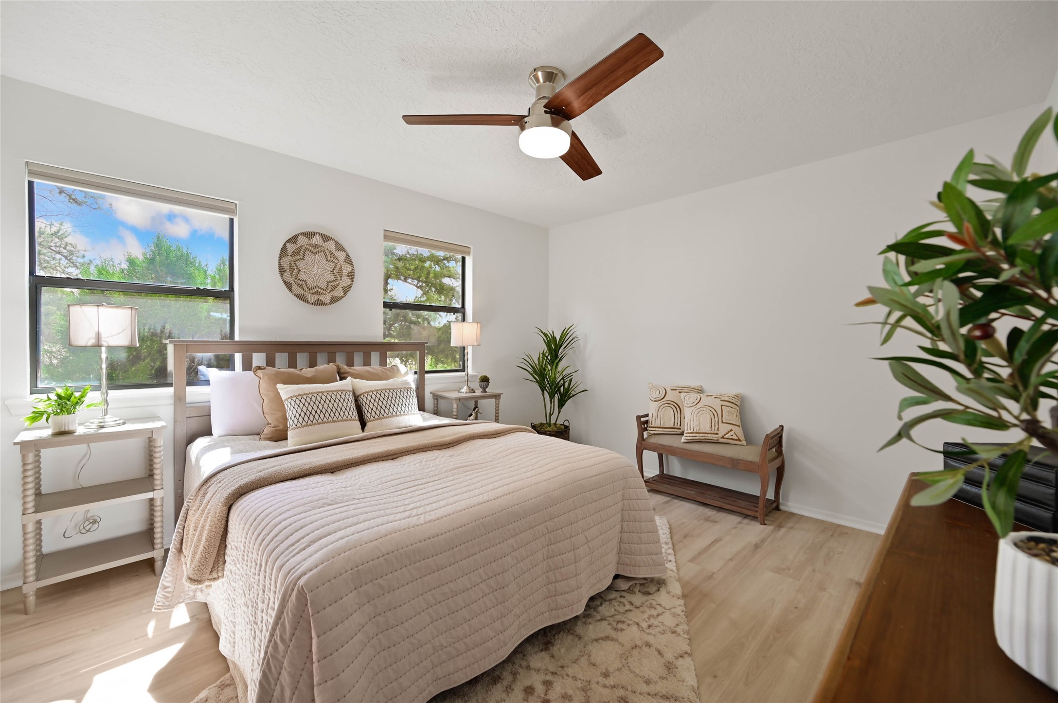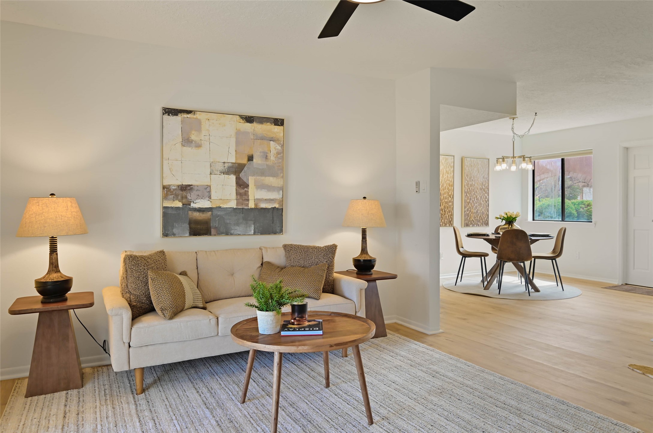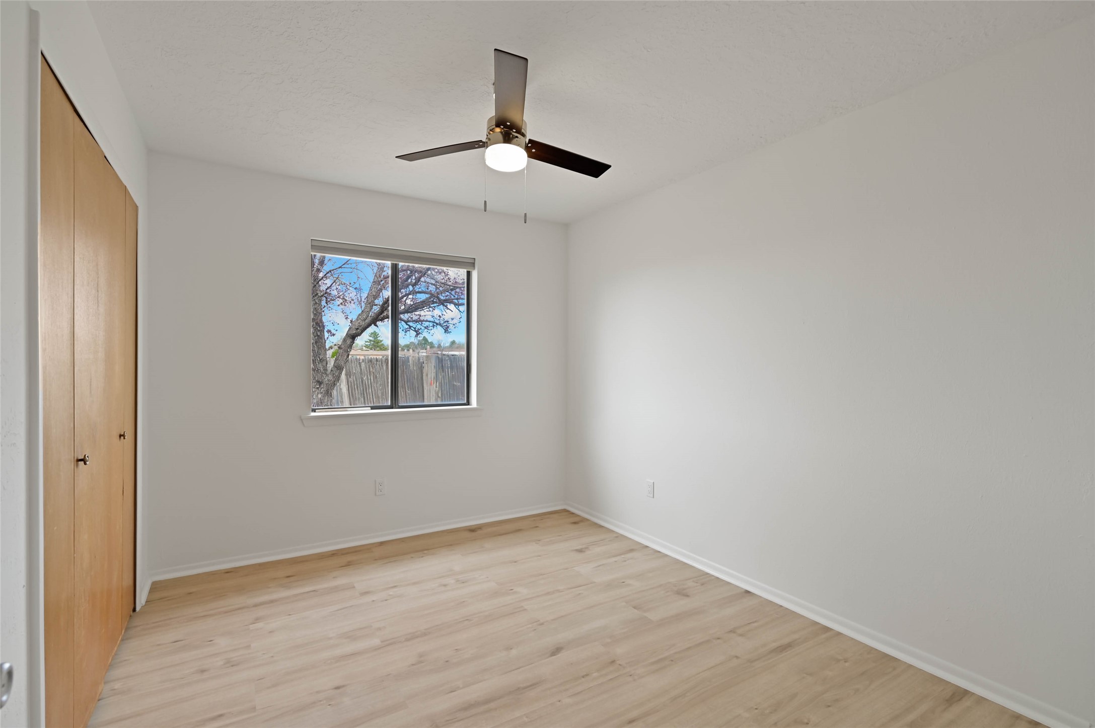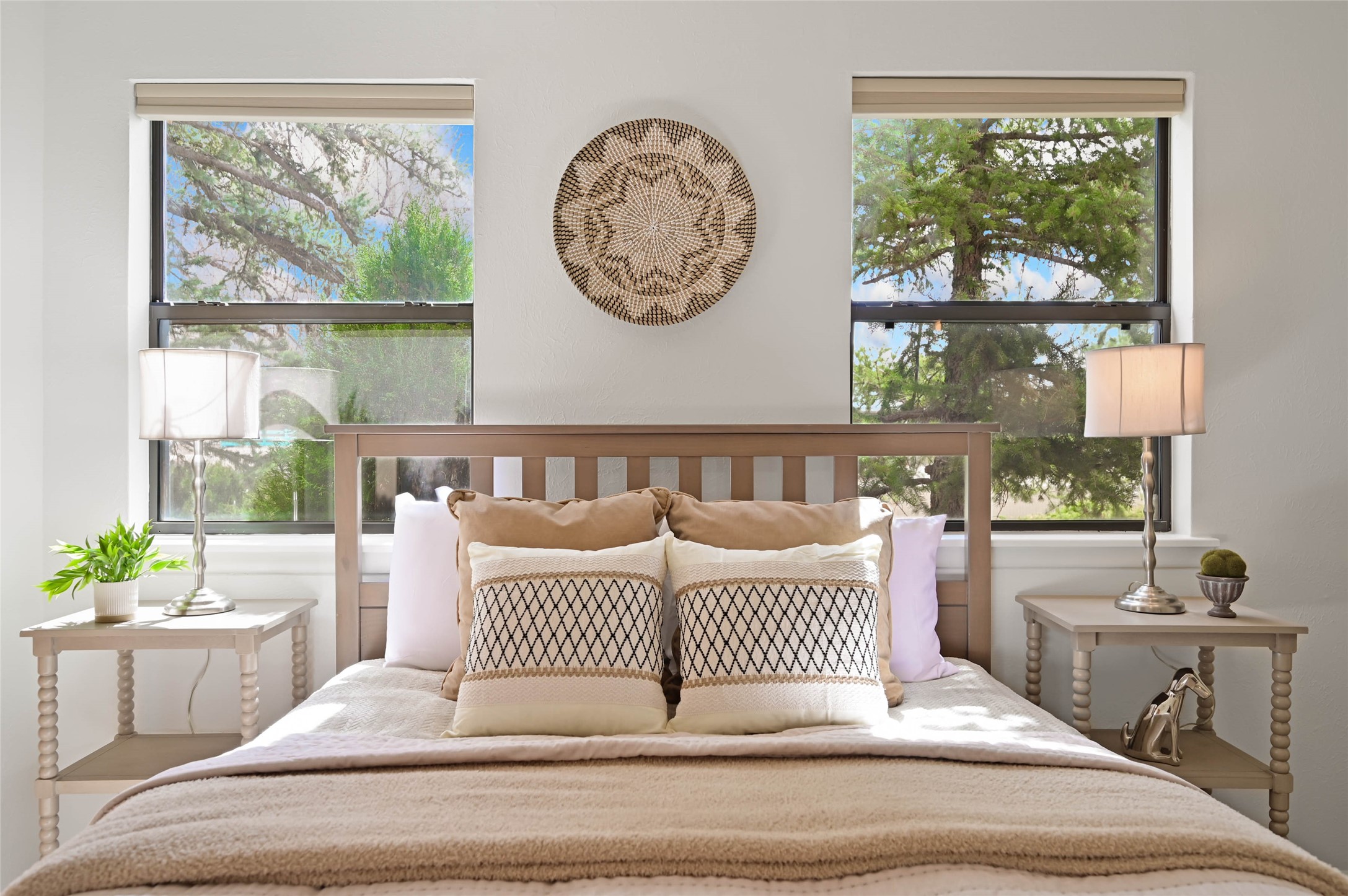 Welcome to this beautifully updated ranch style home located in the well-established Bellamah area. With 4 bedrooms and 2 bathrooms, this 1500 square foot home is ready for you to call it yours today. Enter through the nice courtyard that offers privacy and protection into an inviting flexible living space which then leads to an open concept dining, kitchen and living room space. Updates include fresh paint, new vinyl plank flooring throughout, new light fixtures and window shades as well as updated bathroom vanity, stainless steel appliances and updated fireplace mantel. A spacious backyard and 2-car garage round out this well-cared for home. Centrally located near parks such as Monica Lucero and Herb Martinez, also nearby are the Genoveva Chavez Center, the Arroyo Chamisa Trail system, local restaurants, gyms, shops and more. Imagine the Possibilities and schedule your showing today!