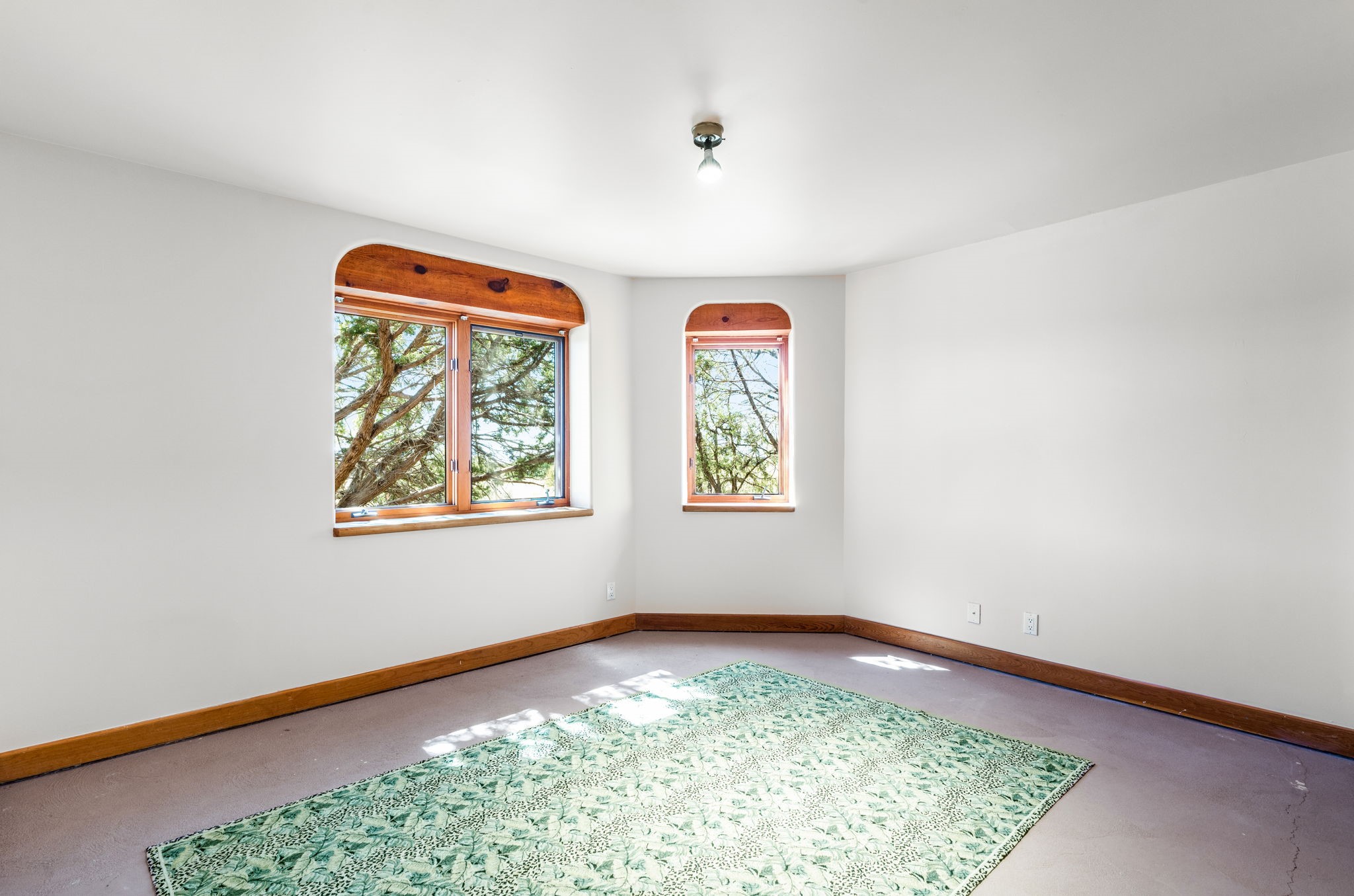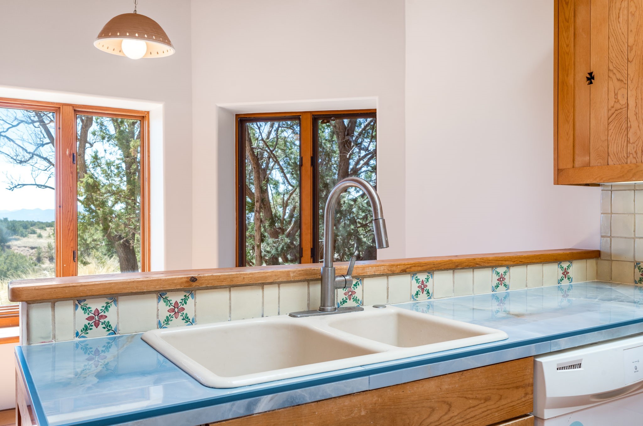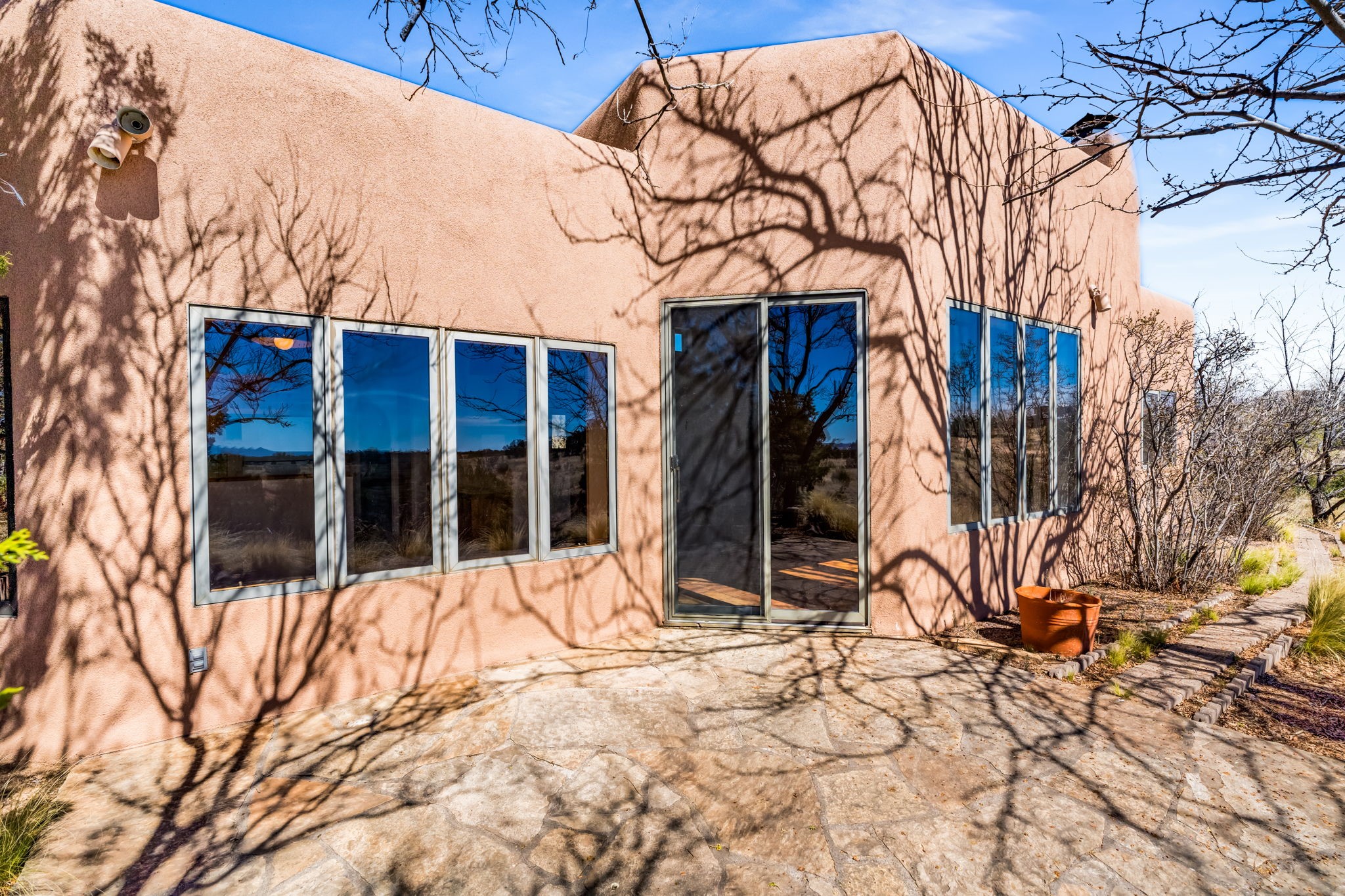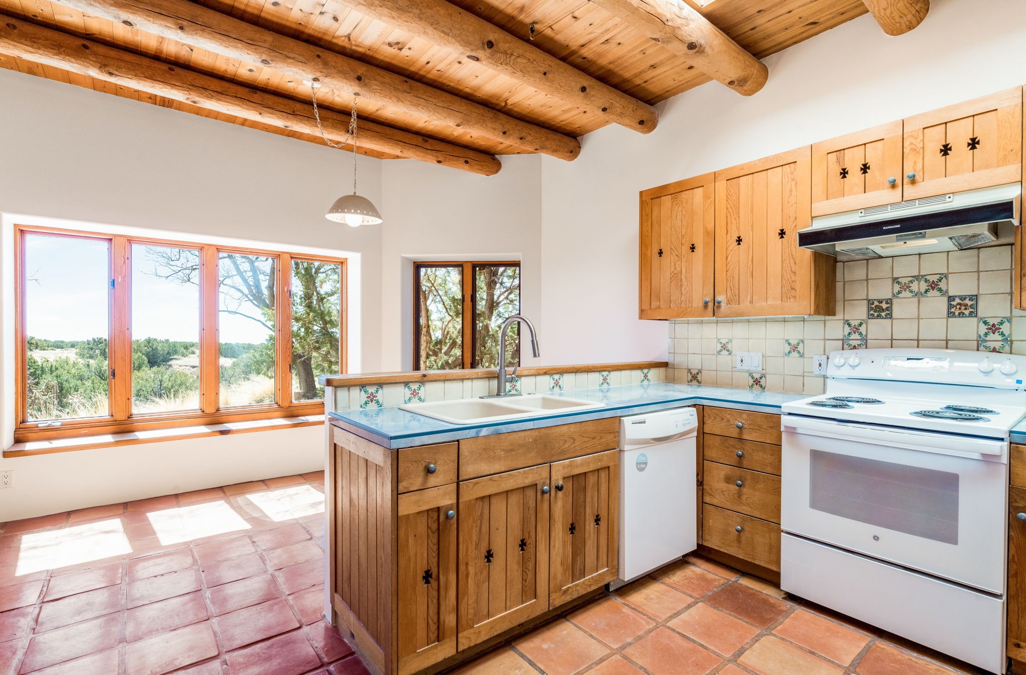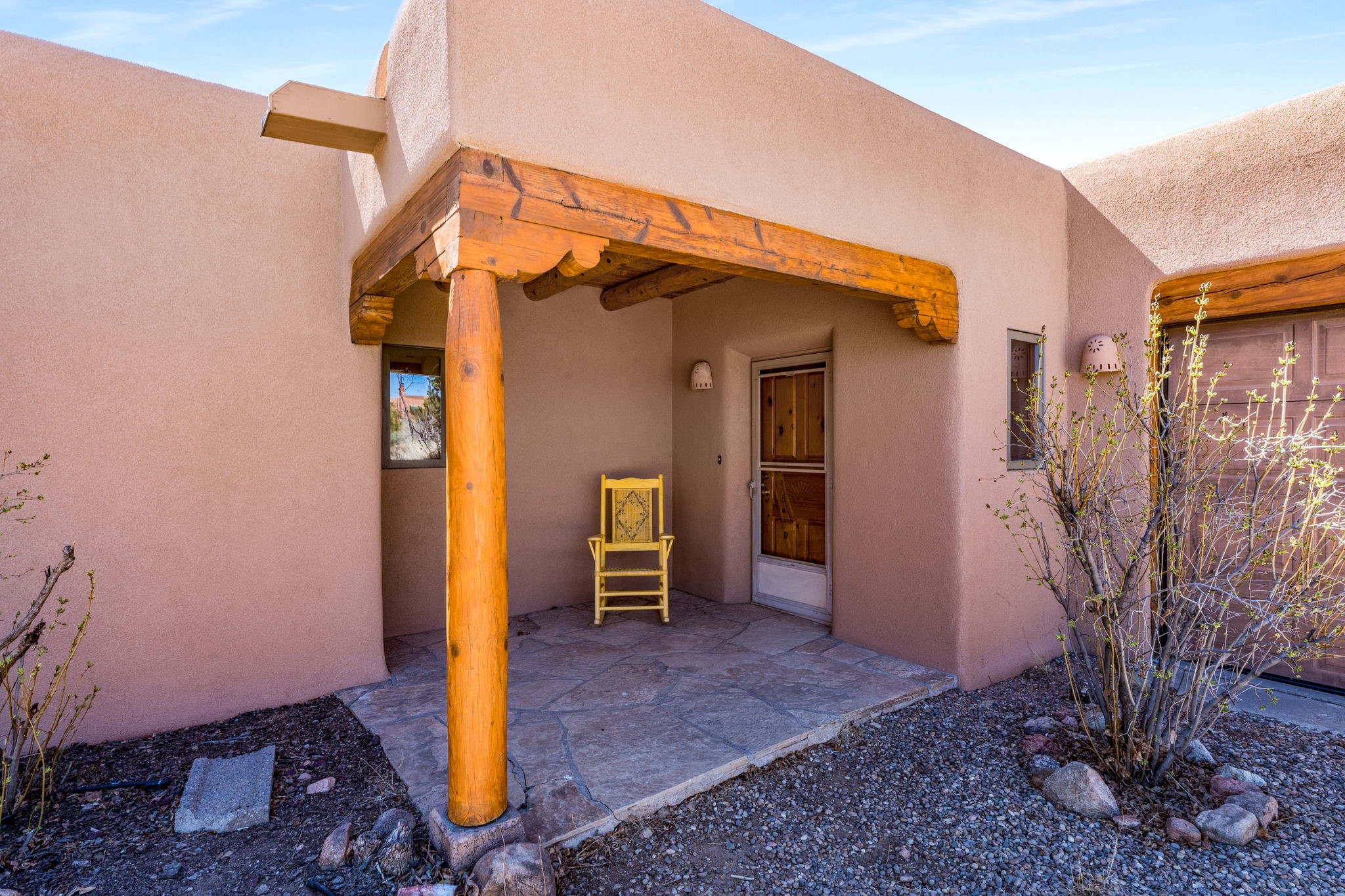 Peaceful natural beauty and classic Santa Fe style come together beautifully in this inviting home on 2.5 acres, only 15 to 20 minutes from downtown. With 1,978 square feet and a thoughtfully designed floor plan, the home offers both comfort and connection to the surrounding landscape. Deep windows stretching across the back wall frame stunning Sandia Mountain views and fill the open living, dining, and kitchen spaces with light. The living room is especially welcoming, with high ceilings, vigas over latillas, Saltillo tile floors, a corner kiva fireplace, and sliding doors that open to the lovely backyard. The bedroom layout is well planned, with two guest bedrooms and a full bath on one end of the home and a generous primary suite tucked privately on the other. A two-car attached, direct-entry garage adds convenience, while in-floor radiant heat, newer stucco, and a well-maintained roof provide peace of mind. With Sangre de Cristo Mountain views from the front and serene open space all around, this home offers the very best of country living with easy access to Santa Fe.