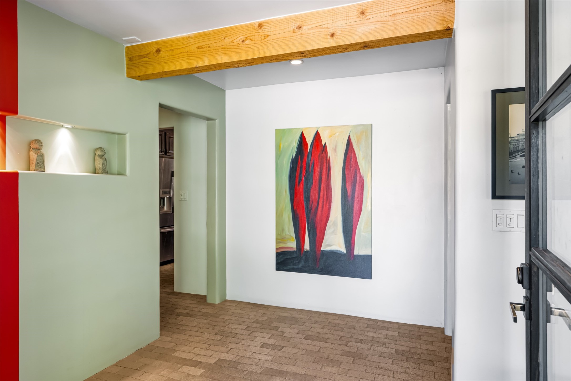 LIVE, WORK, ENTERTAIN, in your own secluded sanctuary located on 7.08 Sunlit Hills acres. 10 Sabina Lane is a sophisticated & contemporary COMPOUND offering a wide variety of living & working spaces in a stunning pastoral setting, 15 minutes from Santa Fe. MAIN HOUSE - 2,187sqft open concept Great Room w/beamed cathedral ceiling, fireplace, Chef's kitchen w/granite counters, high end appliances, 2 spacious bedrooms w/en suite bathrooms, laundry area, 5 sets of French door leading to 58 foot long covered portal. GUEST SUITE - 530sqft is steps from the main house & offers an inviting bedroom, spa inspired bathroom, custom tiles, soaking tub, is adjoined by a private tranquil terrace. STUDIO/OFFICE - 994sqft amazing work space with vaulted ceiling, view windows, areas for an office, art or other work related spaces, powder room & covered portal entry. One would never need to leave the property to conduct all their business or artistic work. CASITA - 683sqft Set apart from the main house, the casita has a full kitchen w/stone counters, kiva fireplace, covered portal, stackable washer/dryer. The casita has produced additional income as an Air B&B GARAGE - 60 sqft Fully finished, 2car capacity, storage areas. GAZEBO -196sqft An inviting space away from the home for meditation & relaxation. PAVILION -241sqft Wonderful retreat area w/fireplace, banco seating, ceiling fan, designer lighting. The property is accessed through a gated entry, a graveled driveway w/recently added retaining wall. Many additional aspects - electric convection stove top, extensive & significant landscaping,10 zone irrigation system,2 owned propane tanks (500 and 250 gallons), 5 fireplaces, an amazing flower filled meadow, healthy pinon, aspen and juniper trees, eclectic river rock pylons, antique wooden bathroom cabinet, a wealth of ceiling fans & mini split in the primary bedroom. For folks seeking a destination, full time live/work situation, please consider 10 Sabina Lane.