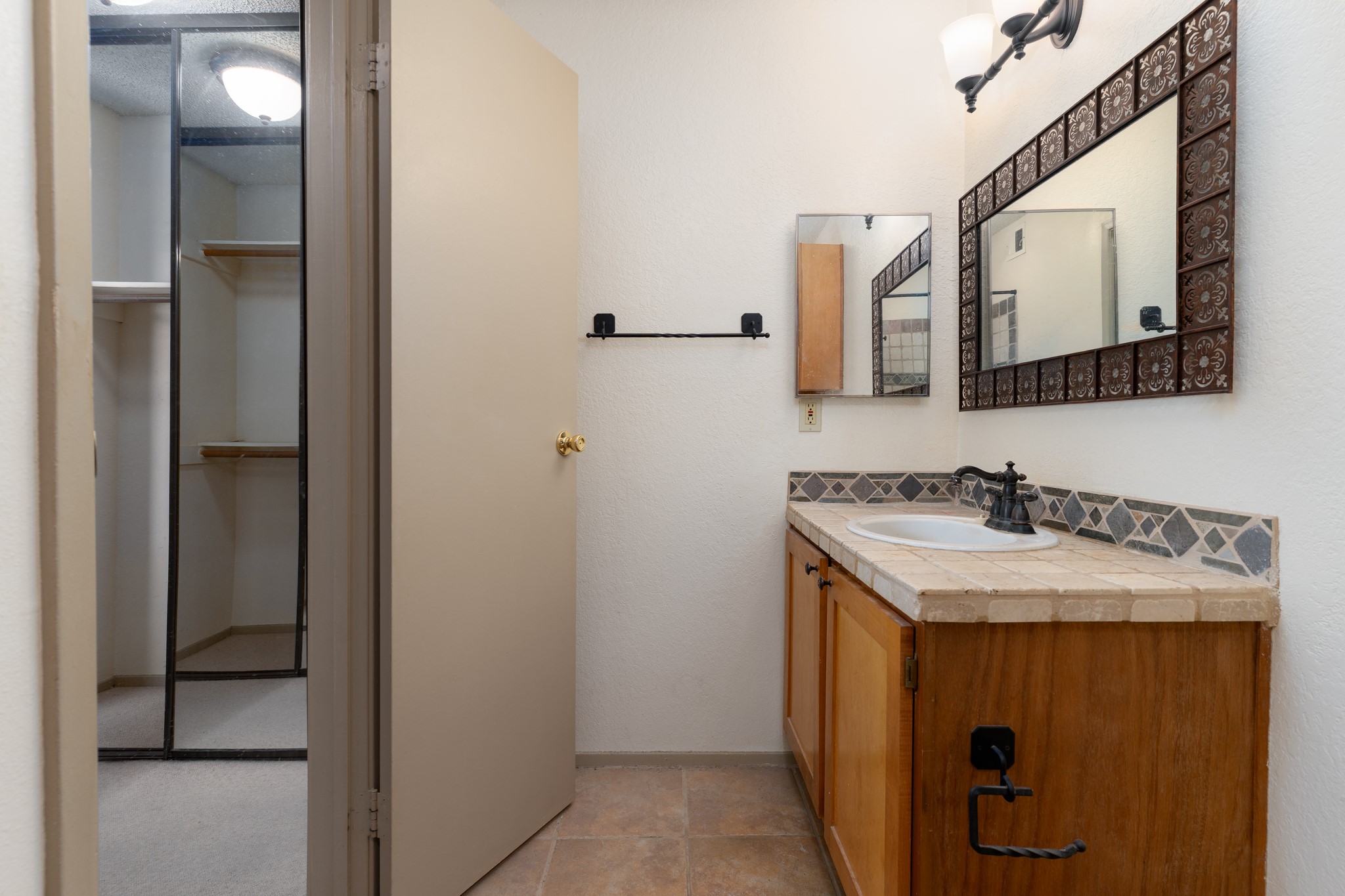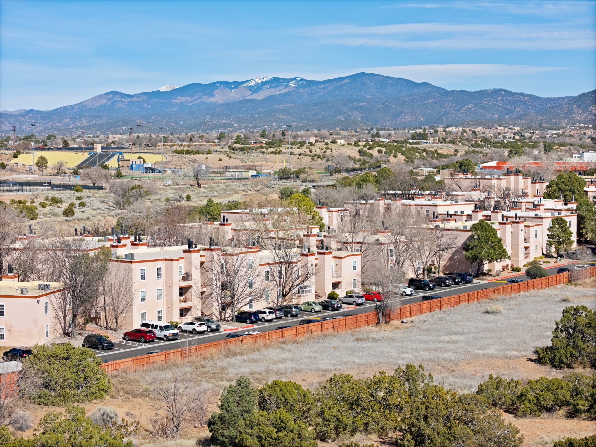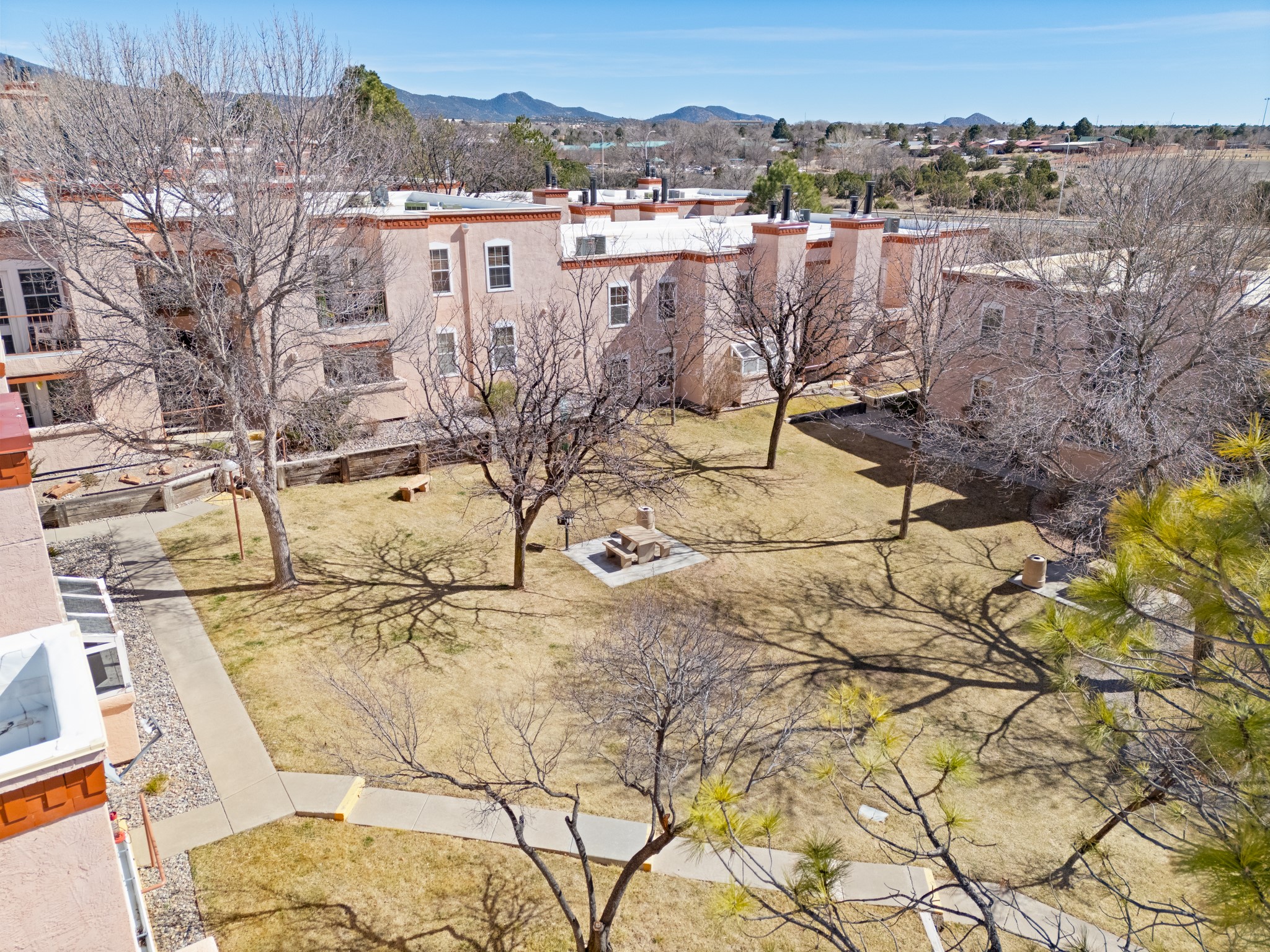 Lovely 2 bedroom, 2 Bath unit in Zia Vista Condominiums. Upstairs unit letting in more ligh. Set on the north side of the complex away from Zia Road traffic. Nearby gate for walking paths. True convenience with Pool, Clubhouse, gym and gated security entrance.