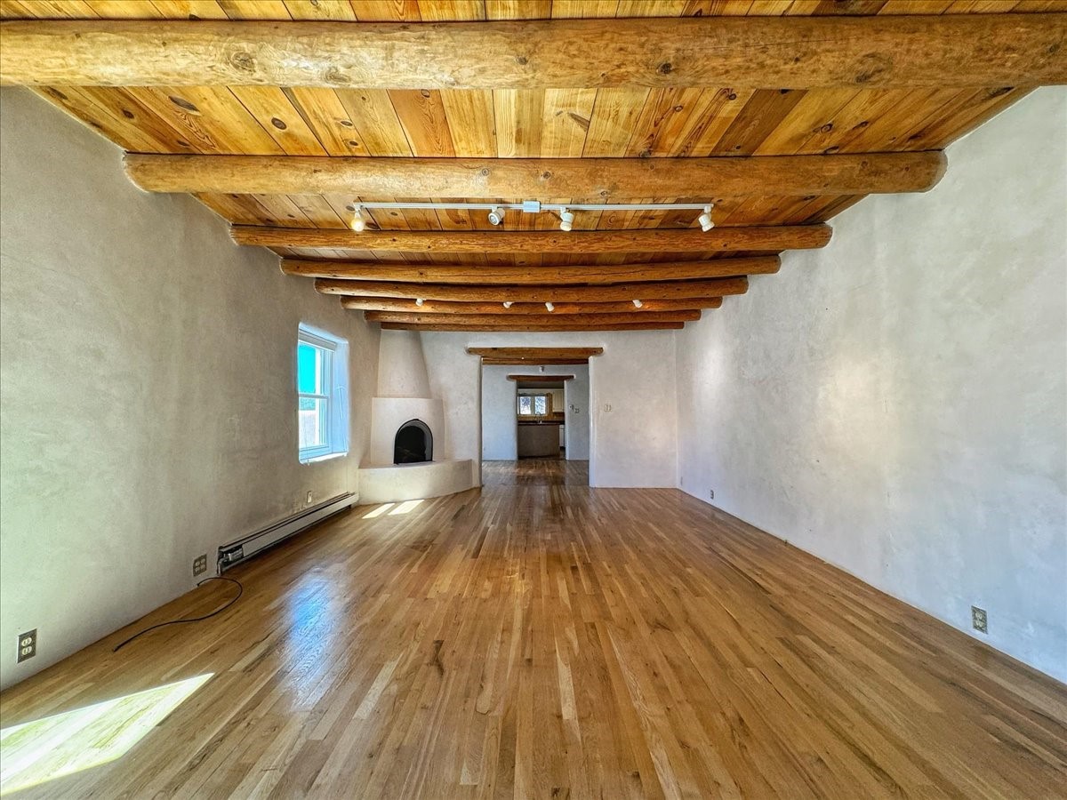 Charming Historic Adobe Home in Santa Fe's East Side Nestled in the heart of Santa Fe's coveted historic Eastside, this classic territorial style, all-adobe home, built in the 1900s, offers timeless character and exceptional location. Just a short stroll from iconic Canyon Road, this unique property includes a beautifully maintained main residence and a detached casita, large basement with bathroom and 5 parking spaces. Coming back on market Feb 2026. Main house is two bedrooms, 2 baths with kiva fireplace, original wood floors, plaster walls and traditional viga ceilings that exudes Santa Fe style. The brick-floored portal and multiple patios with adobe walls offer lovely options for outdoor living areas. Main house also features an 885 sq ft basement with separate exterior entrance, bathroom and multiple rooms for added possibilities for studio, office or remodel into living space. Property also includes a detached two-bedroom, one-bath casita--perfect for guests or as a proven income-producing rental - with a remodeled contemporary kitchen and utilities separately metered. This rare find blends convenience with traditional Southwestern charm and is a truly special opportunity to own a piece of Santa Fe history with strong rental potential and unbeatable walkability. Price subject to existing lienholder for short sale.