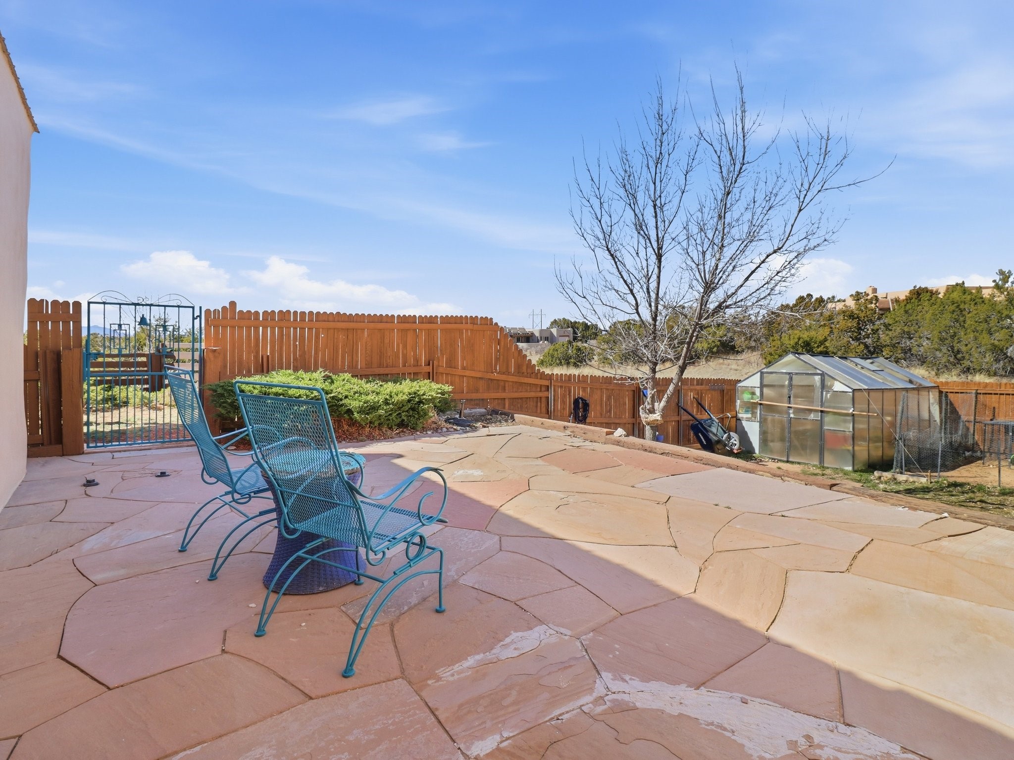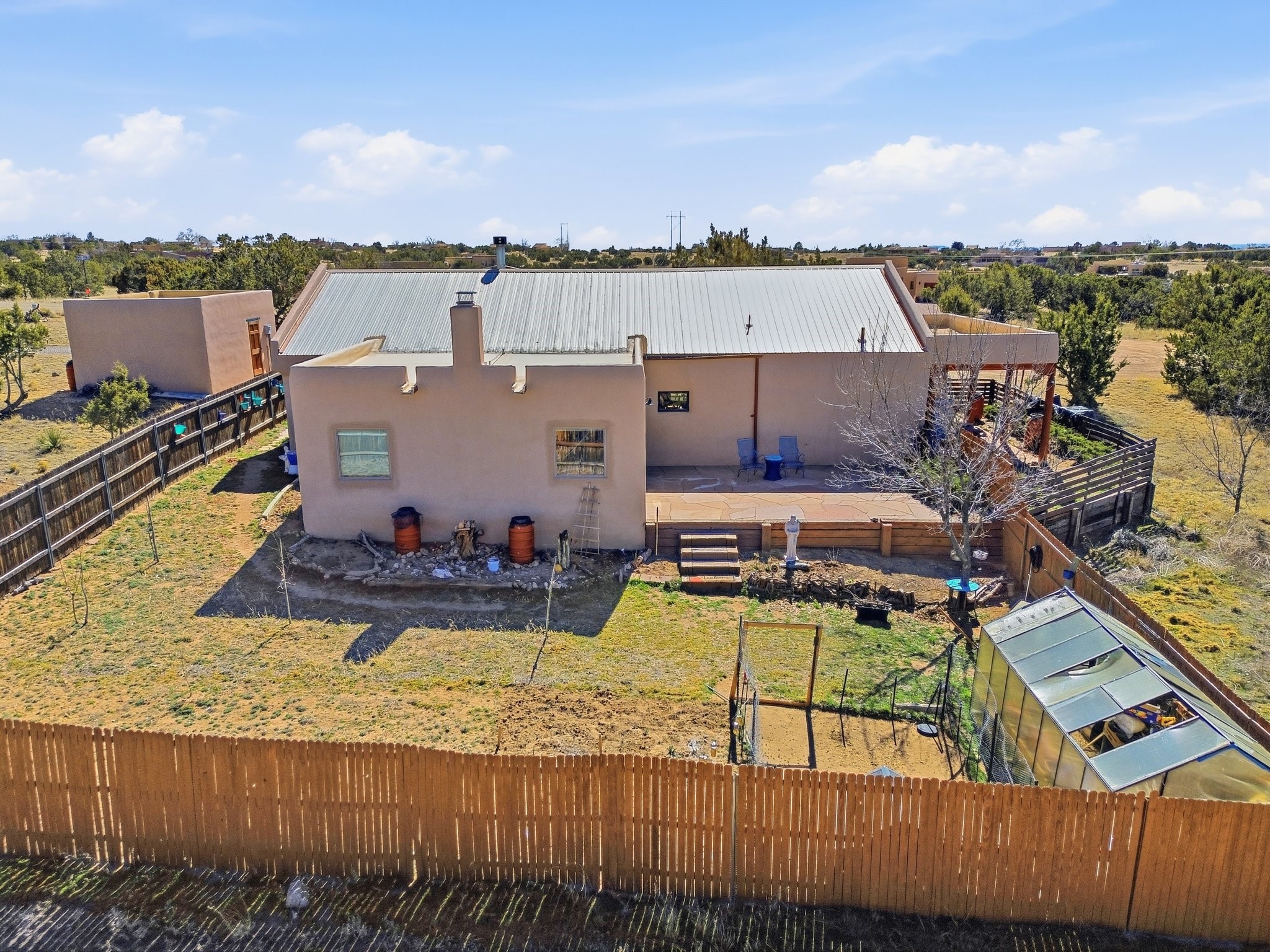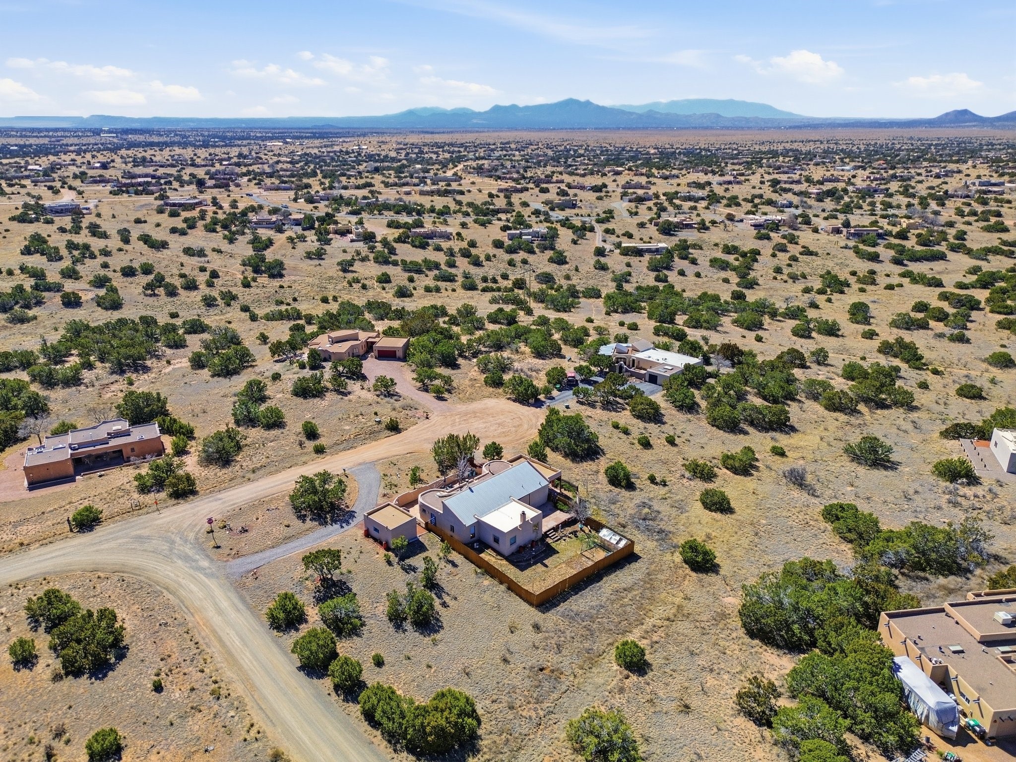 Set within the highly desirable Eldorado community just minutes from the cultural heart of Santa Fe, 16 Jornada Place presents a rare opportunity to own a classic Northern New Mexico residence on an expansive 1.30-acre cul-de-sac lot. This thoughtfully designed 3 bedroom, 2-bath, home offers approximately 2,515 square feet of living space and blends timeless Southwestern architecture with warmth, comfort, and privacy. Originally built in 1990 and lovingly maintained by its second owner, the property reflects a sense of authenticity and enduring quality that is increasingly hard to find. Upon entering the home, you are welcomed by an inviting open floor plan filled with natural light and traditional Santa Fe character. Rich Saltillo tile flows throughout the residence, complemented by striking vigas and wood beam ceilings that create a warm, architectural presence in the main living spaces. Large windows frame the surrounding landscape while filling the home with sunlight, enhancing the connection between the interior living areas and the beauty of the high desert beyond. 1 wood-burning stove, 1 fire place, and a classic kiva fireplace provide cozy gathering spaces and add to the authentic Southwestern ambiance. The layout offers both comfort and functionality, with a private primary suite positioned to capture peaceful views and direct patio access, perfect for morning coffee or quiet evenings under Santa Fe's renowned sunsets. Two additional bedrooms sit on the opposite side of the home, offering flexibility for guests, while a possible 4th bedroom, office space or studio compliments the floor plan. The single-level design enhances ease of living, while the detached garage and additional parking provide convenience and storage for vehicles, hobbies, or outdoor gear. Situated on over an acre of land, the property provides ample space to enjoy the serenity of Eldorado's wide-open landscapes while still being just a short drive from the restaurants, galleries, and culture of downtown Santa Fe. Residents of Eldorado enjoy access to community amenities including tennis courts, extensive walking and hiking trails, equestrian facilities, a clubhouse, and a popular community center that fosters a vibrant neighborhood lifestyle. Offered at $800,000, this distinctive property combines classic Santa Fe architecture, generous acreage, and the sought-after lifestyle of Eldorado, making it an exceptional opportunity for those seeking space, character, and proximity to one of the Southwest's most celebrated cities.