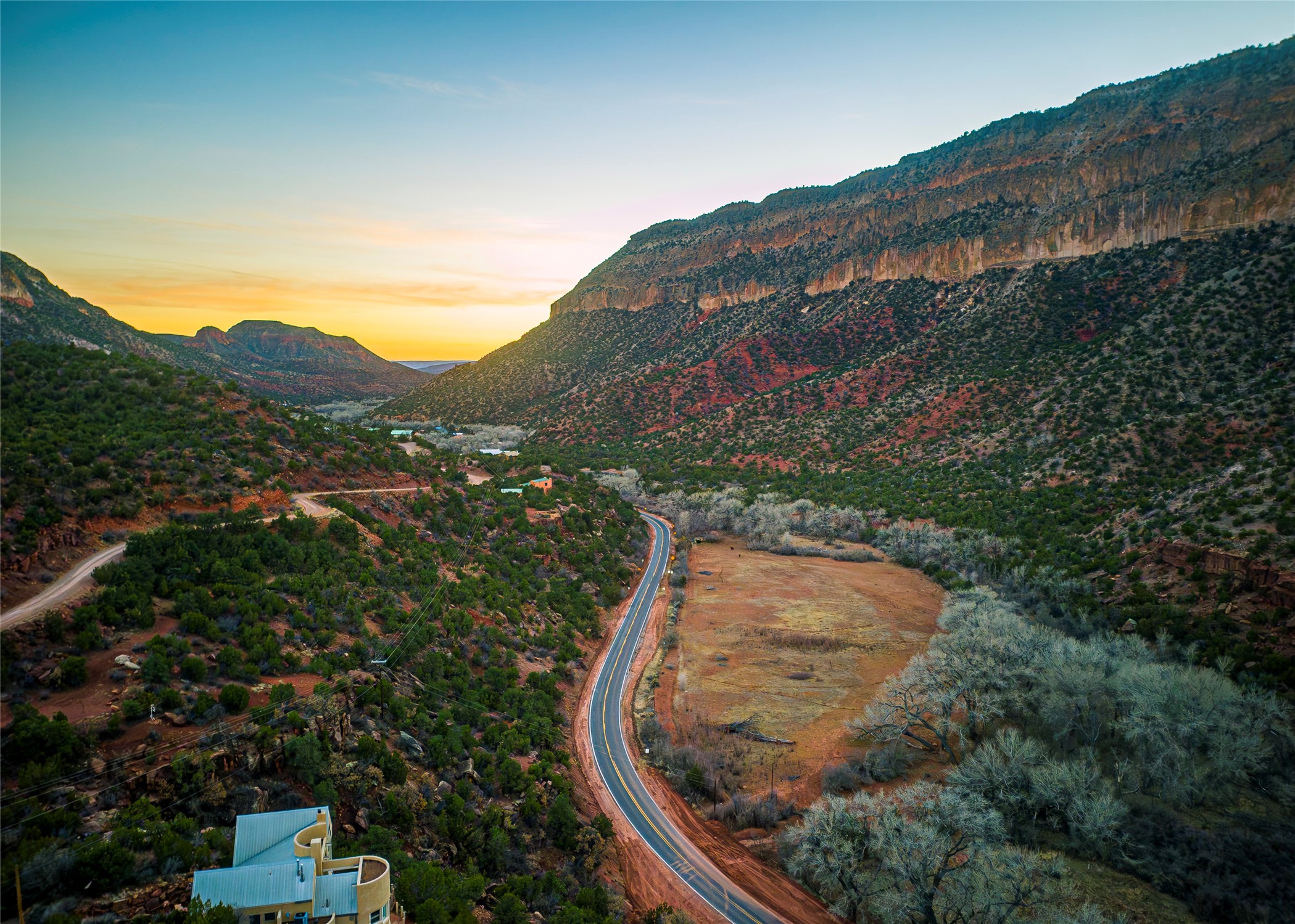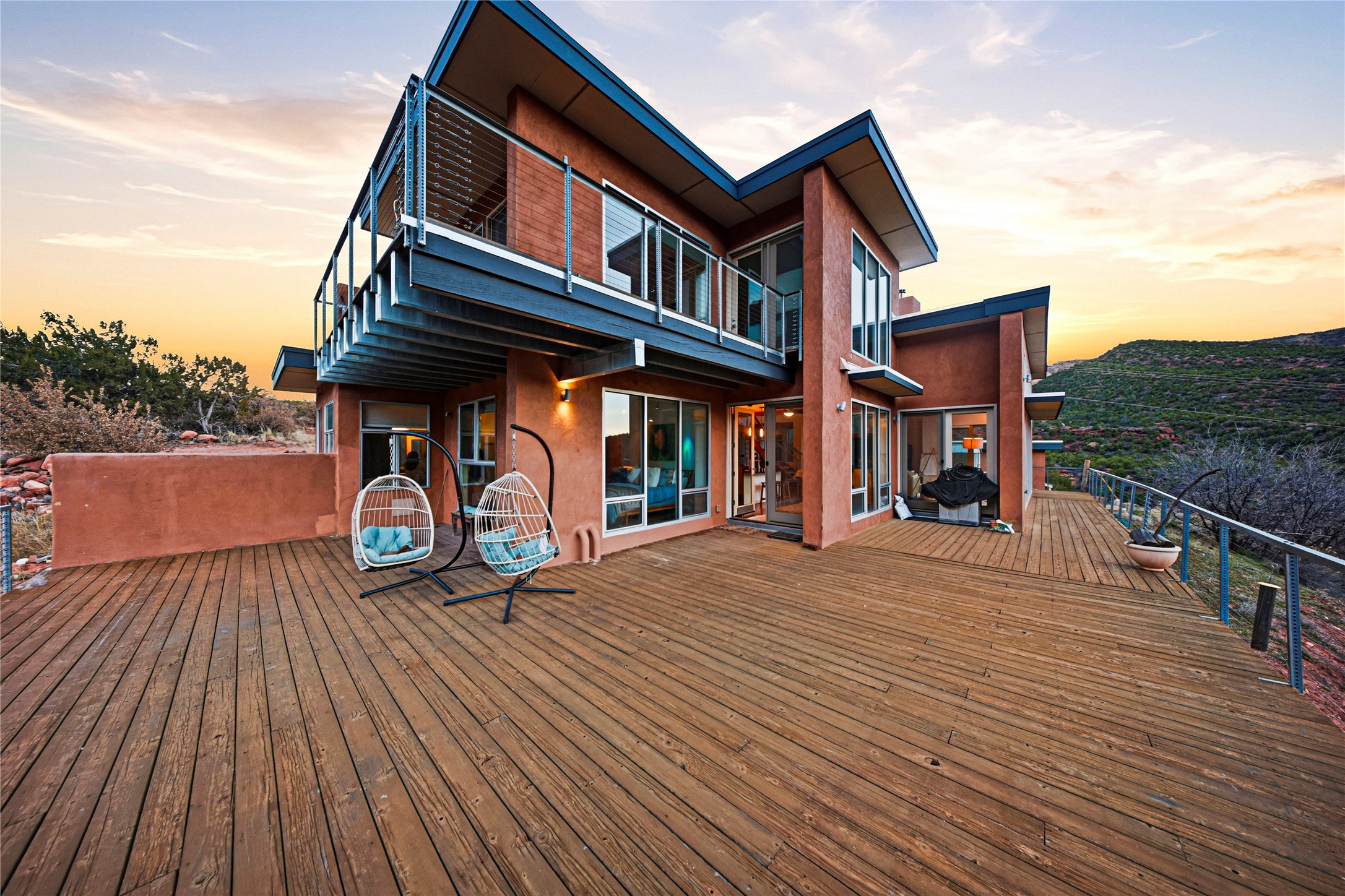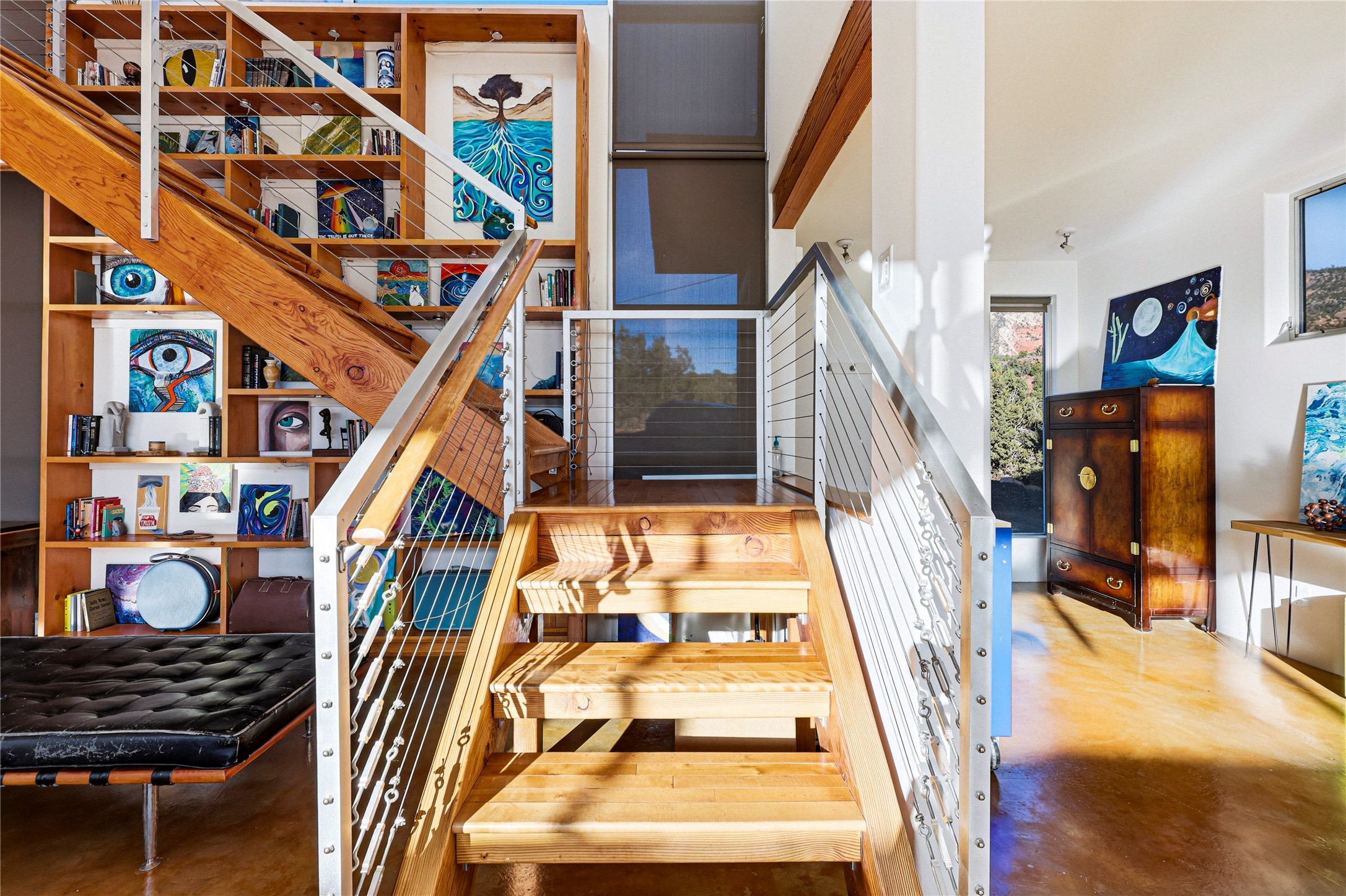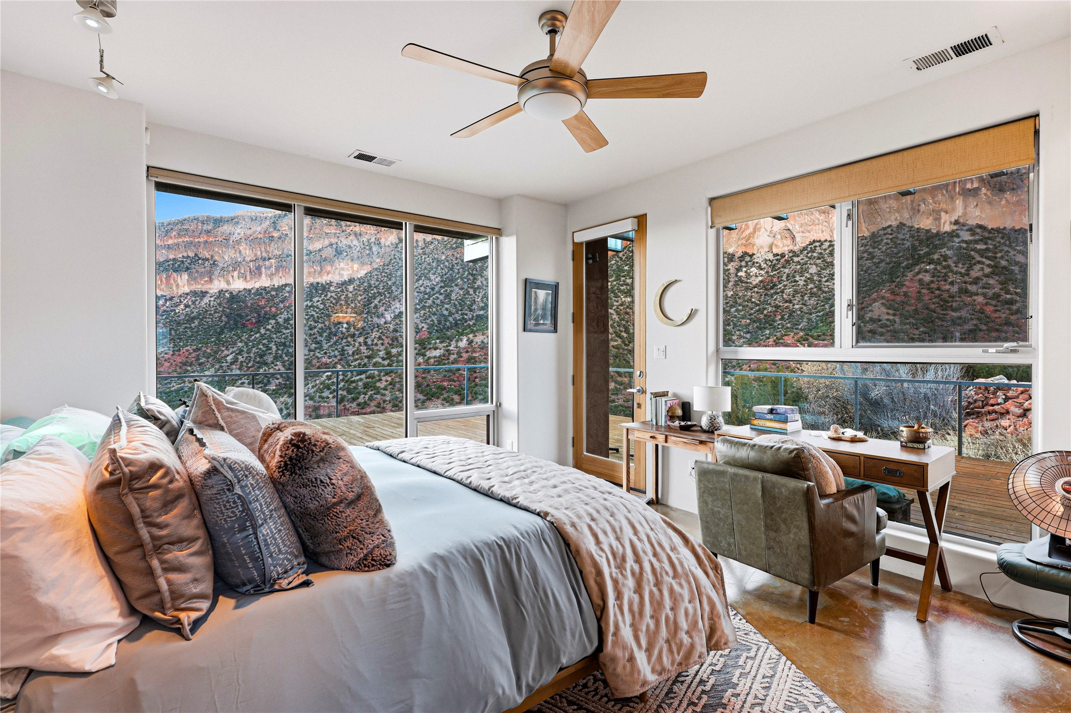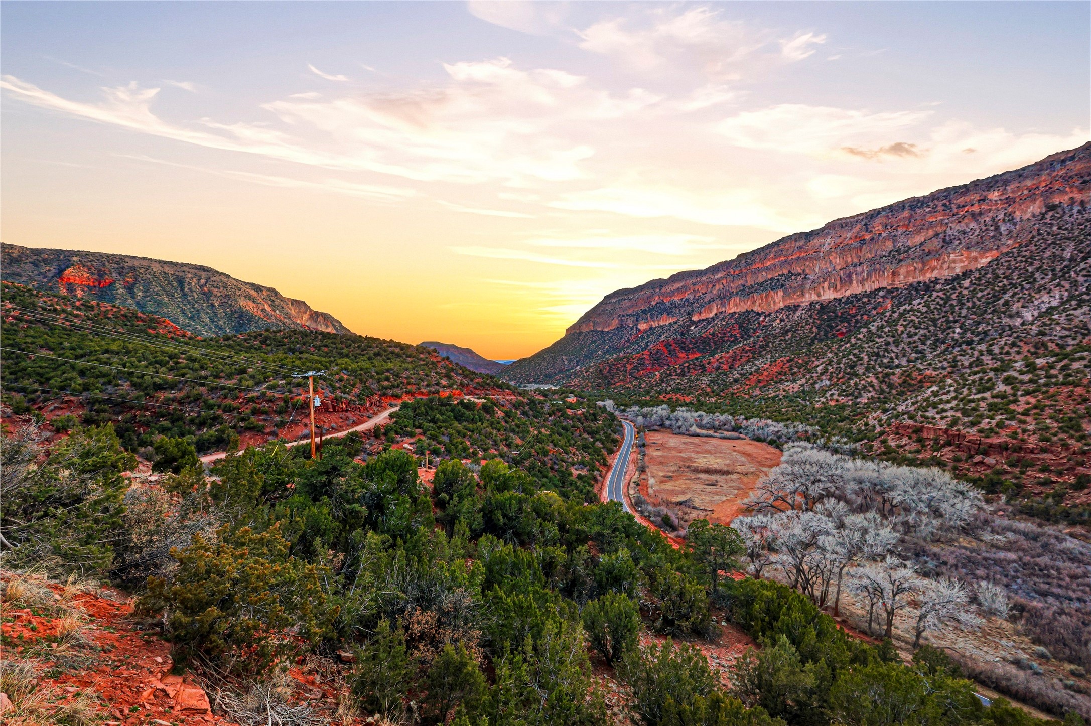 A one-of-one architectural triumph by Judy Cunningham. This 3BR/3BA mountain sanctuary is a masterful fusion of massive timber beams, polished concrete, and pristine wood flooring. Experience walking on air on expansive wraparound decks, capturing dark sky vistas and breathtaking sunsets. The main-level owner's suite offers an otherworldly awakening to floor-to-ceiling views and a soaking tub positioned for the golden hour. A sculptural floating staircase with custom cable railings leads to a private guest wing. Sustainable, high-thermal-efficiency design with paid off solar and elite Starlink Max. A serene, world-class commute to LANL through the Valles Caldera. Santa Fe and the ABQ Sunport are under an hour away. Incomparable brilliance in the heart of the Jemez.