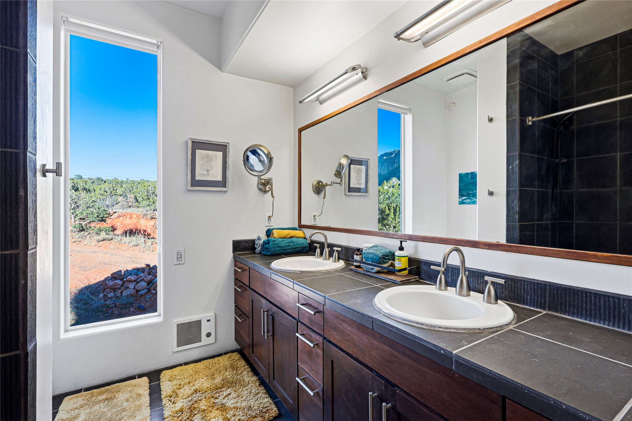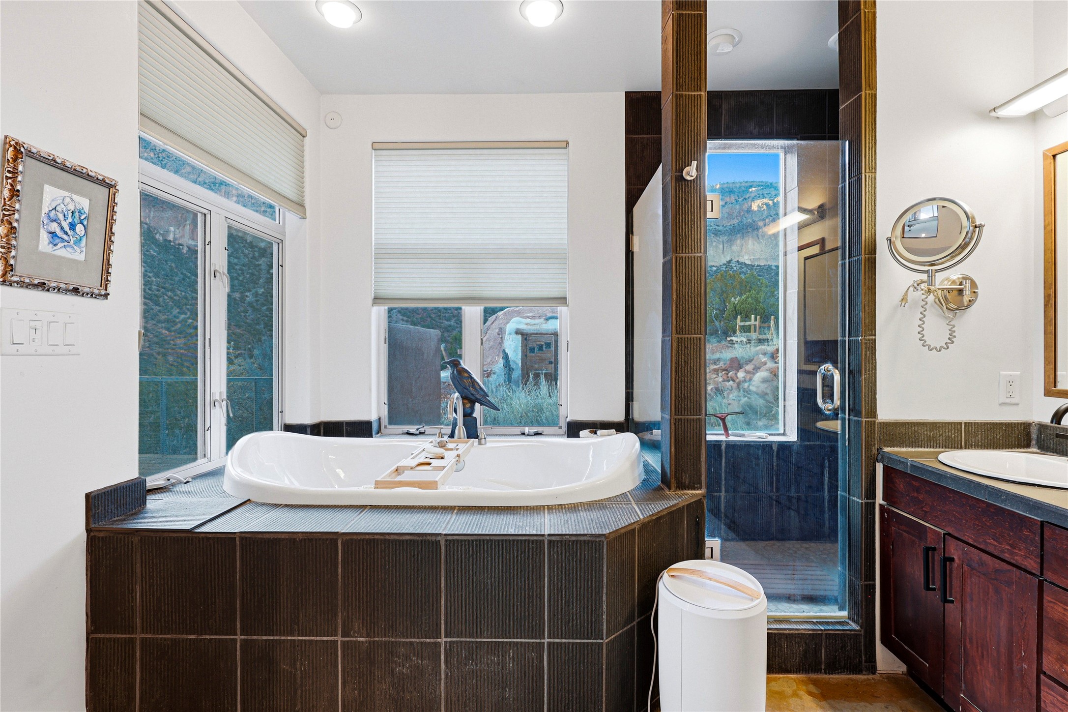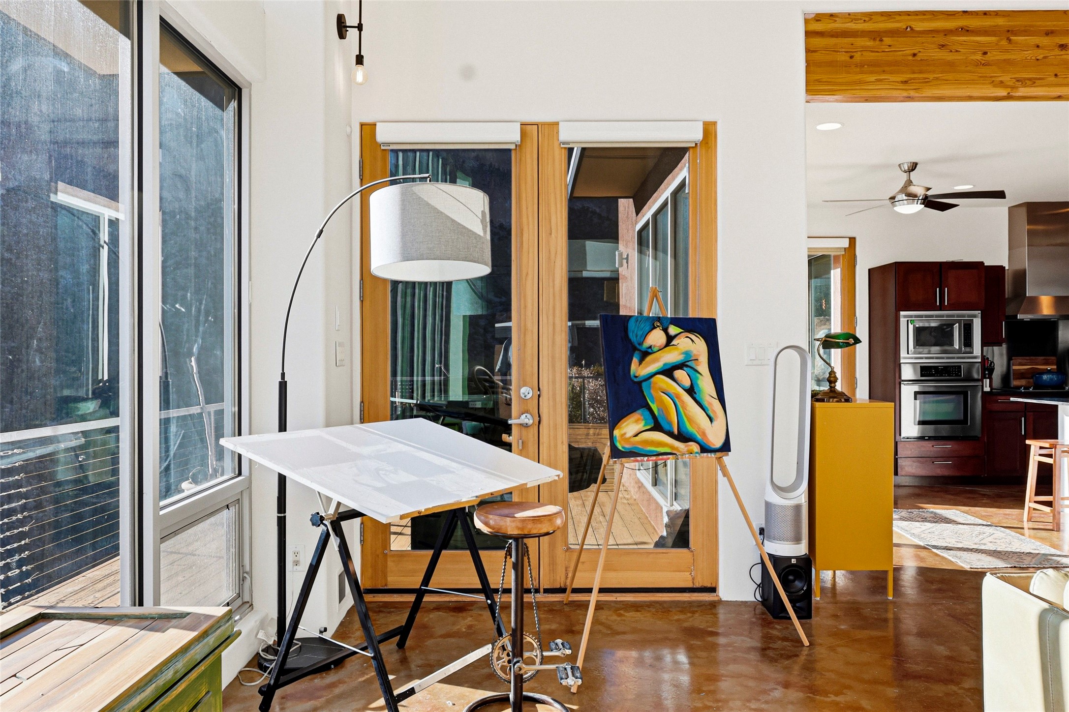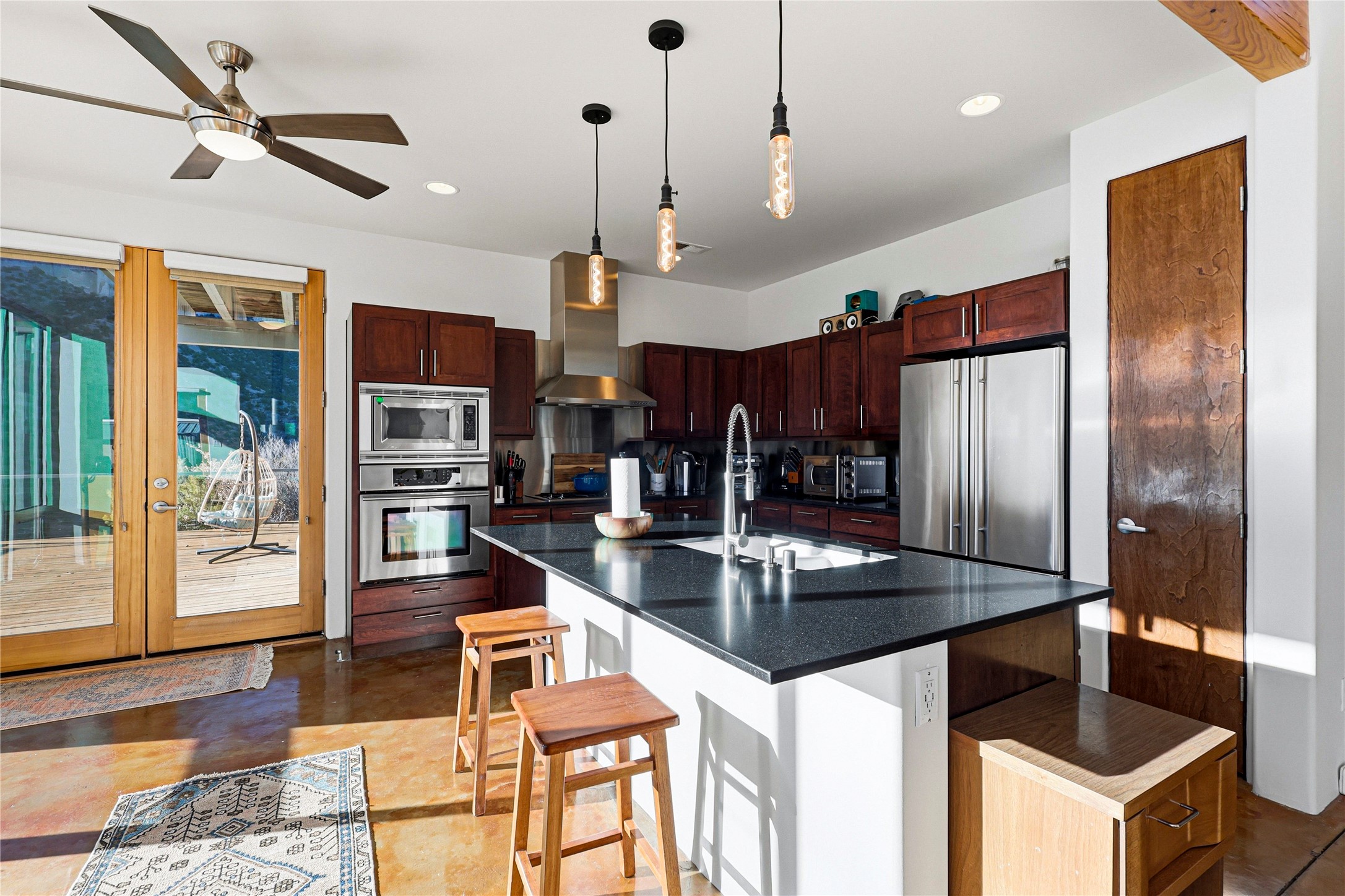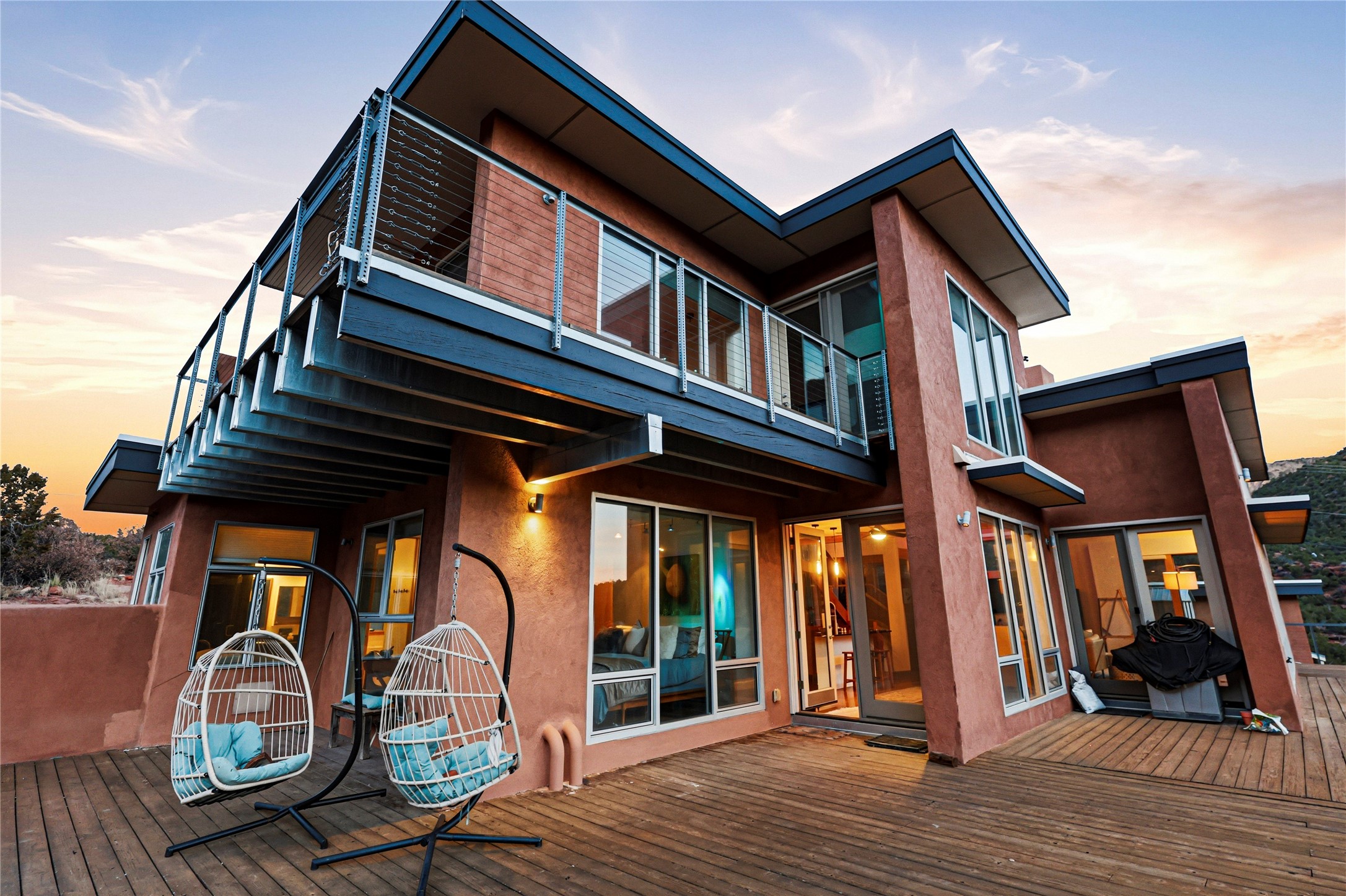 A one-of-one architectural triumph by Judy Cunningham. This 3BR/3BA mountain sanctuary is a masterful fusion of massive timber beams, polished concrete, and pristine wood flooring. Experience walking on air on expansive wraparound decks, capturing dark sky vistas and breathtaking sunsets. The main-level owner's suite offers an otherworldly awakening to floor-to-ceiling views and a soaking tub positioned for the golden hour. A sculptural floating staircase with custom cable railings leads to a private guest wing. Sustainable, high-thermal-efficiency design with paid off solar and elite Starlink Max. A serene, world-class commute to LANL through the Valles Caldera. Santa Fe and the ABQ Sunport are under an hour away. Incomparable brilliance in the heart of the Jemez.