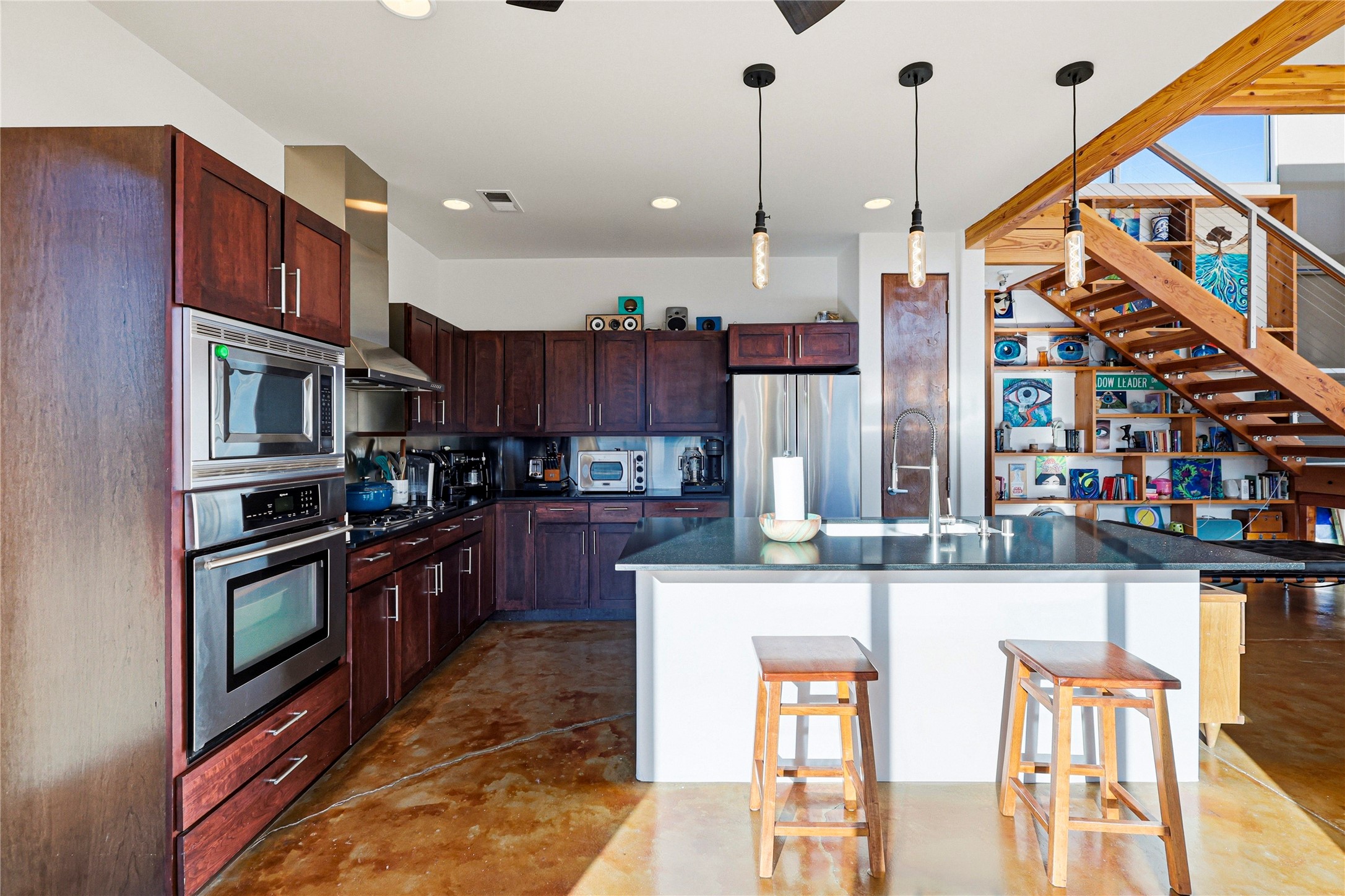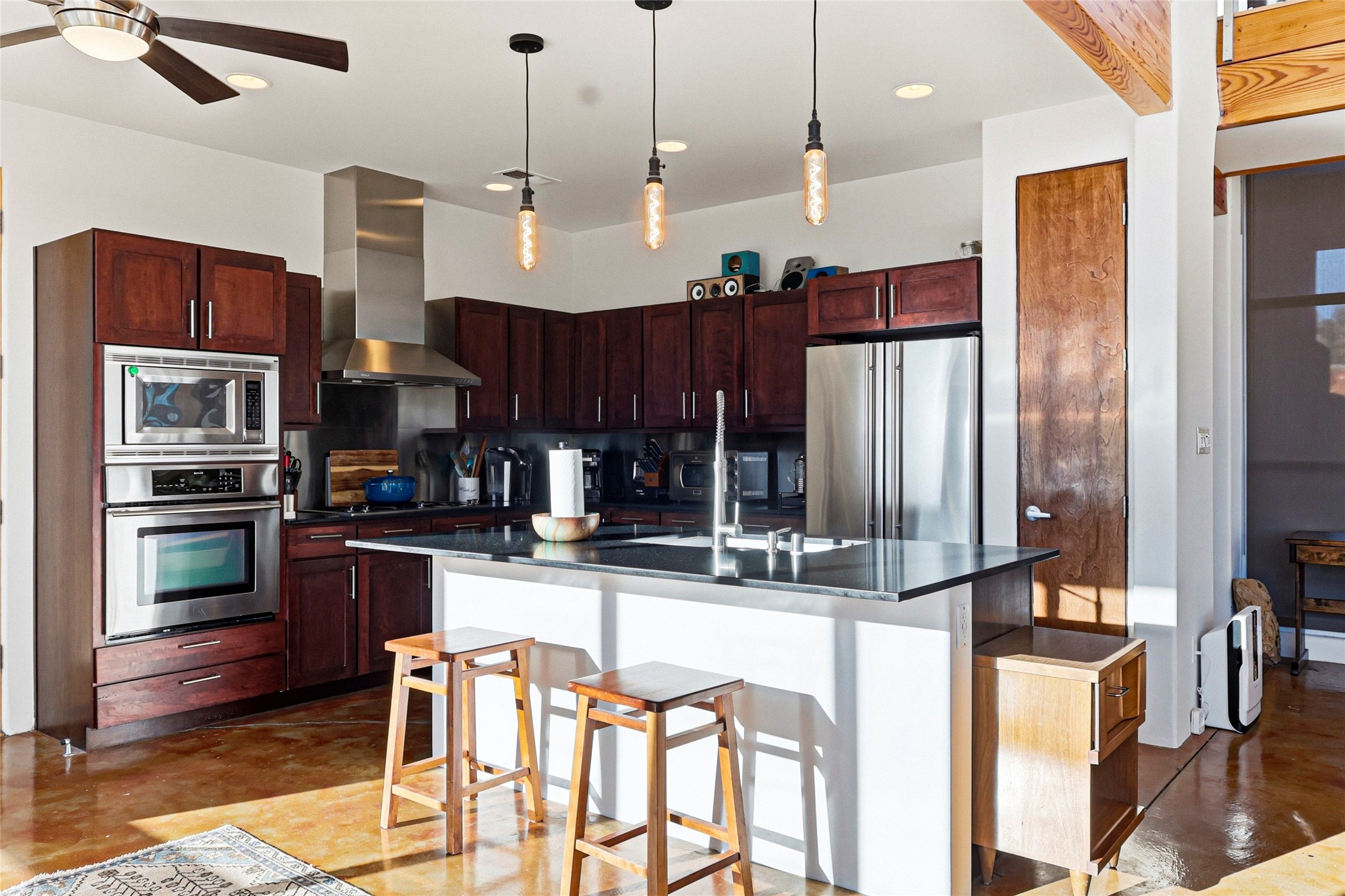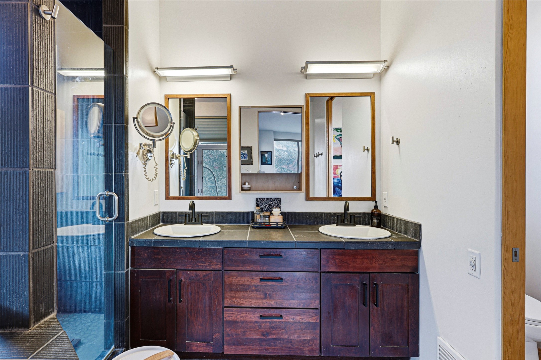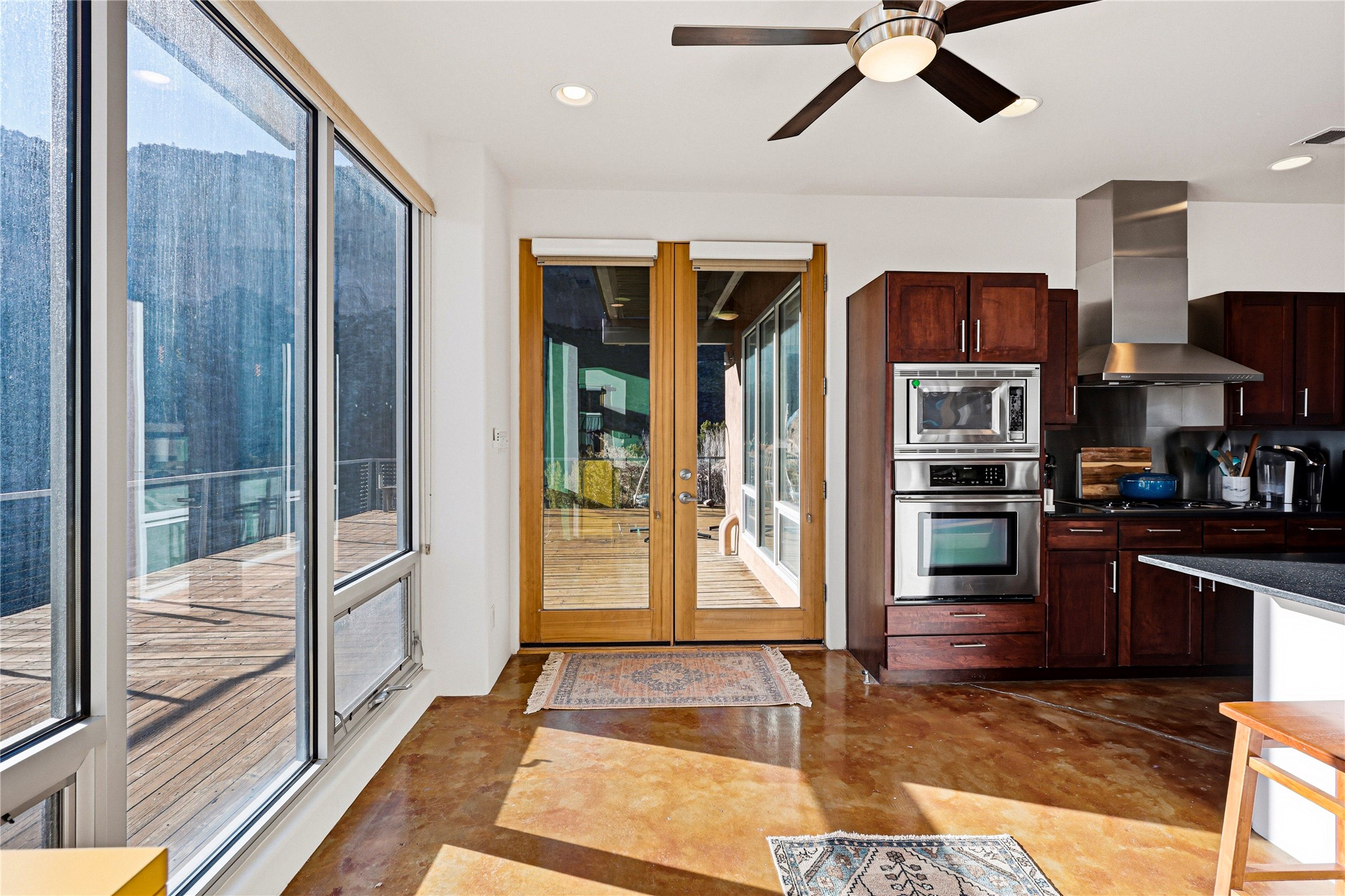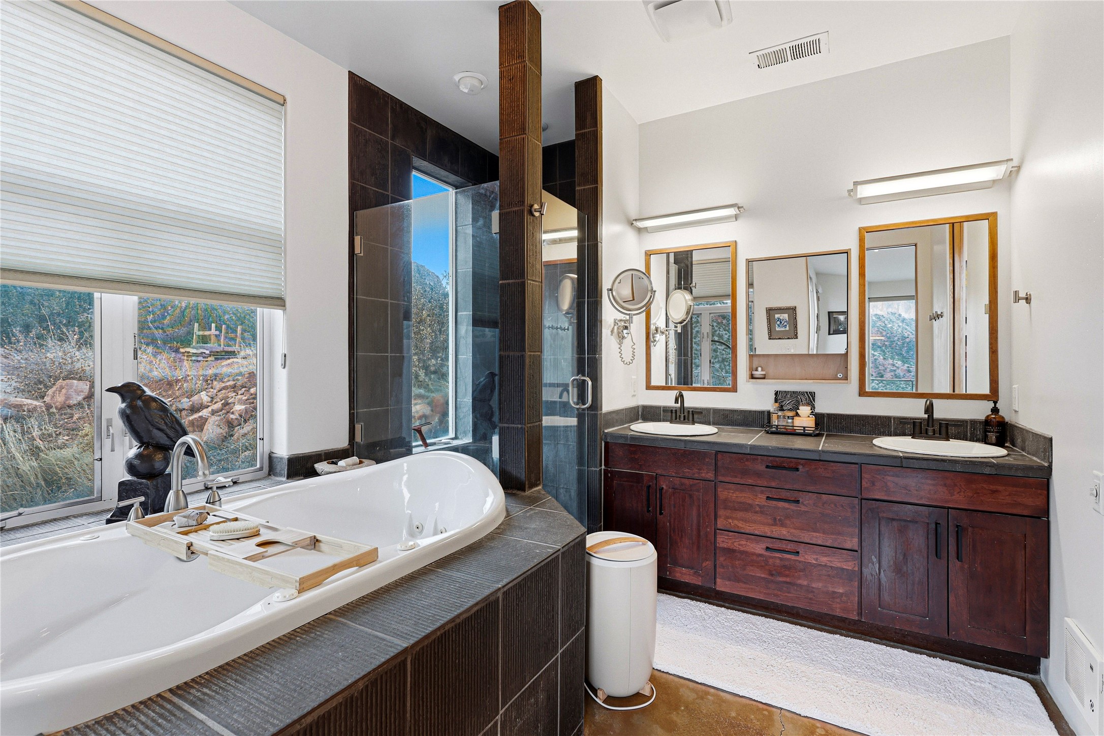 A one-of-one architectural triumph by Judy Cunningham. This 3BR/3BA mountain sanctuary is a masterful fusion of massive timber beams, polished concrete, and pristine wood flooring. Experience walking on air on expansive wraparound decks, capturing dark sky vistas and breathtaking sunsets. The main-level owner's suite offers an otherworldly awakening to floor-to-ceiling views and a soaking tub positioned for the golden hour. A sculptural floating staircase with custom cable railings leads to a private guest wing. Sustainable, high-thermal-efficiency design with paid off solar and elite Starlink Max. A serene, world-class commute to LANL through the Valles Caldera. Santa Fe and the ABQ Sunport are under an hour away. Incomparable brilliance in the heart of the Jemez.