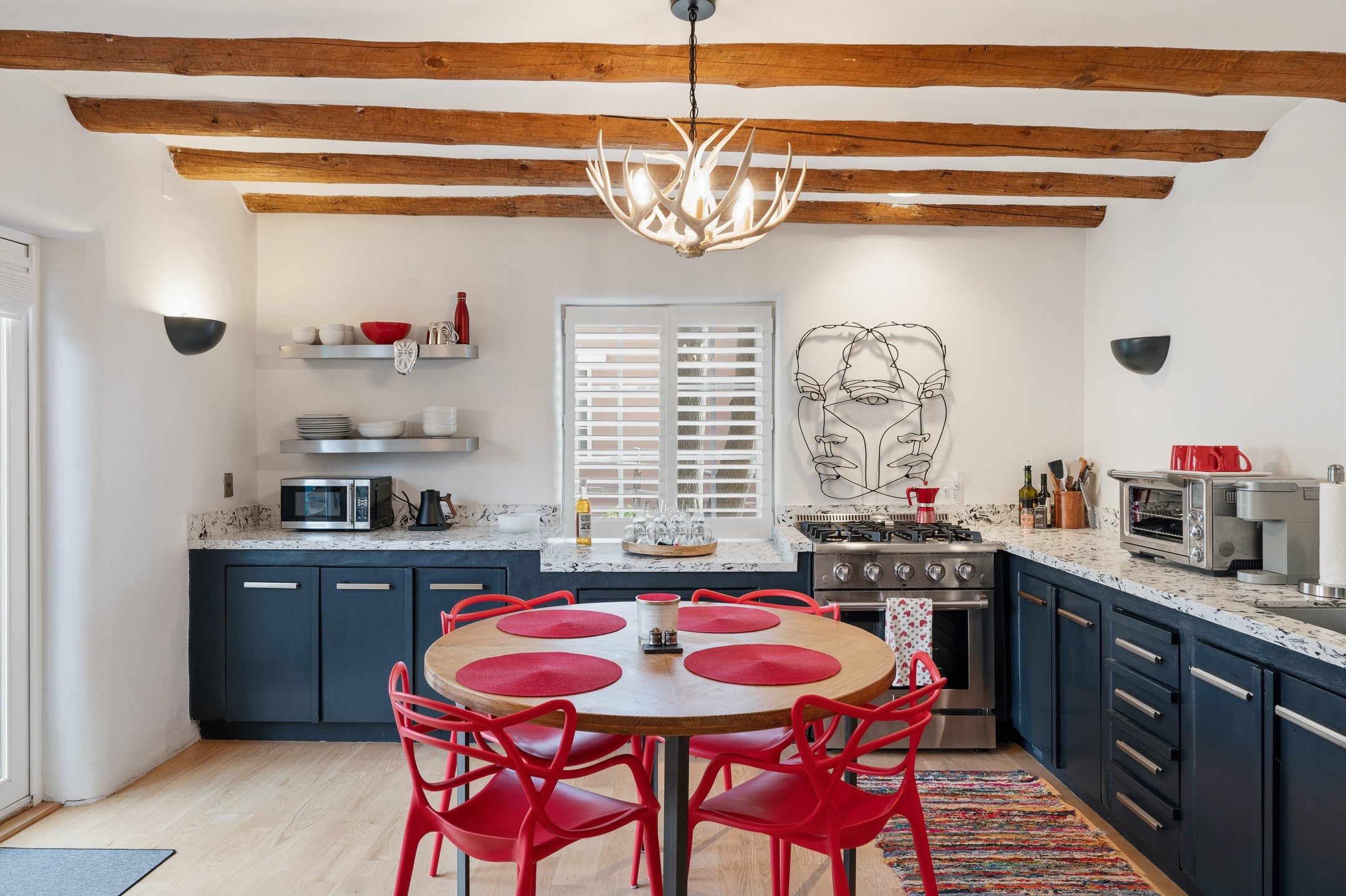 Casita De La Reina! A Perfectly positioned pied--terre in Santa Fe's coveted Historic Eastside, this charming 1-bedroom adobe condo is quite literally a stone's throw from bustling Canyon Road, the Plaza, the River Walk, and Patrick Smith Park. Enjoy effortless access to world-renowned galleries, museums, fine dining, and the vibrant cultural life that defines Santa Fe. This single-level adobe home offers classic Santa Fe style and true lock-and-leave convenience. Step inside to warm, inviting living spaces highlighted by coved ceilings and authentic vigas. Two wood burning fireplaces create a cozy ambiance ideal for relaxing evenings or intimate gatherings. The well-appointed gourmet kitchen features modern appliances, generous counter space, and an eat-in kitchen. French doors open to a spacious private courtyard--perfect for alfresco dining, entertaining guests, or enjoying peaceful mornings with coffee under the iconic New Mexico sky. Framed by river rock walls and flagstone, the courtyard is a secluded oasis designed for both beauty and privacy. Retreat to the serene bedroom, where natural light and thoughtful design elements create a calming, restorative atmosphere. Additional highlights include 2 designated off street parking spaces directly outside Unit #6--an exceptional amenity in this prime Eastside location. Santa Fe's distinctive adobe architecture, rich history, and thriving arts scene make it a city like no other. Immerse yourself in its cultural heritage, savor renowned Southwestern cuisine, and experience the warmth of a community that makes this extraordinary property not just a home, but a lifestyle.