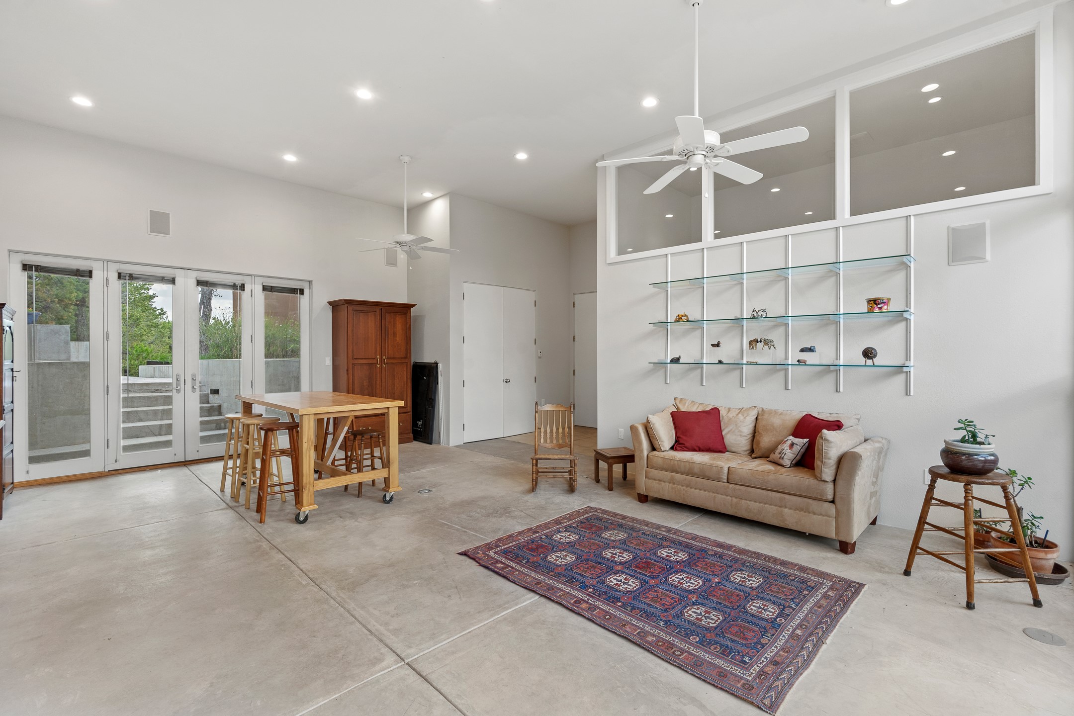 Welcome to a stunning Tesuque area compound in the prestigious gated Los Caminitos subdivision. On over 5 acres with a private well, fantastic Jemez and sunset views from main house built by Sharon Woods in 95'. The kitchen is stunning with doors to the portal with outdoor fireplace. Elegant living/dinning room surrounded on three sides by windows with upper end metal shades. Primary bedroom includes fireplace and access to rear patio. Two guest bedrooms have their own private deck with views of the Sangres. 3 car garage. Separate guest house with bath, as well as a large studio apartment and spacious studio with large north windows and new modern bathroom. Several owner upgrades including new entrance gate and septic field, new drip irrigation and pantry. Community pool and racquet courts. Lavender, roses, aspens, lilacs crab apple and peonies. 15 minutes from the plaza, adjacent to the Four Seasons resort, close to Tesuque Village Market and the world renowned Santa Fe Opera. If privacy, security and the New Mexico landscape is what you are looking for, come see.