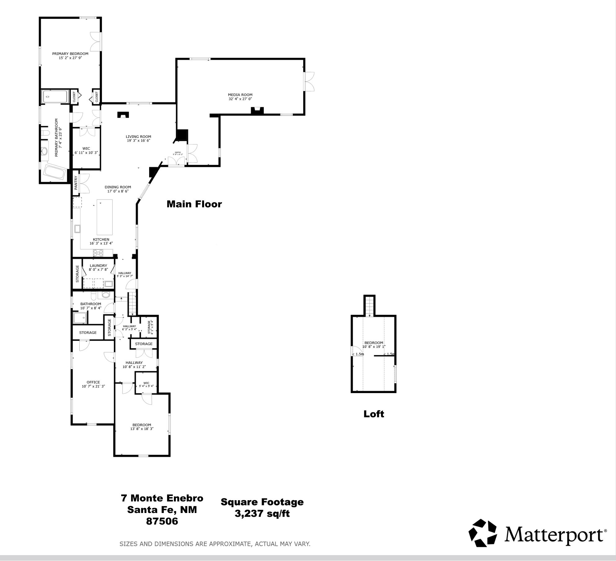 Experience the best of both worlds in this classic Northern New Mexico adobe, where timeless architecture meets a contemporary, light-filled interior. Spanning 3,237 sq. ft., the home offers 3 bedrooms, 2 baths, and an inviting upstairs loft with generous storage. The residence features a chef's kitchen, soaring ceilings, and a dining/family room warmed by a wood-burning stove. The large primary en-suite includes a spacious walk-in closet system, a luxurious soaking tub, and a separate shower. The bedroom's high ceilings and walk-out access to the garden create a private retreat. The expansive living room--anchored by a wood-burning fireplace--can be configured as both a living space and formal dining area. A 231 sq. ft. front patio provides an exceptional setting for entertaining or simply enjoying the outdoors. Several versatile outbuildings complement the main home: a 2-car carport, a 1,259 sq. ft. garage/workshop with an attached studio and office, and a 720 sq. ft. adobe garage with warehouse-style roll-up doors--ideal for artists, craftsmen, hobbyists, or a home-based business. Set on a sprawling 3.17-acre lot, the offering also includes an additional 2.52-acre parcel with its own water rights and an 840 sq. ft. garage/storage building--for a combined 5.69 acres. The property is a gardener's or farmer's dream, boasting 13.26 acre-feet of irrigation water rights across the two parcels, plus a private well with water rights. With boundless potential for future development--and room for horses--this unique property is located just 20 minutes from Los Alamos or Santa Fe. Don't miss the aerial video and 3D virtual tour!