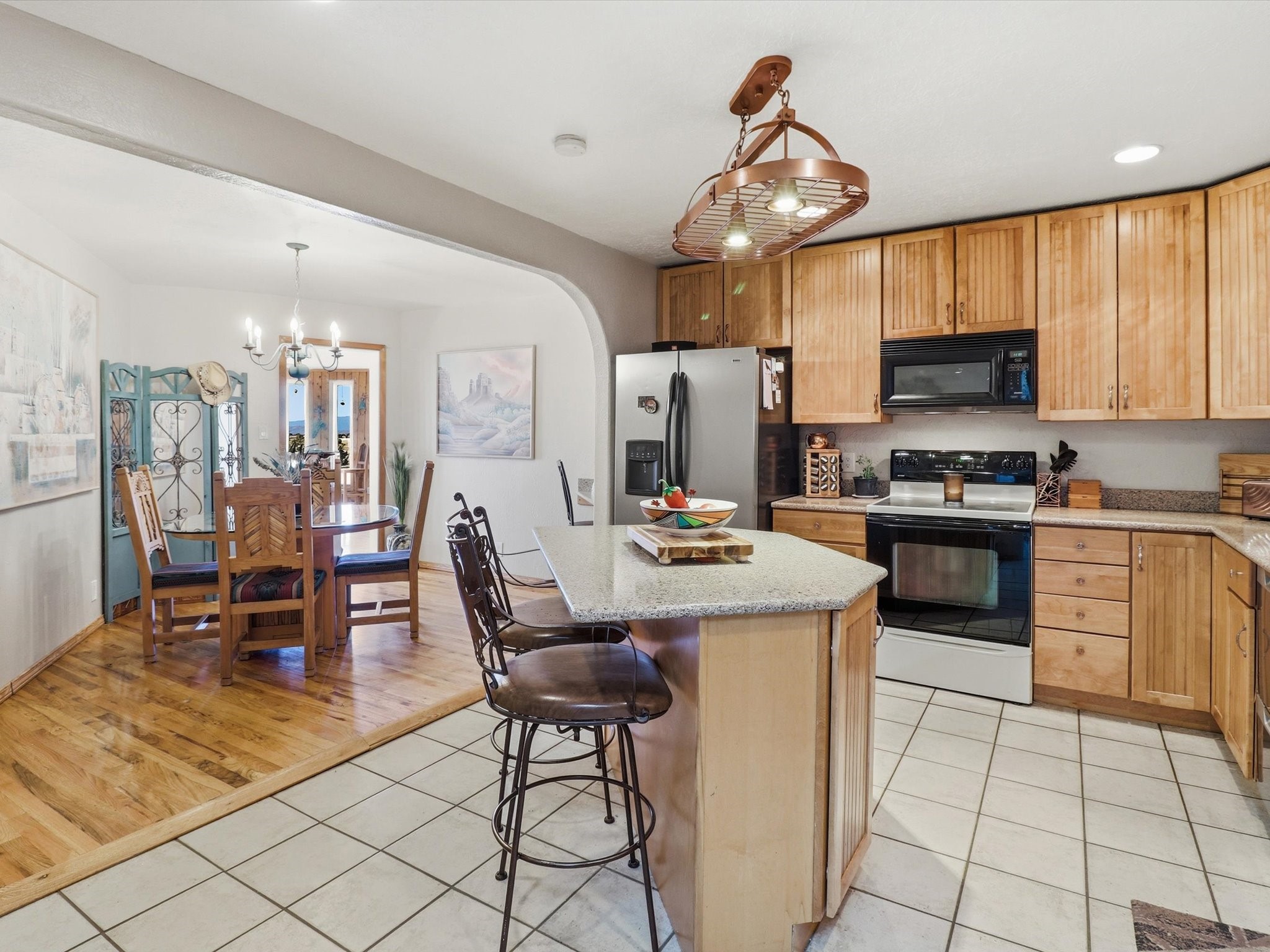 Set on 5.19 fully fenced acres just minutes outside Santa Fe, this Southwestern ranch retreat offers breathtaking sunrises, sunsets, and equally impressive dark night skies. The 4-bedroom, 2-bath single-level home features a light-filled open floor plan, tile and wood flooring, and expansive windows that showcase the surrounding mountain views. The circular Kiva-style living room, with twelve floor-to-ceiling windows, invites natural sunlight and the beauty of Santa Fe inside, while the spacious living area and two master suites provide comfort, privacy, and abundant closet space. Three additional rooms can serve as bedrooms, allowing for a total of five.Two outdoor patios--one with a tranquil water feature and one with a kiva fireplace--offer peaceful escapes year-round, where you can enjoy the many hummingbirds or watch a family of 16 ravens keep the barn animals company. The home seamlessly blends indoor and outdoor living, with large sliding windows in the main living areas letting in fresh mountain breezes.Equestrian enthusiasts will appreciate the three barns (one with a separate tack room), each with water and electricity, capable of hosting up to 12 horses, offering strong income potential from boarding. The nearly 4-acre fully fenced field provides a safe pasture for turnout and includes a 60' round pen for training. Recent updates include an attached insulated two-car garage with shop sink and ample storage, along with covered portals and patios designed for outdoor entertaining and relaxation.With no HOA restrictions, this property provides flexibility for horse lovers, hobbyists, and families seeking a peaceful retreat. Just minutes from Santa Fe's shopping, dining, and amenities, this well-maintained home is a bright, spacious ranch haven that captures the quintessential Santa Fe lifestyle--mountain views, abundant wildlife, and serene open spaces.