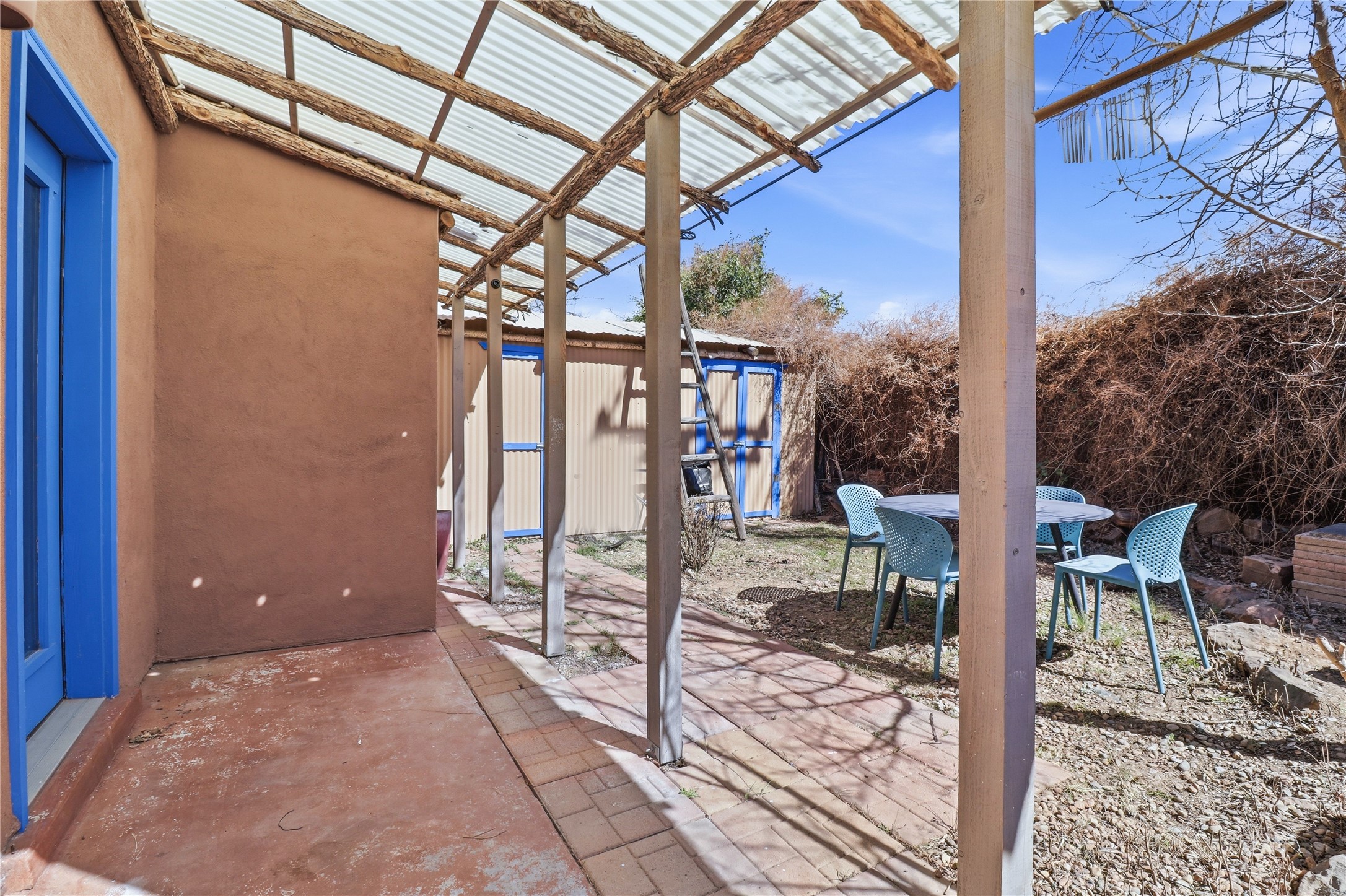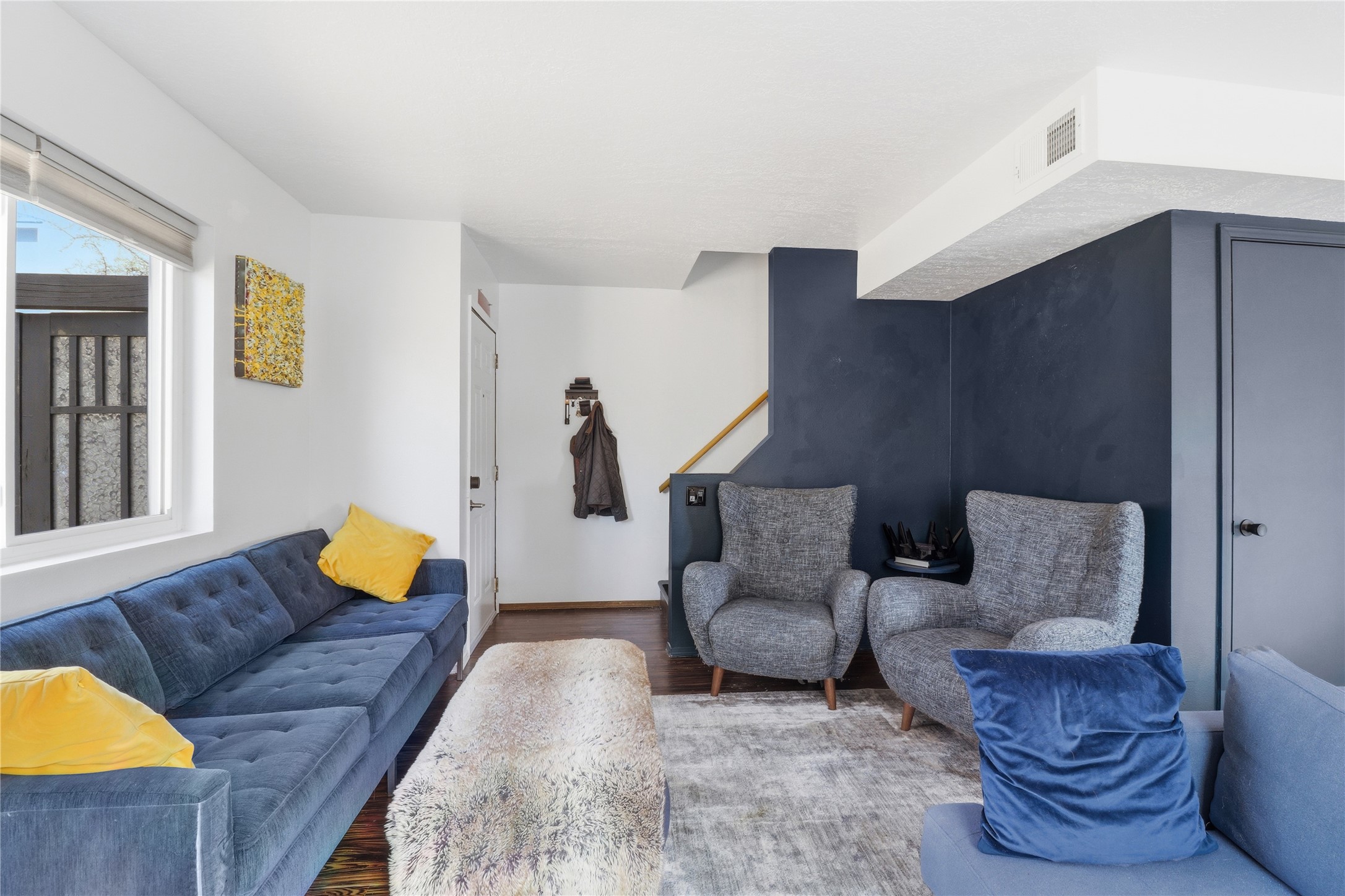 Super sweet townhome in Casas Carlos Rey! This rare 3-bedroom, 2-full-bath corner unit offers exceptional privacy and charm in a central Santa Fe location. As an end unit, it features a fully enclosed, wrap-around outdoor space--including a private backyard with storage shed, side yard, and front yard--perfect for relaxation and gardening. Layout highlights include a modern updated kitchen, one bedroom and one full bath downstairs for easy accessibility, plus two bedrooms and one full bath upstairs. Upstairs bedrooms offer large closets, and one features a private balcony/deck with mountain views of the Sangre de Cristo range and open space at nearby Francis X. Nava Park. Prime proximity to shopping, parks, restaurants, schools, and downtown Santa Fe. This extremely rare find combines Santa Fe style, modern comfort, convenience and affordability--ideal as a primary residence, starter home, second home or smart investment property.