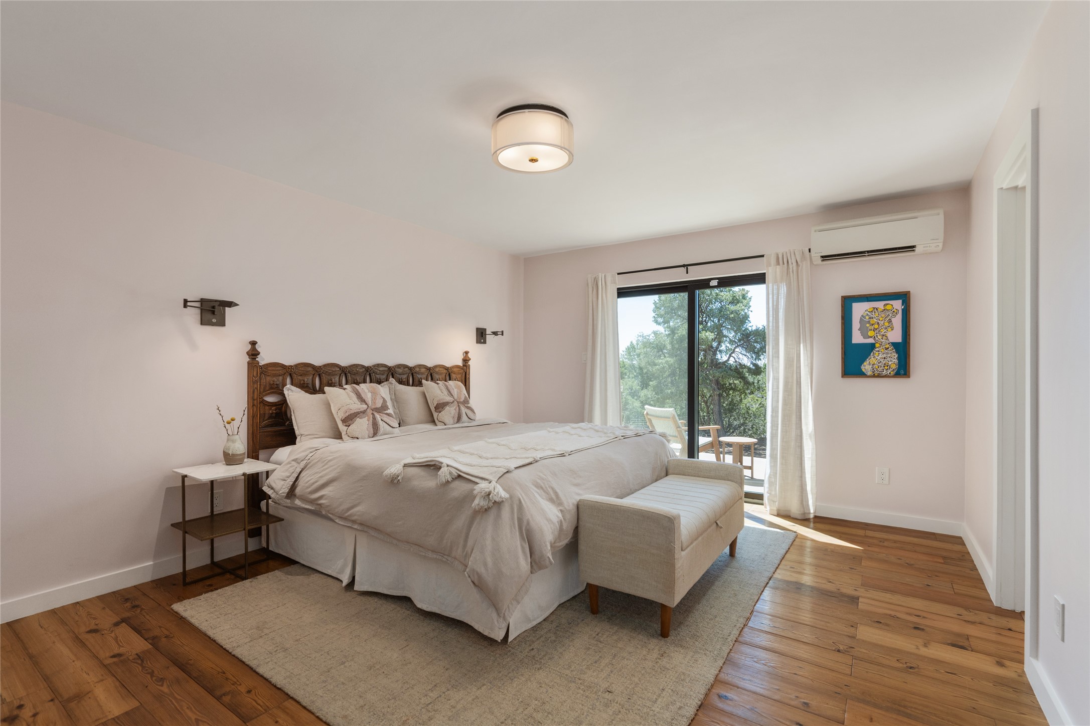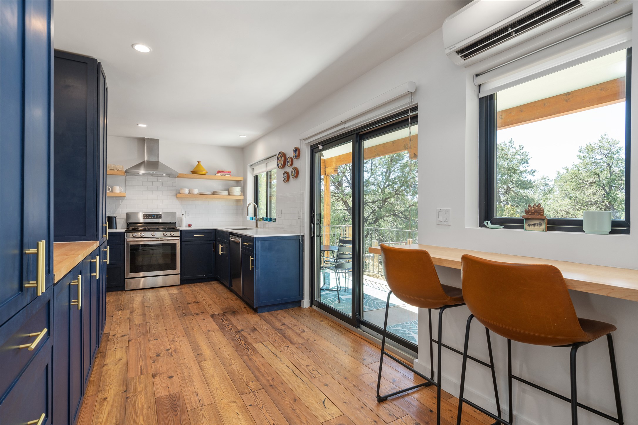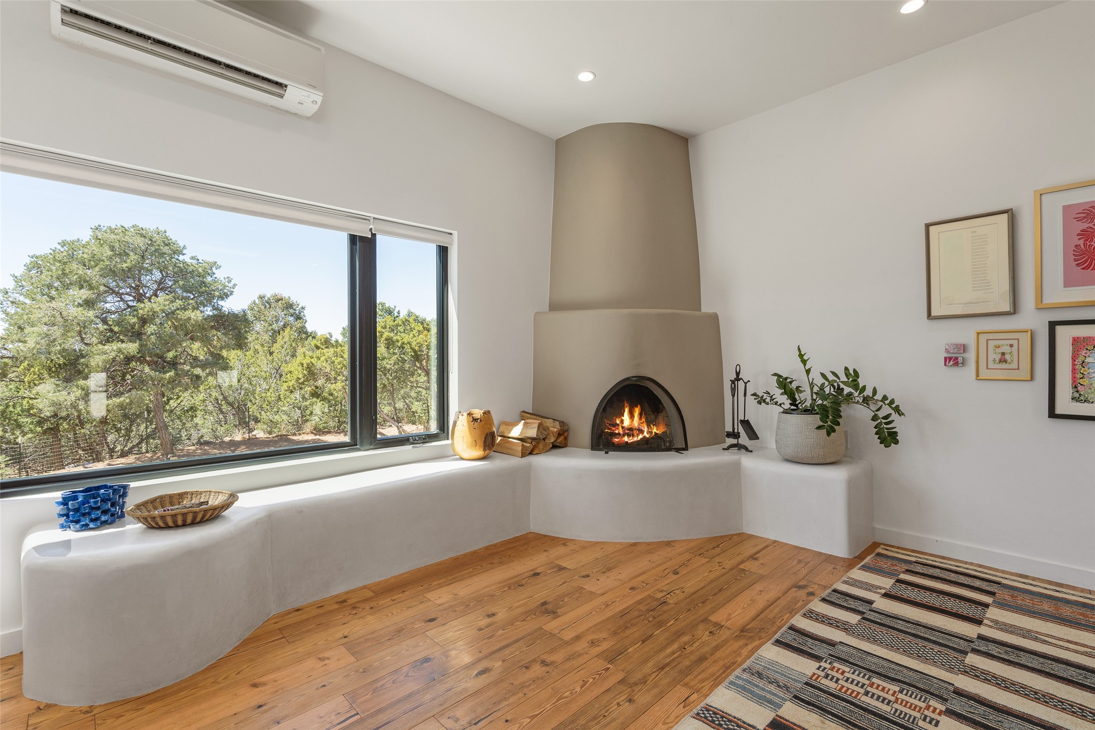 Set among pion and juniper trees in the coveted Hondo Hills neighborhood, this fully remodeled 3-bedroom, 2-bathroom, plus flex space home delivers modern comfort combined with Southwestern character.The interior is light and bright, with smooth plaster walls, rich wood flooring in the main living areas, tile in the bathrooms, and a classic kiva fireplace that anchors the living space beautifully. The updated kitchen opens to a patio perfect for outdoor dining, while a second patio off the primary bedroom offers a quiet personal retreat. A ductless mini-split system ensures efficient, year-round comfort.Every major system was addressed during the remodel in 2021- new windows, roof, and stucco this means the big-ticket items are already taken care of. The 2-car garage adds storage and everyday convenience.Out back, a fully fenced and landscaped yard provides privacy and a sense of place, near Arroyo Hondo hiking trails. A move-in ready home where thoughtful updates meet the beauty of the high desert.