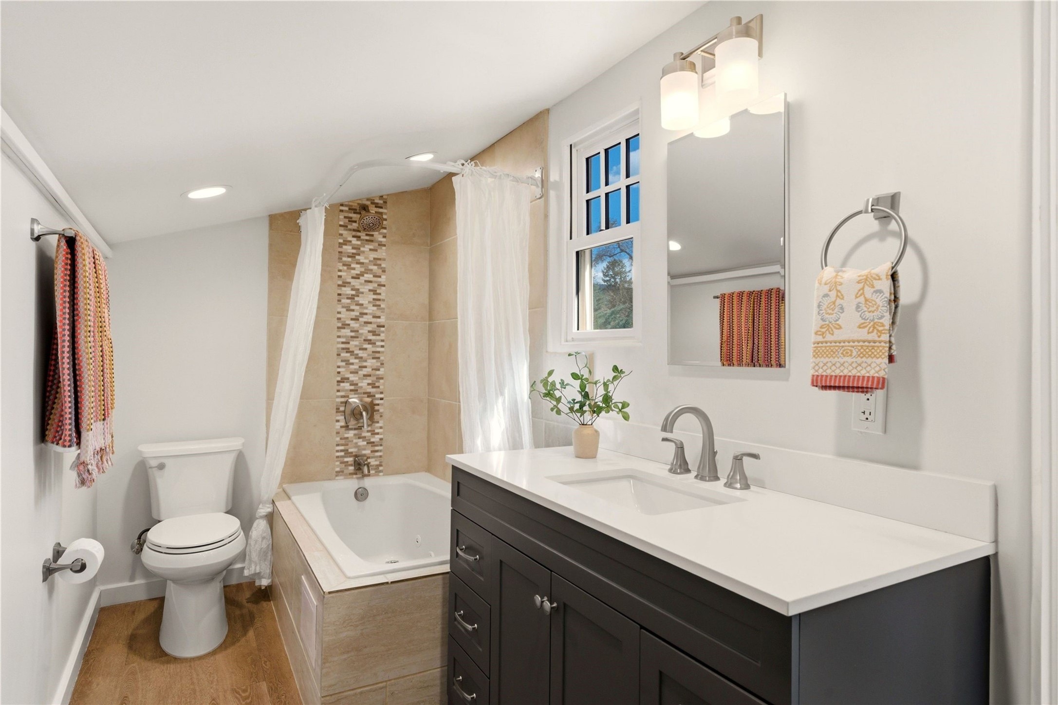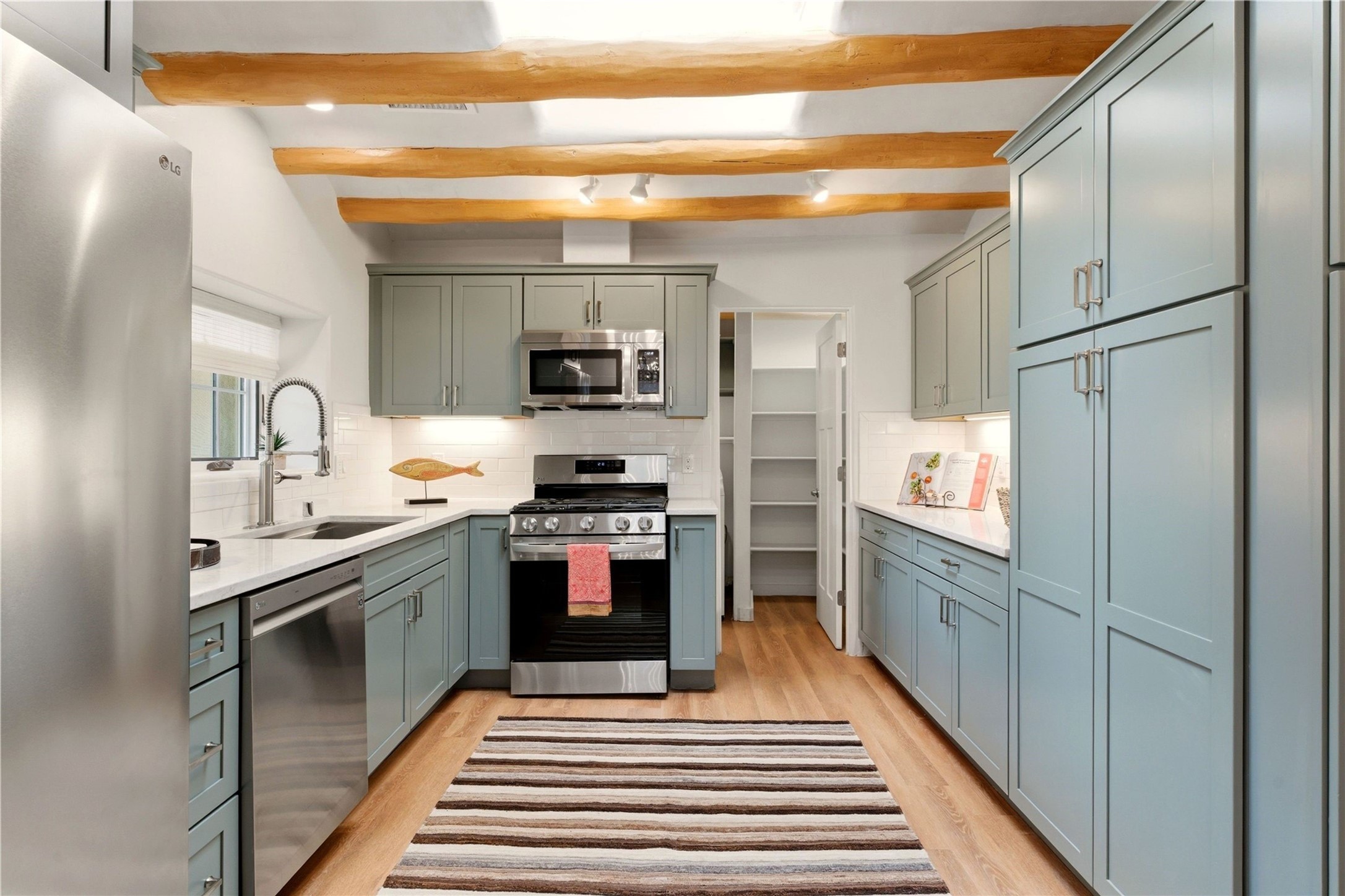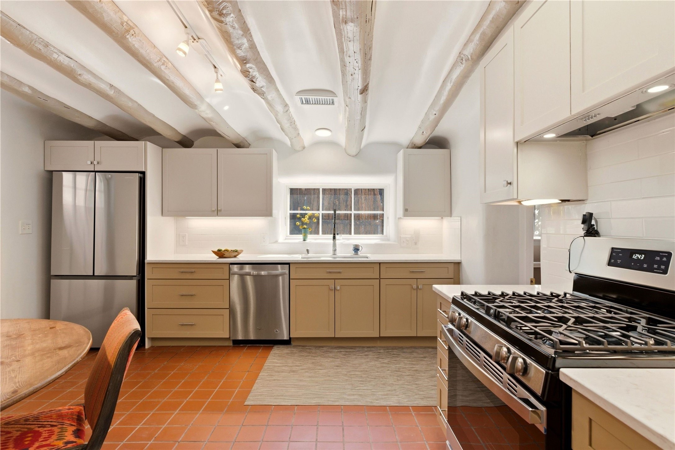 Enjoy the wonders and convenience of living on the historic Eastside while ensconced in the luxury of a historic property that was completely reimagined and renovated in 2023. This pristine residence consists of 4 bedrooms and 4.5 bathrooms, with the primary suite and one of the bedrooms on the main level and 2 guest suites in the upper levels. The property is comprised of 2 condominiums that have been thoughtfully connected to live as a single family home, with the easy option to separate the 2 residences into 2 bedroom & 2 bathroom smaller homes. The original structure has been traced back to 1717 and it was once a general store that served as a hub in the small community. The location directly on the Acequia Madre (the Mother Irrigation Ditch) harkens back to a time when the Eastside was farmland. The property benefits from a rare single vehicle garage and additional guest parking. Enjoy the lifestyle that living one block off of Canyon Road provides, with short walks to some of the finest dining options and galleries in Santa Fe. (Unit A is approximately 2,000 sq ft. and Unit B is approximately 1,545 sq ft.)