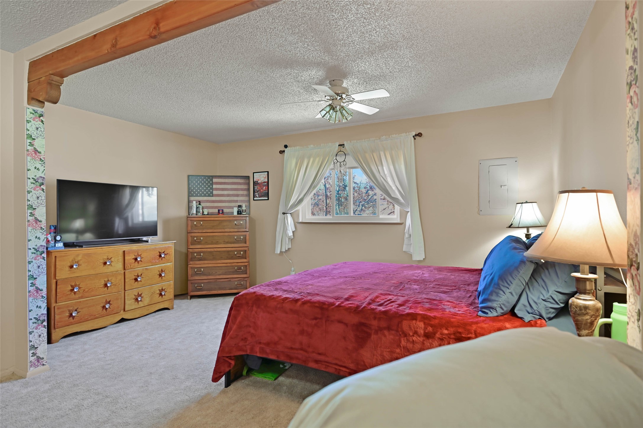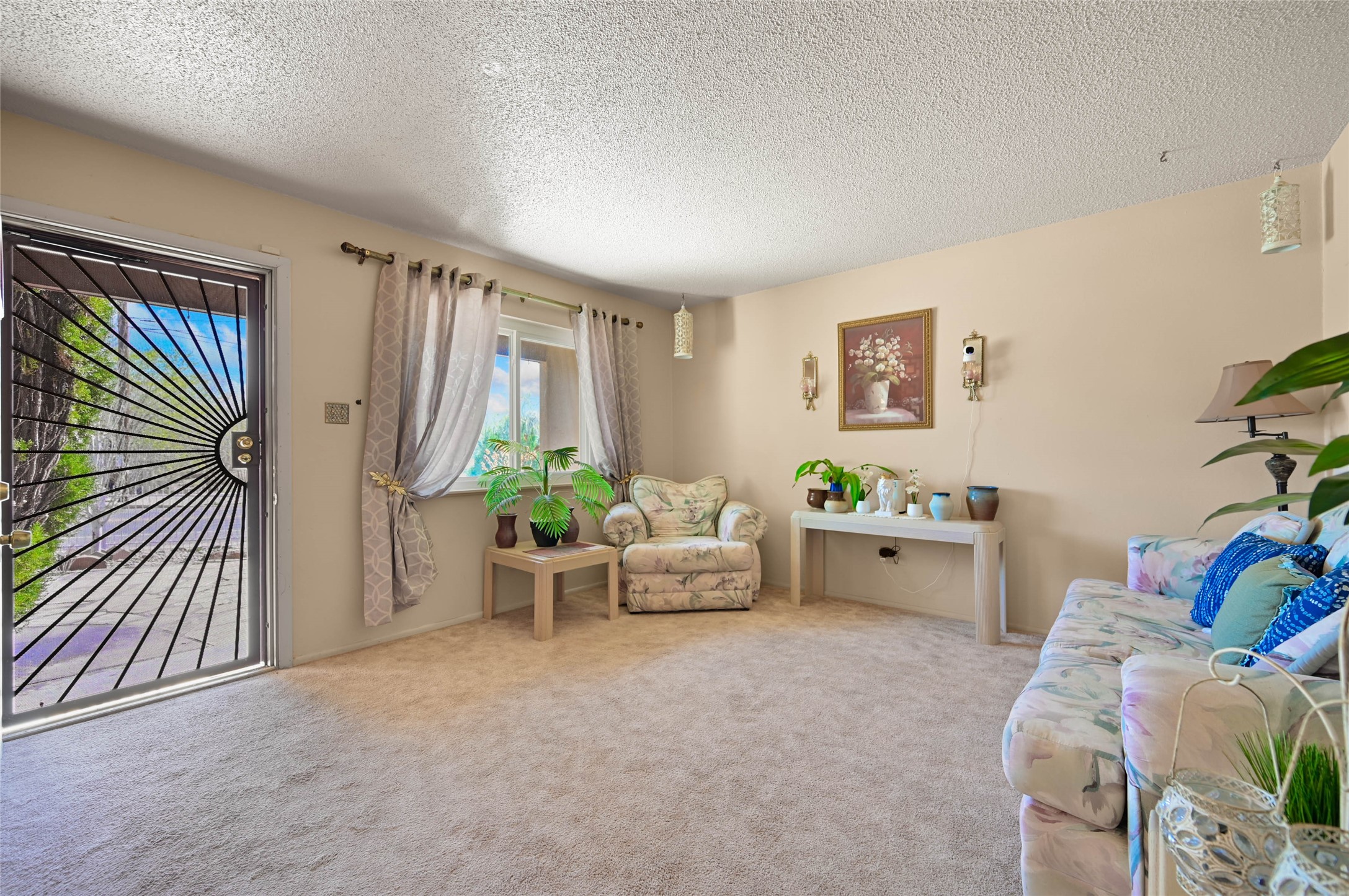 This 1,600 sq ft. residence offers a practical, versatile layout designed for modern living. Featuring 3 bedrooms, a full bathroom, and a convenient powder room, the home is anchored by a bright floor plan that flows naturally from room to room. A major highlight is the professionally converted garage with a fireplace. Outside, the property features a dedicated patio area shaded by a custom, hand-covered wood awning. This unique architectural detail creates a comfortable, private setting for outdoor dining, relaxing, or hosting friends.
