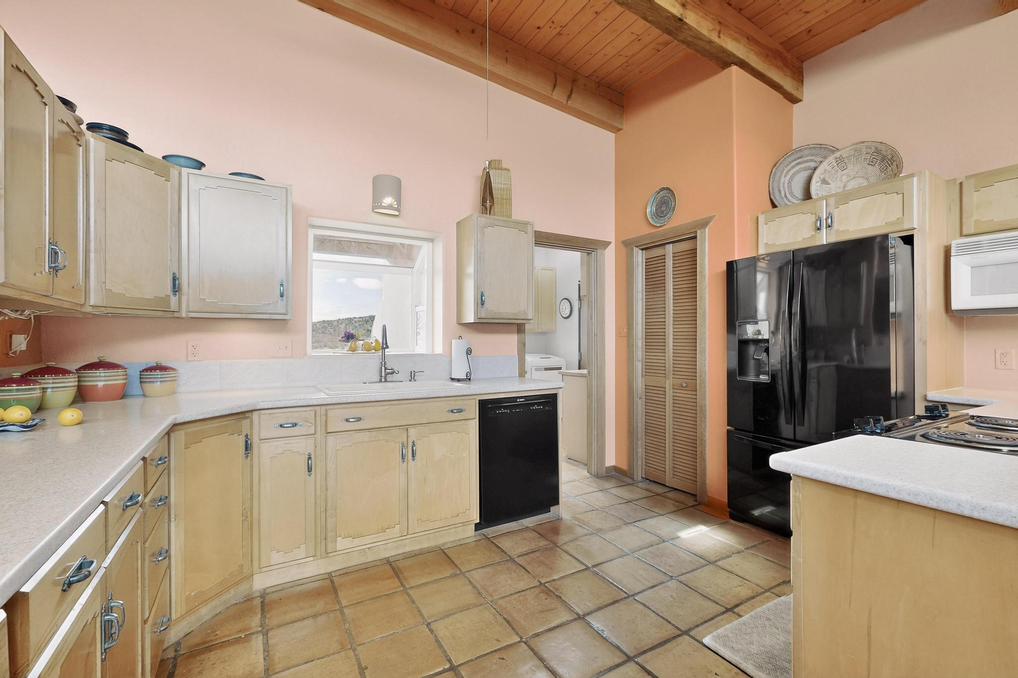 An Elevated Southwest experience on 5.75 acres set against breathtaking Red Mesas of Jemez, capturing expansive VIEWS & exceptional seclusion in a private end of road setting. Enter through courtyard garden into great room, high wood beam ceilings & Radiant Saltillo tile throughout. Spacious kitchen w/ island opens seamlessly for gathering & entertaining. Meticulously cared for, this property reflects lasting quality. Beautiful, spacious primary suite w/ private bath & walk in closet. Comfortable enclosed sunroom w/ hot tub for year round relaxation. Outside, Casita beautifully finished in matching materials, perfect for guests or multigenerational living. Newer TPO roof, 2 fireplaces, laundry room, oversized finished 2 car garage w/ workshop & generator, plus additional studio & RV PAD.At the crown of established Tower Ridge Road, this bespoke retreat commands sweeping red rock views and a rare sense of privacy. The home enjoys a naturally elevated setting where surrounding residences remain respectfully set apart, while direct access to bordering public land opens to miles of unspoiled landscape and quiet exploration. Pella windows throughout, complemented by automated skylights with remote controlled venting a. The spacious primary suite, well appointed bath, walk in closet. The laundry room offers thoughtful functionality. Throughout the home, doors, cabinetry crafted from hardwood, coordinated hardware.The detached casita offers exceptional flexibility for guests or extended stays, wood burning stove, radiant floor heat, Evap. cooler, heating, private bath.Detached studio annex heating /cooling wall unit 3 skylights, ambient diffusing shade screens, offering exceptional versatility for art, yoga, storage, studio work, a wood shop, light industrial projects.An oversized finished 2 car garage, storage or projects. A propane powered generator is also included. Full tiled sunroom with a nice hot-tubFurniture may be available with an acceptable offer.