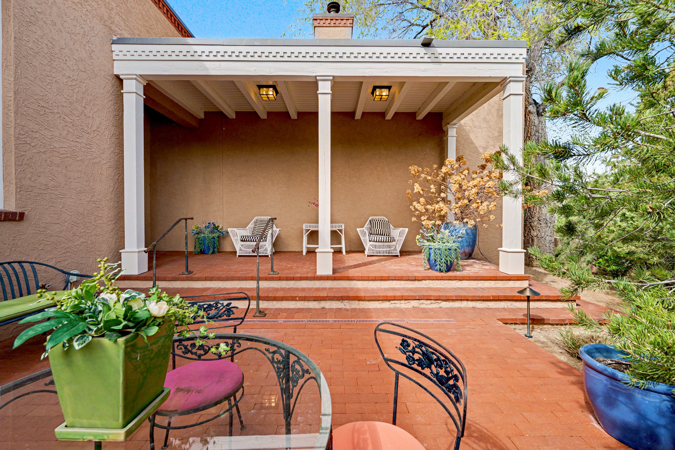 Own a rare piece of Santa Fe history. Situated on a desirable corner lot in one of Santa Fe's most sought-after neighborhoods, this exceptional condominium is part of the historic Manderfield enclave--originally designed in 1927 as a school by renowned architect John Gaw Meem. Thoughtfully reimagined by acclaimed architect Eric Enfield in collaboration with Prull Custom Homes, the property earned the prestigious 2018 Historic Preservation Award. This stunning 2,328-square-foot residence features two ensuite bedrooms and two-and-a-half baths, with soaring ceilings and abundant natural light throughout. The expansive galley kitchen is appointed with top-of-the-line appliances and custom cabinetry, seamlessly opening to a refined great room with hand-plastered walls, rich wood flooring, and a cozy gas fireplace. The oversized owner's suite offers a true retreat, complete with high ceilings, a gas fireplace, and large windows framing views of the Santa Fe foothills. Step outside to the largest courtyard in this luxury compound--an entertainer's dream. A territorial-style portal and beautifully landscaped wraparound outdoor space create the perfect setting for both intimate gatherings and relaxed evenings. Additional highlights include a coveted two-car garage and covered carport--an exceptional amenity in this area. Just moments away, enjoy a stroll down historic Canyon Road to world-class art galleries, or dine at the iconic Geronimo restaurant. This is Santa Fe living at its finest, where history, design, and location come together effortlessly.