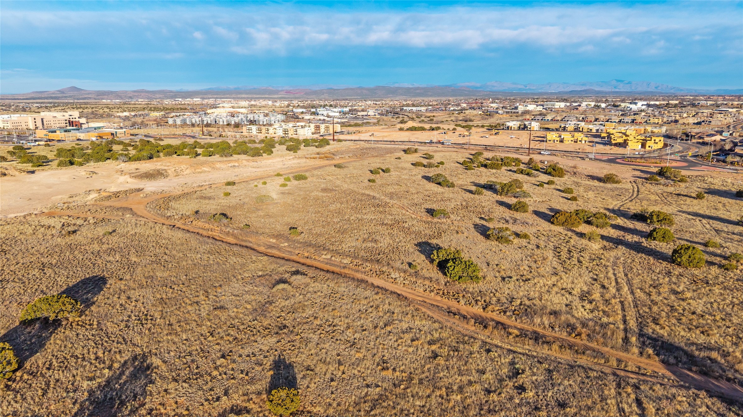 Commercial development parcel available for sale in Las Soleras, a master-planned mixed-use community located in one of Santa Fe's fastest growing commercial corridors. The sites are positioned near Beckner Road, Cerrillos Road, and State Road 599, with convenient access to Interstate 25, providing excellent connectivity throughout Santa Fe and northern New Mexico. The properties are located near major regional anchors including Christus St. Vincent Regional Medical Center, the VA Medical Center, Super Walmart, and Santa Fe Place Mall, placing them within Santa Fe's primary retail, healthcare, and service district. Parcel is zoned C-2 Commercial, allowing a wide range of uses including retail, office, medical, financial, multifamily residential, educational, recreational, and religious facilities, among others. The sites feature gently rolling terrain suitable for a variety of development concepts. City water, sewer, and electricity are available along Beckner Road, making these parcels ready for near-term development. Parcels 20, 21, 25, and 26 are offered together in bulk price, and each parcel is also available for purchase individually. Las Soleras offers developers the opportunity to build in a growing area of Santa Fe supported by strong healthcare, retail, and residential demand with excellent regional access.