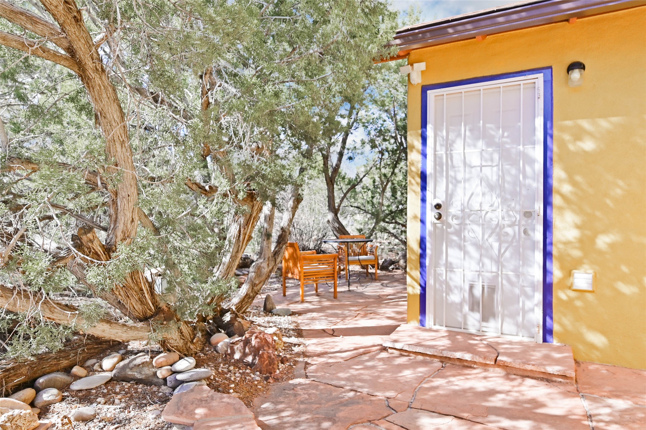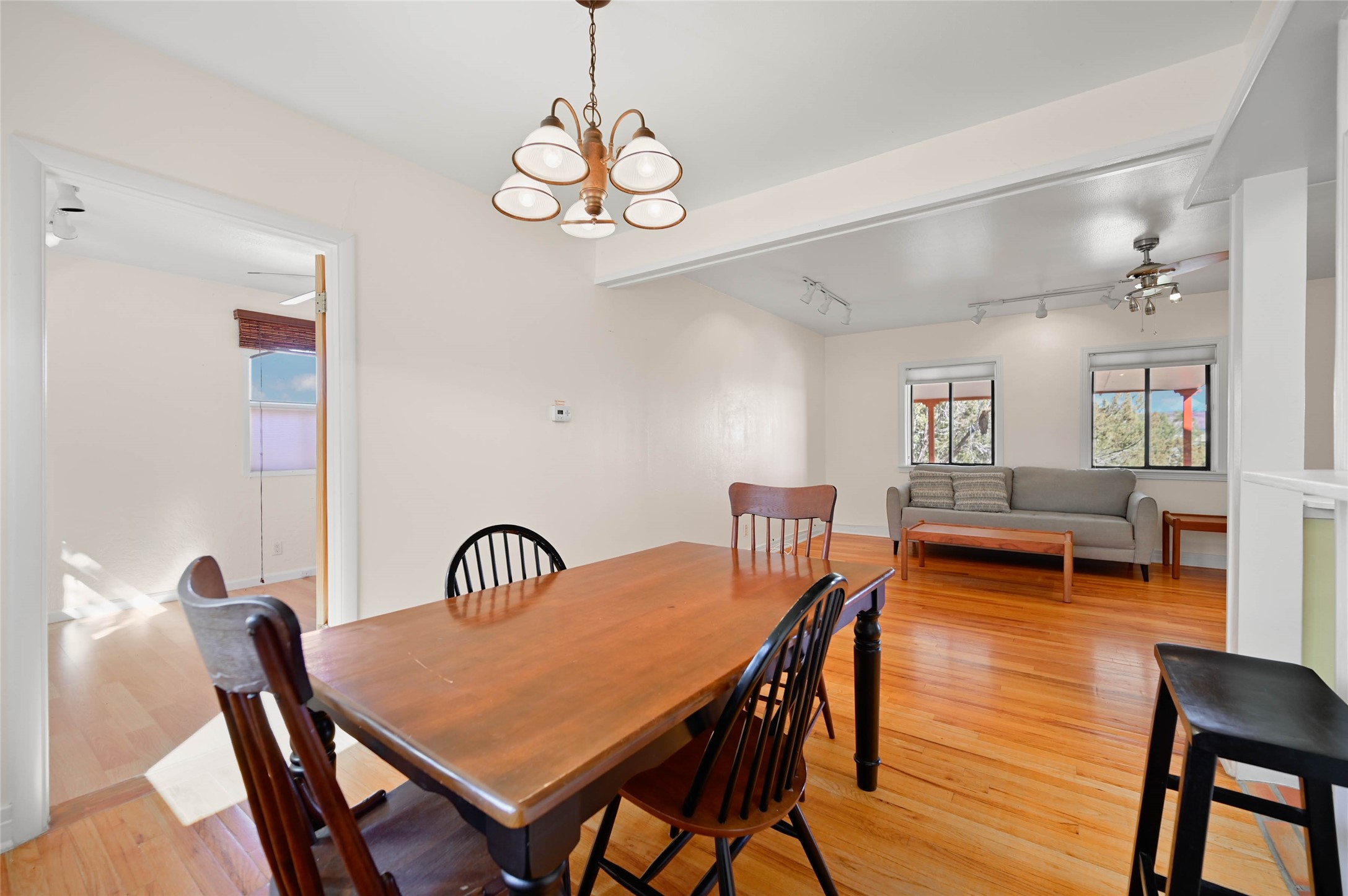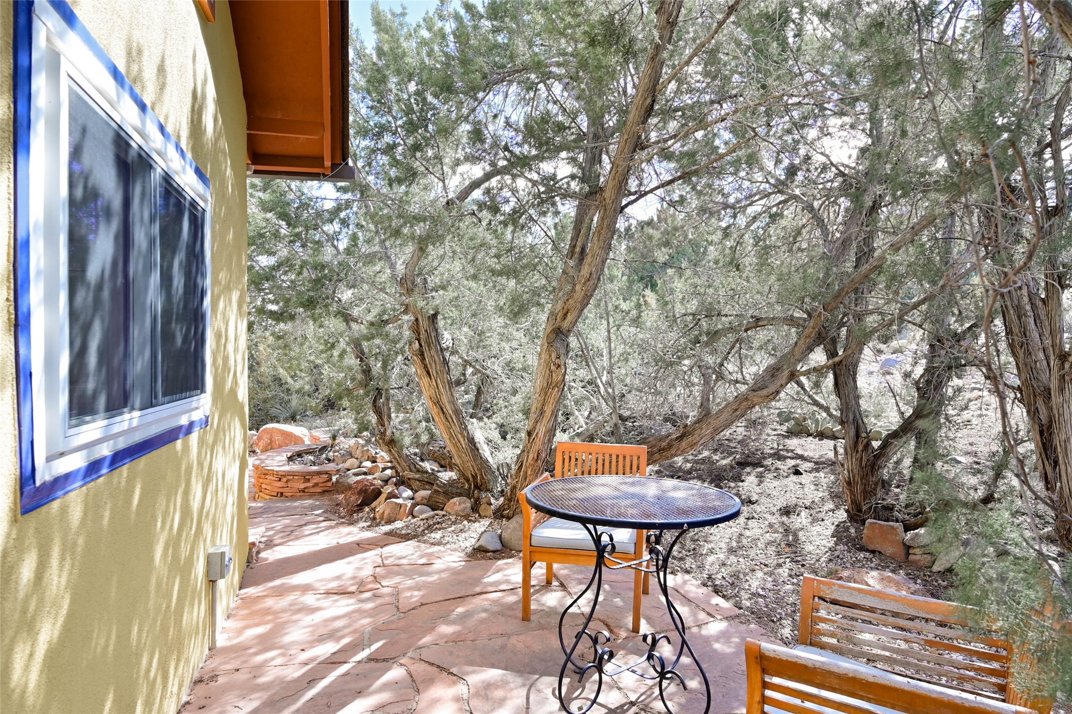 Discover a private sanctuary tucked away in a lush grove of Pinon and Juniper. This Cochiti Lake retreat features a seamless open floor plan highlighted by solid oak flooring and an abundance of natural light.Interior Highlights: A solid hardwood entry opens to a well-maintained interior with ceiling fans in every room for ultimate comfort.Flexible Space: The third bedroom currently serves as a vibrant studio with its own bathroom--perfect for your home office or creative pursuits.Outdoor Living: Relax on the landscaped back patio set amont Pinon trees, offering quiet moments and glimpses of Tetilla Peak.The Lifestyle: Includes a carport, storage shed, and easy access to both the golf course and the lake. Call for your showing today!