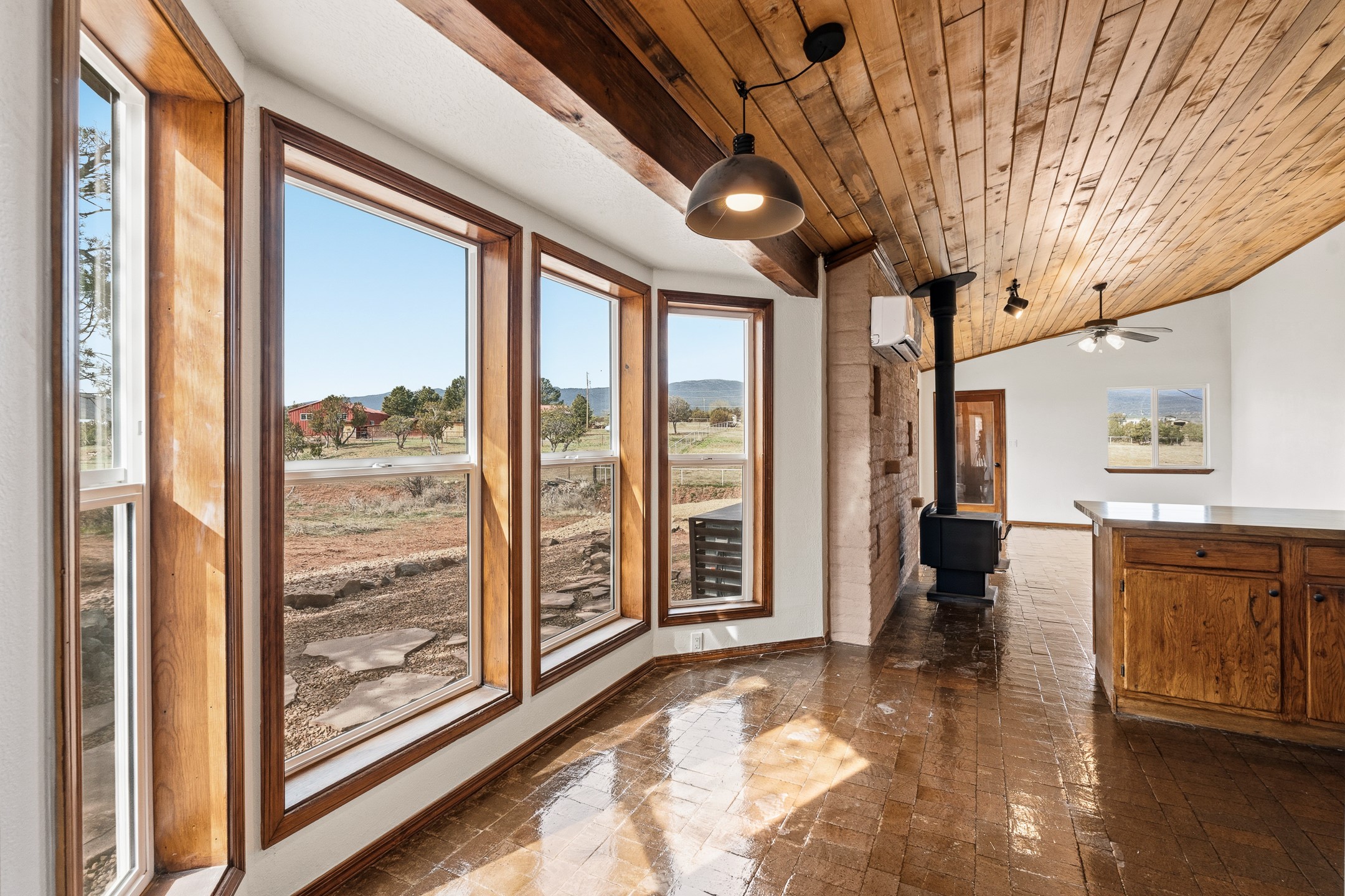 Just updated! Open floorpan, two bedroom, one bath home, sited on an elevated two acres twenty minutes from Albuquerque in Sandia Park. So much is new, including propanel roof, new windows, new kitchen appliances, kitchen counters, mini-split, updated bathroom, bedroom flooring. Designed for energy efficiency and passive solar, with a large south-facing window to take in views, a trombe wall to store heat, and a wood stove anchoring the high-ceilinged living areas. Move-in ready.