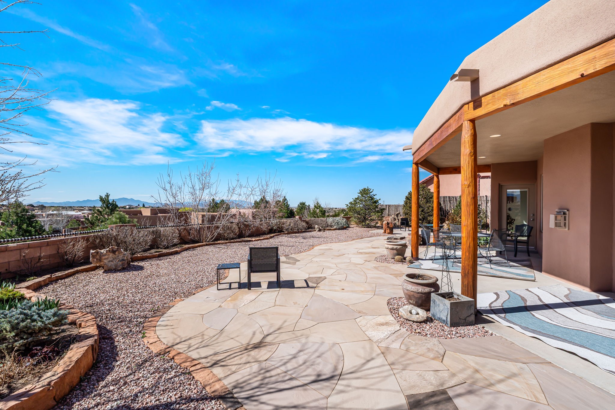 A JEWEL IN LA PRADERA! The rare Spanish Broom floorplan - only four in the neighborhood according to seller - features a curved wall of picture windows to capture the amazing views. NEW ROOF AND STUCCO IN 2024. This one-owner home is single-level, located on a cul-de-sac and has an ideal floorplan with good bedroom separation and an open feel. Kitchen has pretty cabinetry, granite counters and stainless appliances, island sink and room for barstools. Reverse osmosis at kitchen sink. Walk out to one of the most gorgeous backyards and portal in La Pradera. Recent 50K in improvements - it is like being at a luxury resort. Flagstone patio and natural gas firepit. Forced air heating and air conditioning. Primary bedroom has door to rear portal, walk-in closet, soaking tub and separate shower, double sinks and granite counters. Two guest rooms have access to a full guest bathroom, also with granite counters. Finished 2-car garage. Proper laundry room with storage - washer and dryer convey with the property. Water heater and HVAC system are 2018. Third bedroom could be office. Some furnishings are available - list in supplements.
