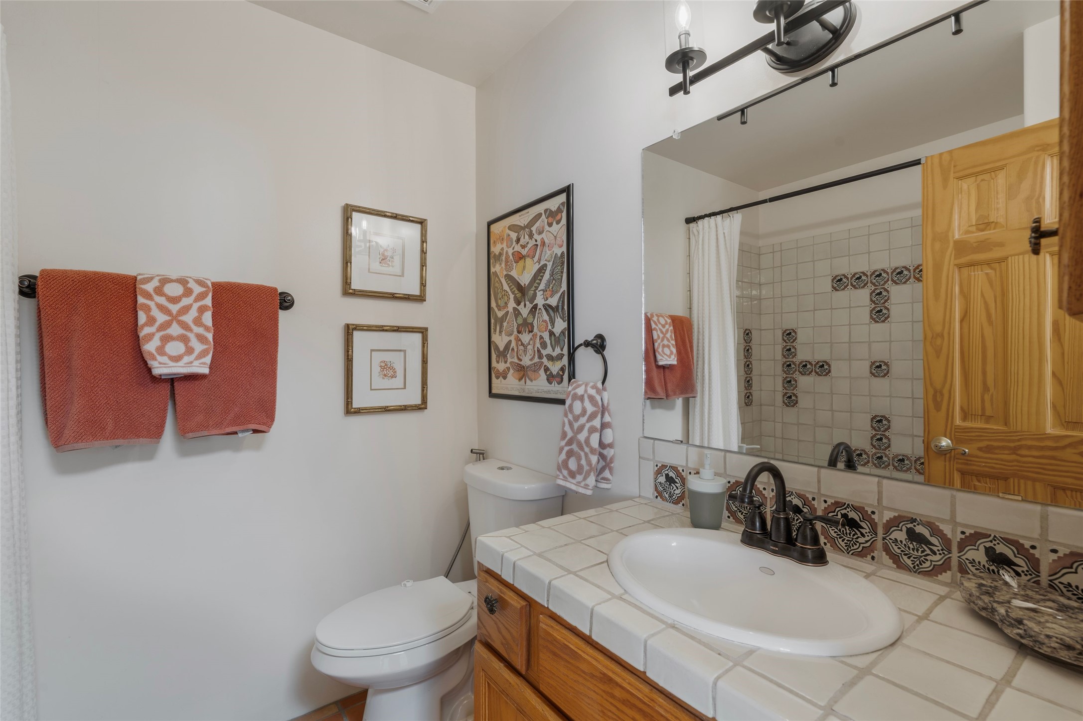 Fresh and sophisticated, this sweet three bedroom and two and a half bathroom condo is centrally located in mid-town Santa Fe just a short drive to shopping and restaurants. Located within a quaint subdivision, the home has a large private walled outdoor space and covered patio that can be accessed from the living room. A wood burning kiva fireplace, vigas, Saltillo tile floor, stainless steel appliances, and wood clad windows accent the open concept living/dining and kitchen area with lots of bright light and seamless flow. Upstairs, a larger master ensuite bathroom boasts a walk-in closet with a separate tub from the shower enclosure. The two secondary bedrooms share a full bathroom. All the bedrooms have mini-split heating and AC with wood floors throughout. A large view deck is off one of the secondary bedrooms with a peek-a-boo view of the Sangre De Cristo Mountains.There are several off-street parking spaces located near the entry of the condo in addition to a direct entry 2-car garage with updated flooring. This is a lovely home for those looking to land in a centralized location surrounded by classic Santa Fe style.