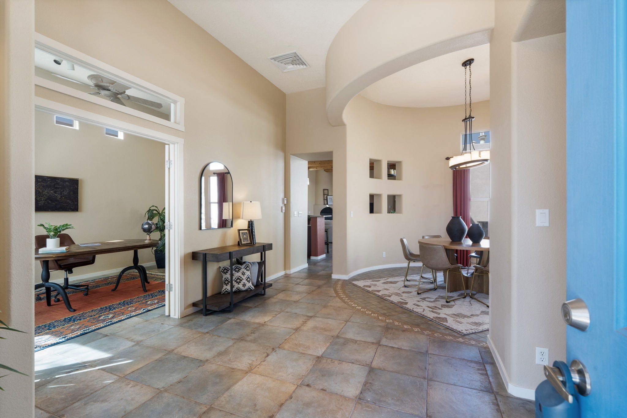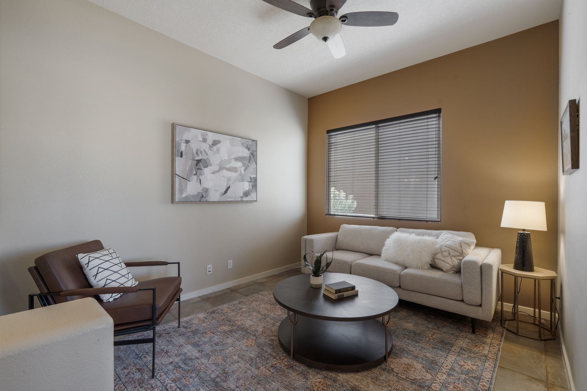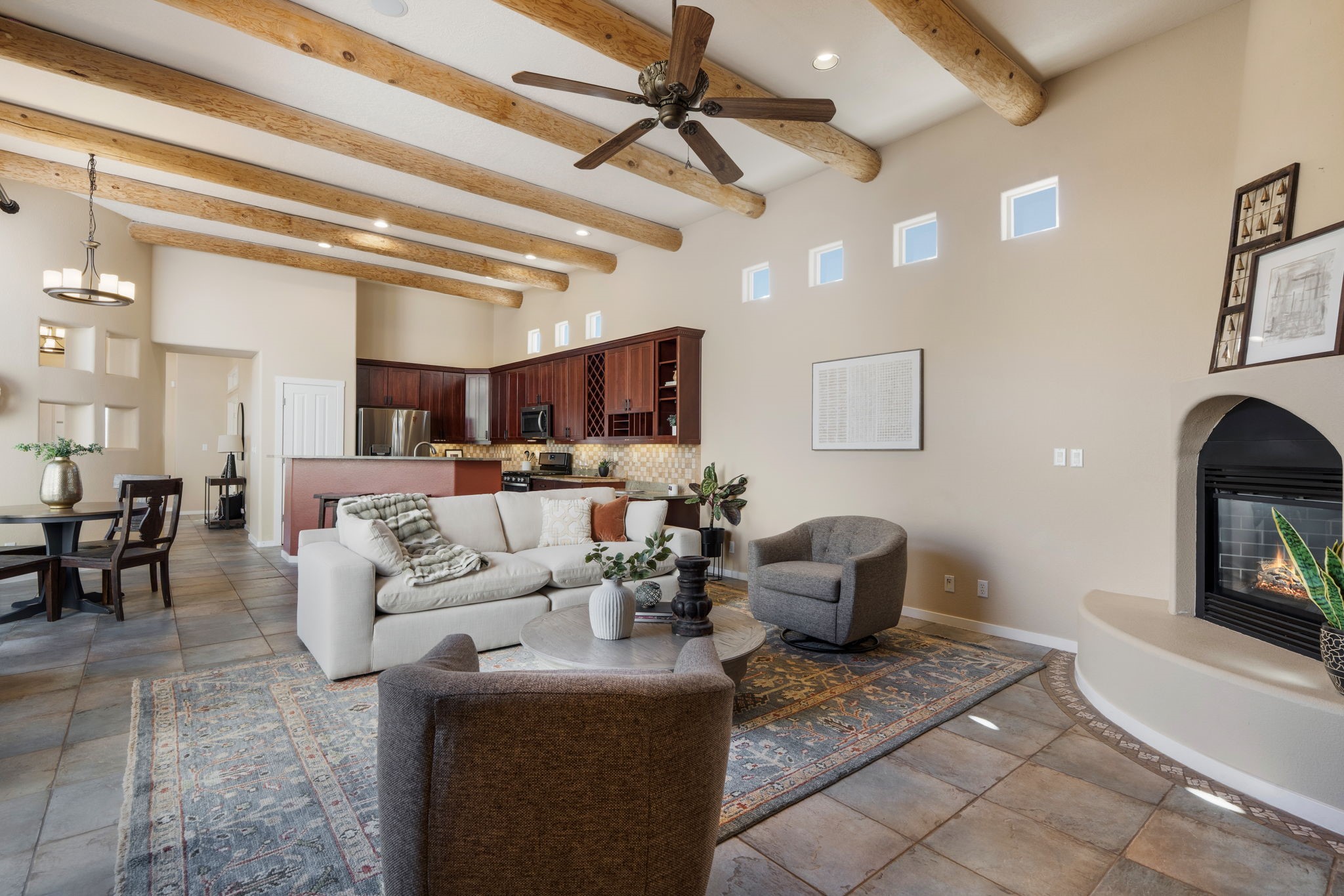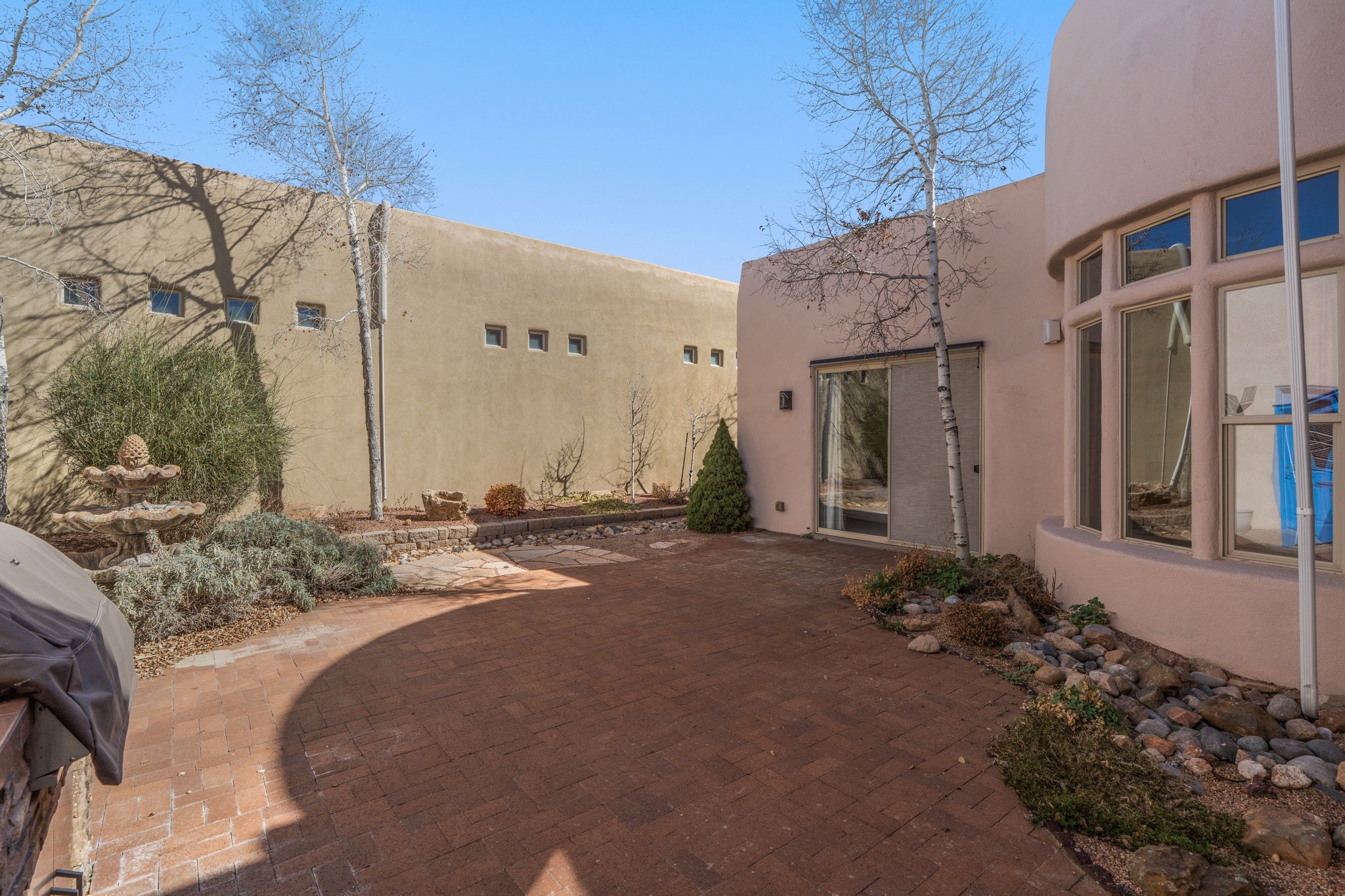 Seller financing available for this gorgeous cozy single-story home in desirable Rancho Viejo, just a couple homes from a park. Three bedrooms, an office, and a bonus room for exercise or play. The home surrounds a private courtyard, accessible from the great room or the primary suite, with a bubbling fountain for serenity. The circular dining room adds sophistication to entertaining, and the private master suite is truly a retreat. A built-in Murphy bed is so efficient in one of the guest bedrooms. Open floor plan with upgraded cabinetry, granite countertops, and stainless appliances. Enjoy a glass of wine in front of your custom fireplace. Take advantage of the paved walking trails, parks, and community amenities. Many upgrades: Roof (2024), stucco (2024-2025), high efficiency boiler (2024). Fresh paint, and new carpet (2026) in the primary suite. Radiant heat and tankless water heater! This home is bathed in natural light, and lends itself to display wonderful art. Move-in ready!