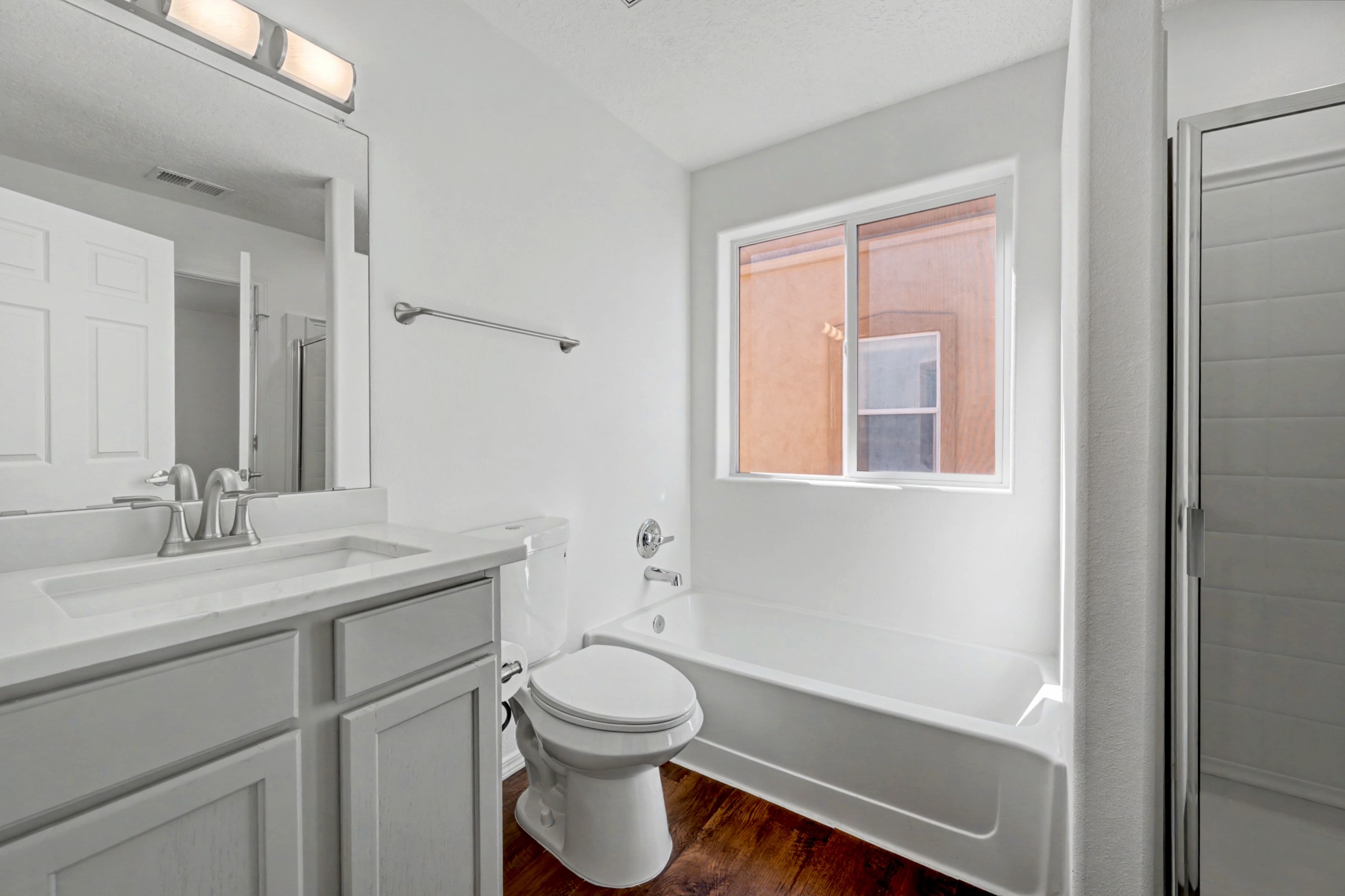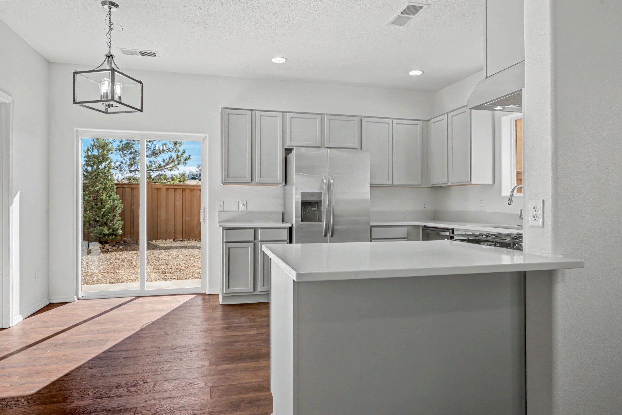 Recently remodeled 3-bedroom, 2.5-bath home offering a bright, open-concept layout and modern finishes throughout. The spacious living area flows seamlessly into a beautifully updated kitchen featuring beautiful cabinetry, solid surface countertops, stainless steel appliances, and ample storage.Fresh interior finishes, updated flooring, and contemporary fixtures create a clean, move-in-ready feel. The primary suite offers a comfortable retreat, while two additional bedrooms provide flexibility for guests, office space, or family living.Enjoy abundant natural light and easy access to the backyard through sliding glass doors--ideal for indoor/outdoor living. Located near parks and trails, this move-in-ready home is the perfect blend of style and convenience in Santa Fe.